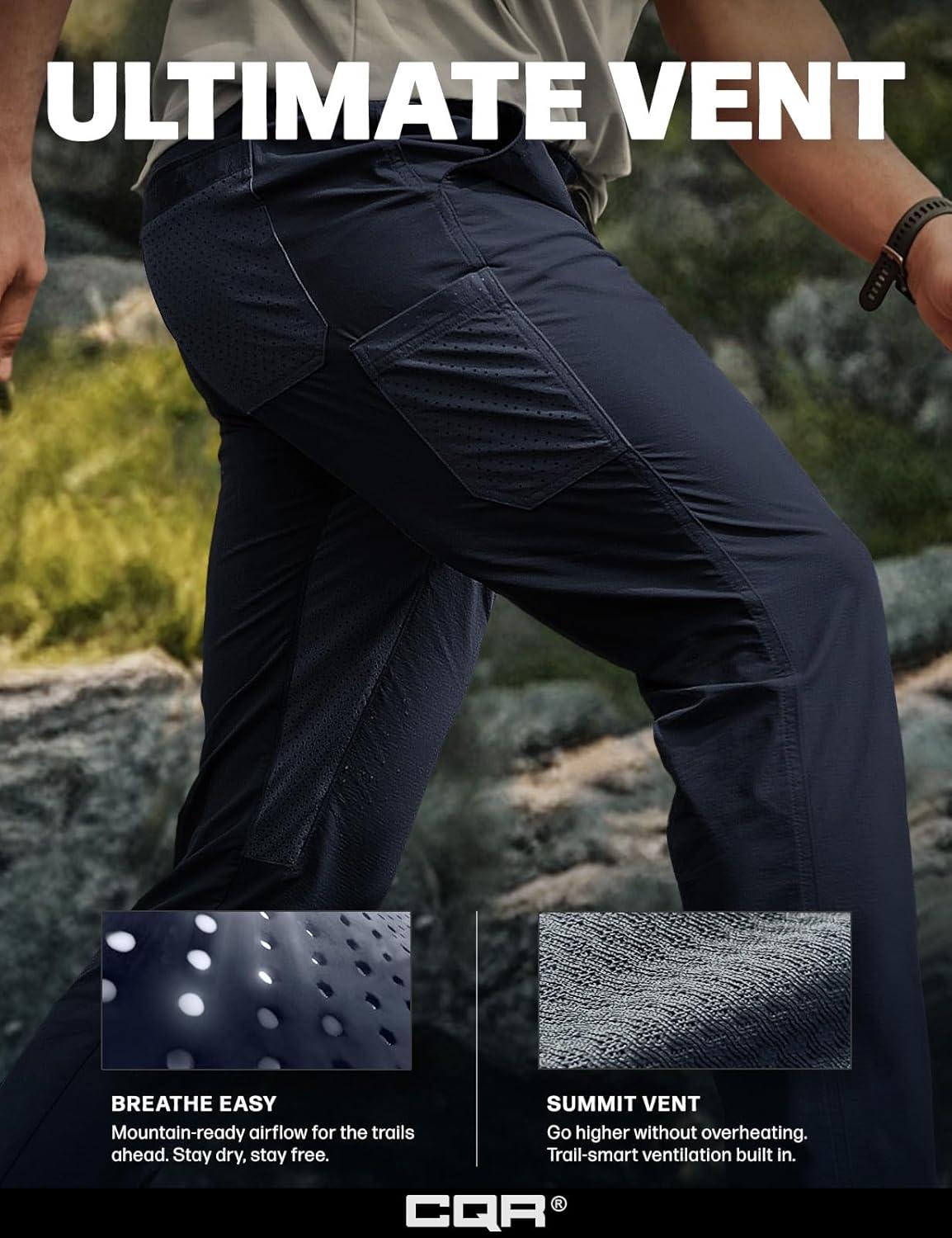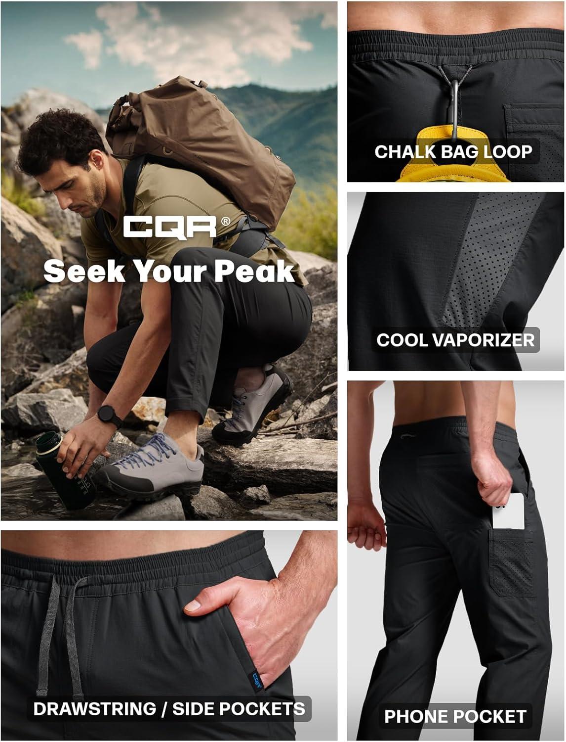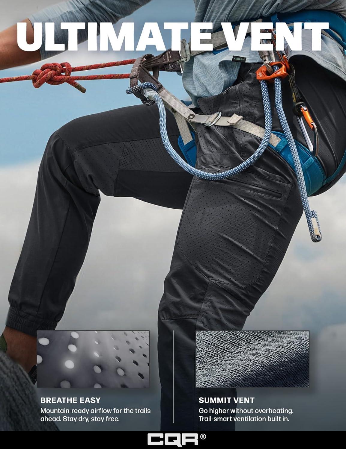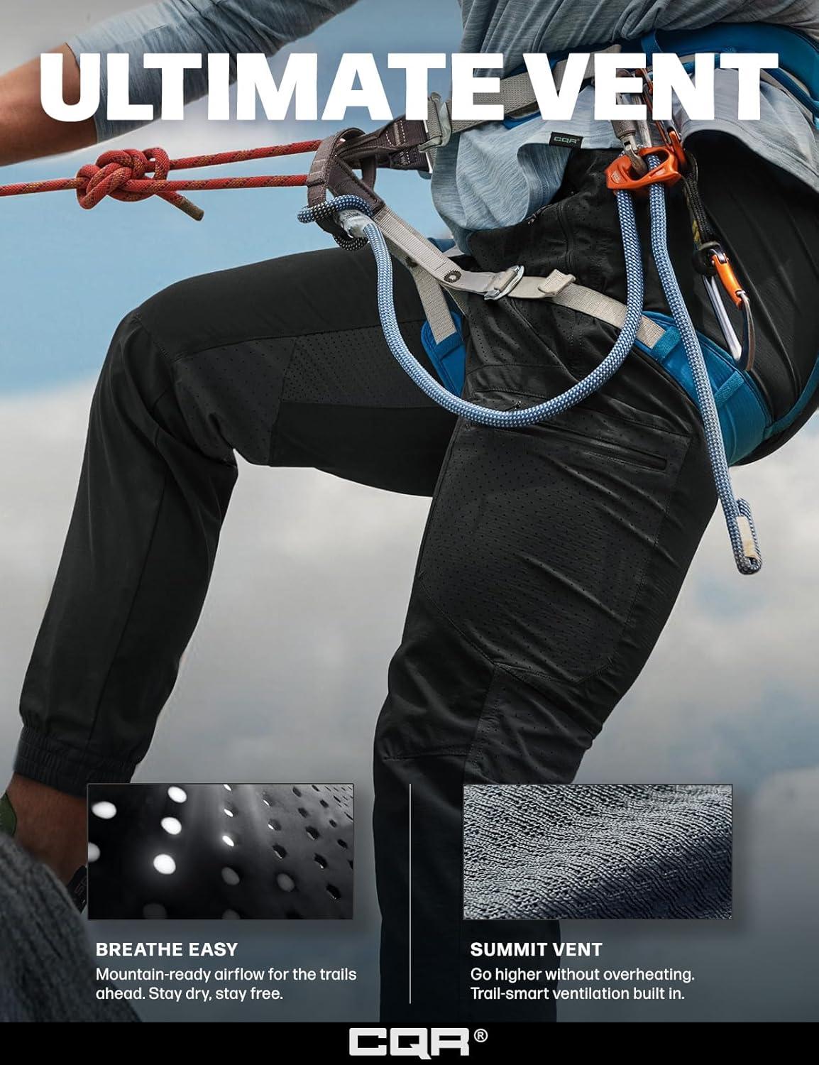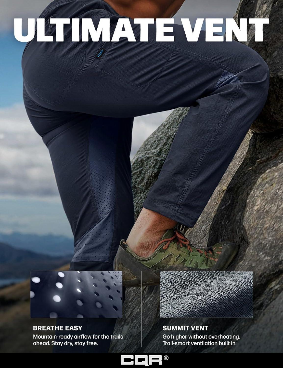 CQR Men’s Lightweight Vent Hiking Pants, Water-Resistant & Breathable Sports Outdoor Athletic Pants with Elastic Waist(Ascend Peak Black)