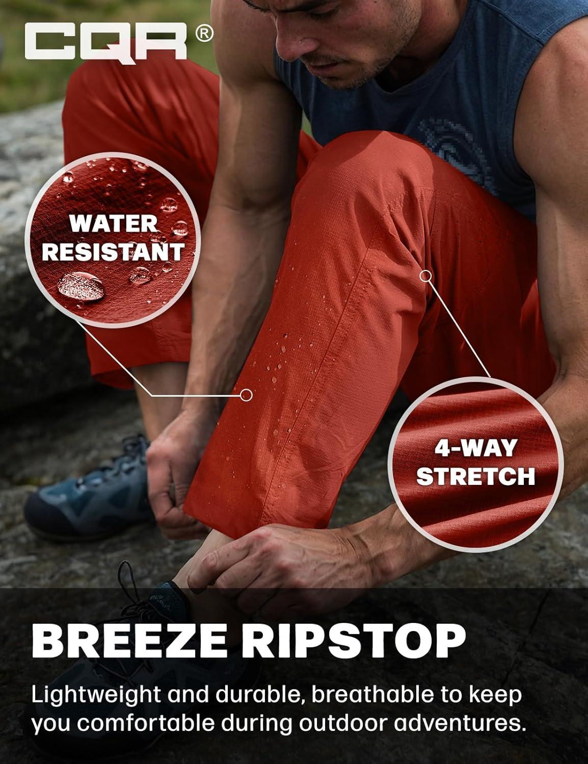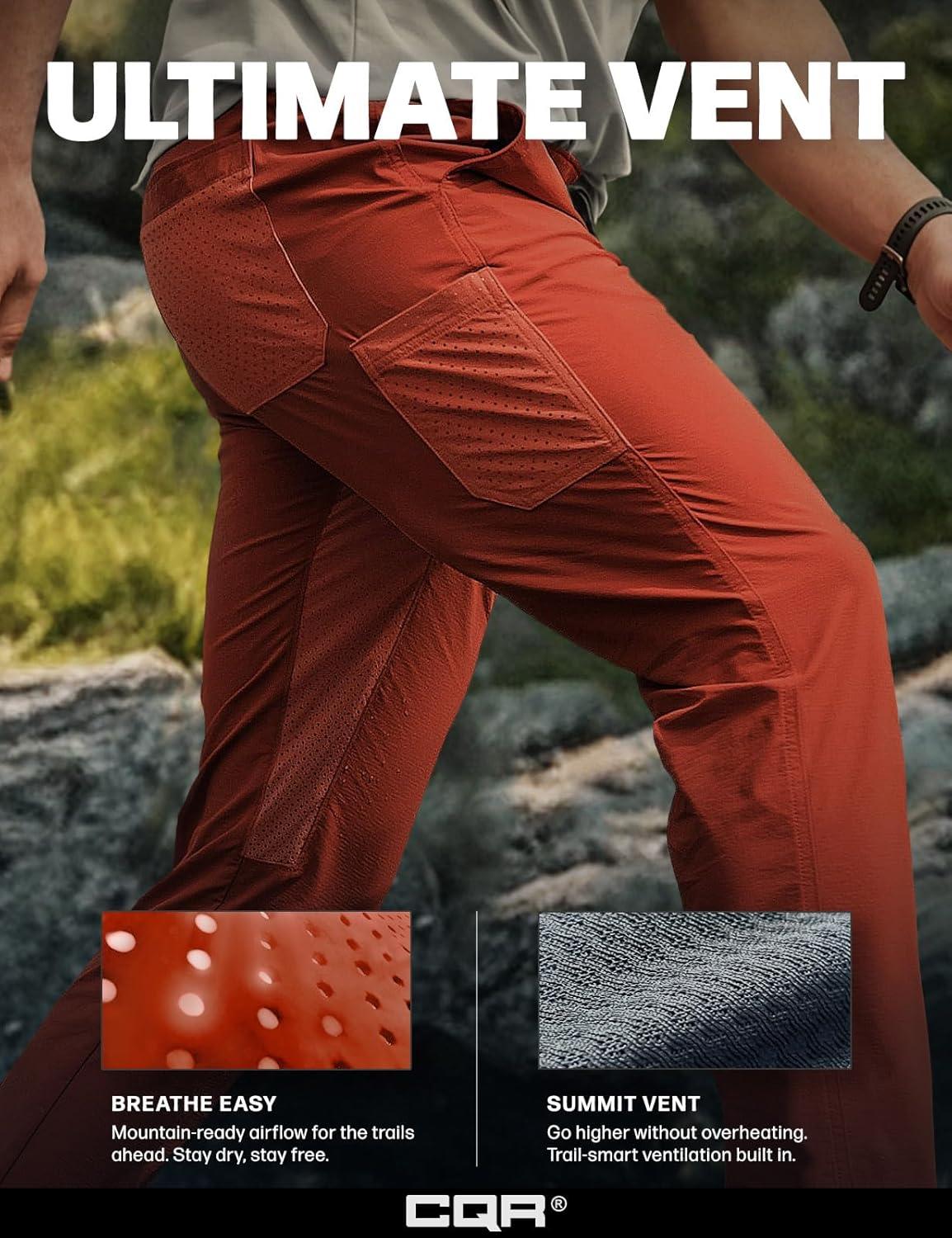 CQR Men’s Lightweight Vent Hiking Pants, Water-Resistant & Breathable Sports Outdoor Athletic Pants with Elastic Waist(Ascend Crux Burnt Orange)