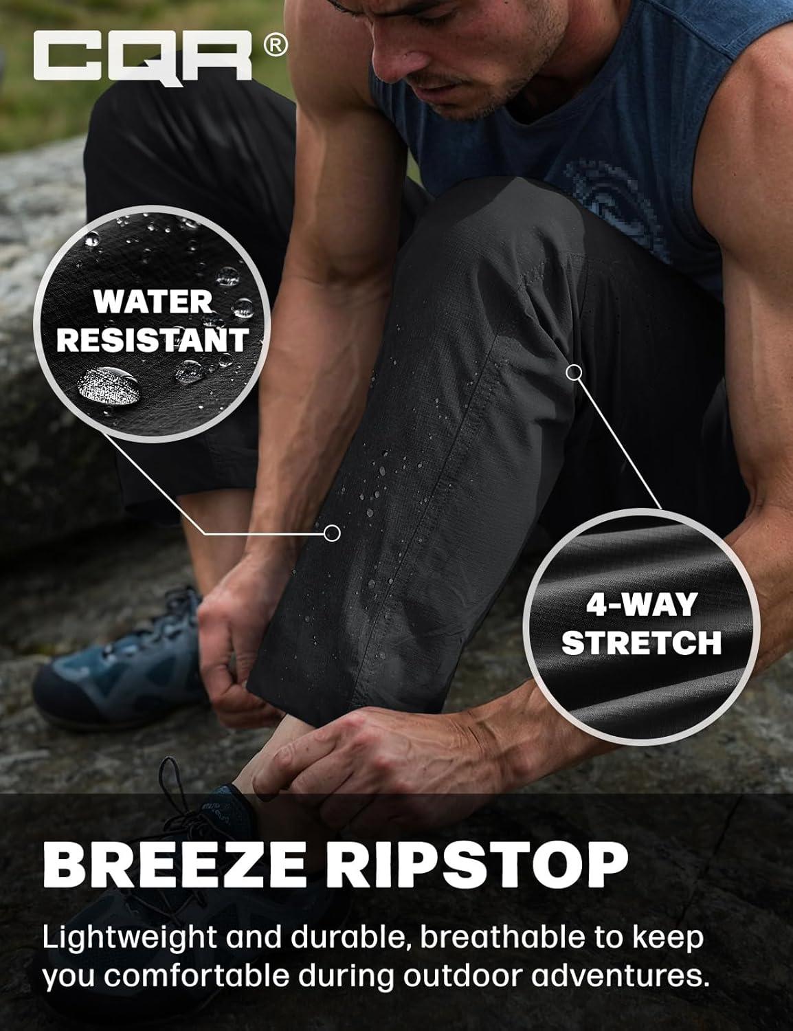 CQR Men’s Lightweight Vent Hiking Pants, Water-Resistant & Breathable Sports Outdoor Athletic Pants with Elastic Waist(Ascend Crux Black)