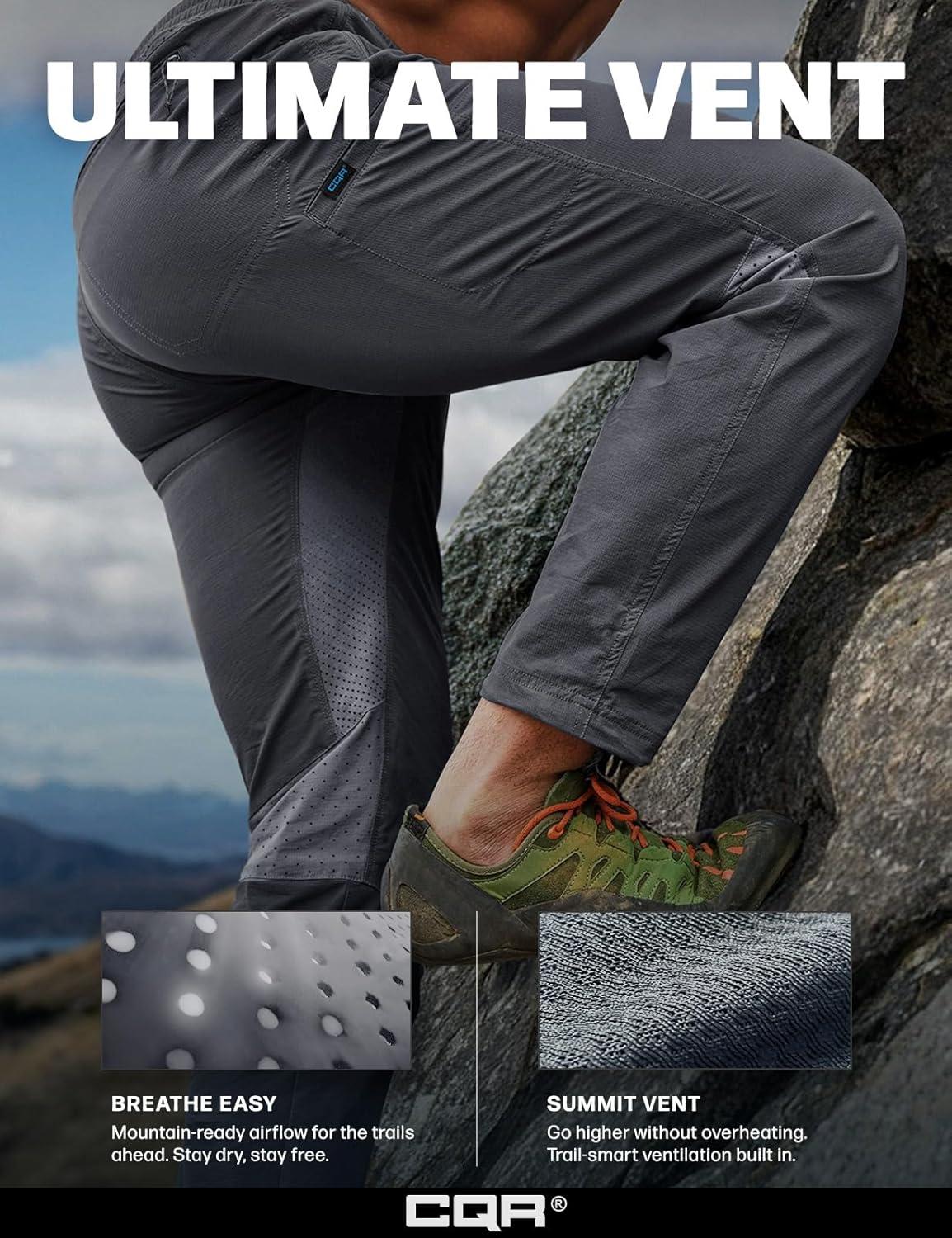 CQR Men’s Lightweight Vent Hiking Pants, Water-Resistant & Breathable Sports Outdoor Athletic Pants with Elastic Waist(Ascend Peak Carbon Grey)