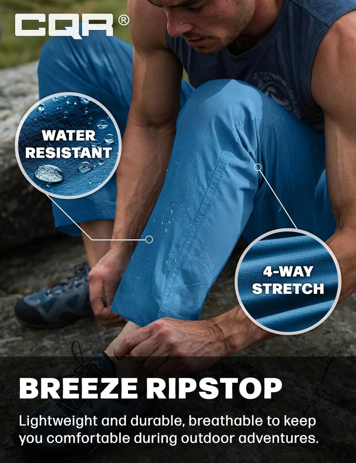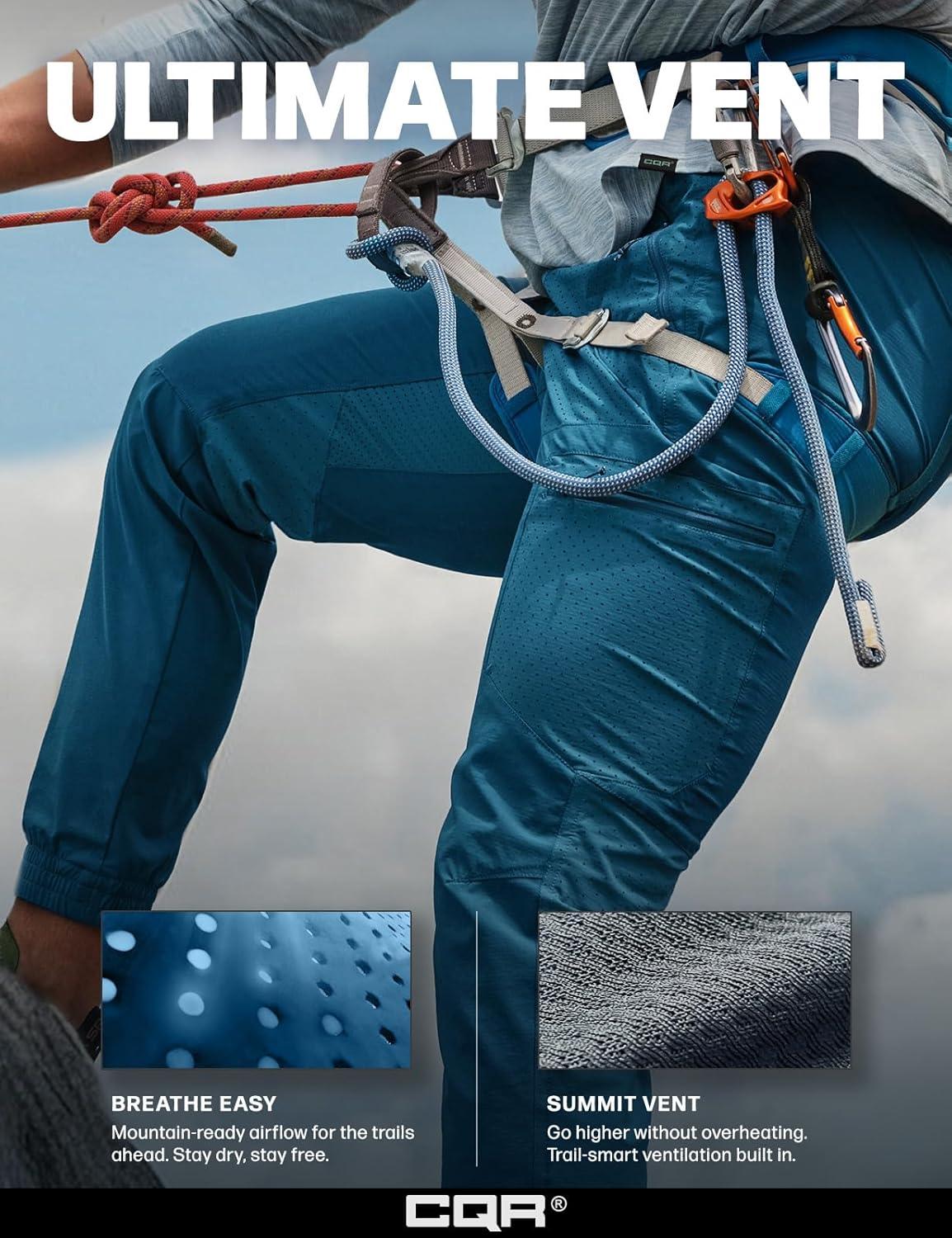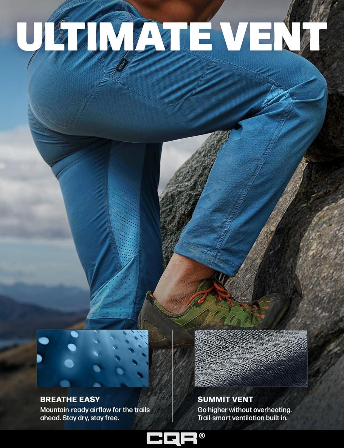 CQR Men’s Lightweight Vent Hiking Pants, Water-Resistant & Breathable Sports Outdoor Athletic Pants with Elastic Waist(Ascend Peak Glaucous)