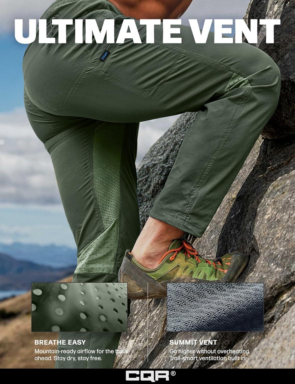 CQR Men’s Lightweight Vent Hiking Pants, Water-Resistant & Breathable Sports Outdoor Athletic Pants with Elastic Waist(Ascend Crux Lichen)