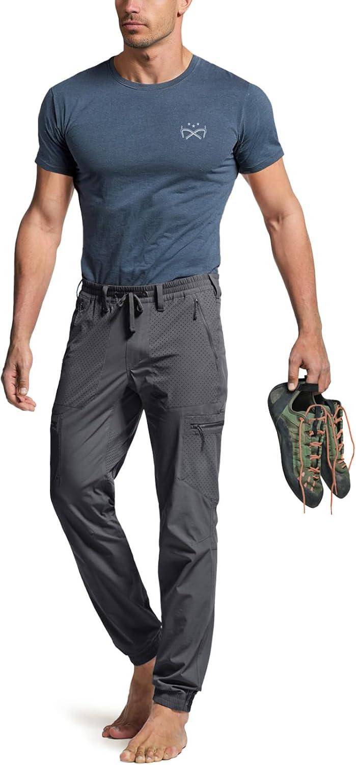 CQR Men’s Lightweight Vent Hiking Pants, Water-Resistant & Breathable Sports Outdoor Athletic Pants with Elastic Waist(Ascend Crux Carbon Grey)