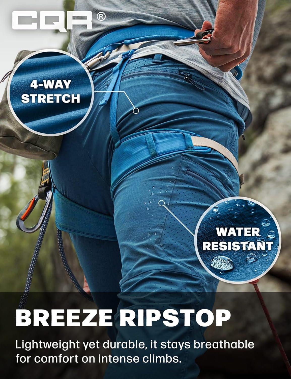 CQR Men’s Lightweight Vent Hiking Pants, Water-Resistant & Breathable Sports Outdoor Athletic Pants with Elastic Waist(Ascend Crux Glaucous)