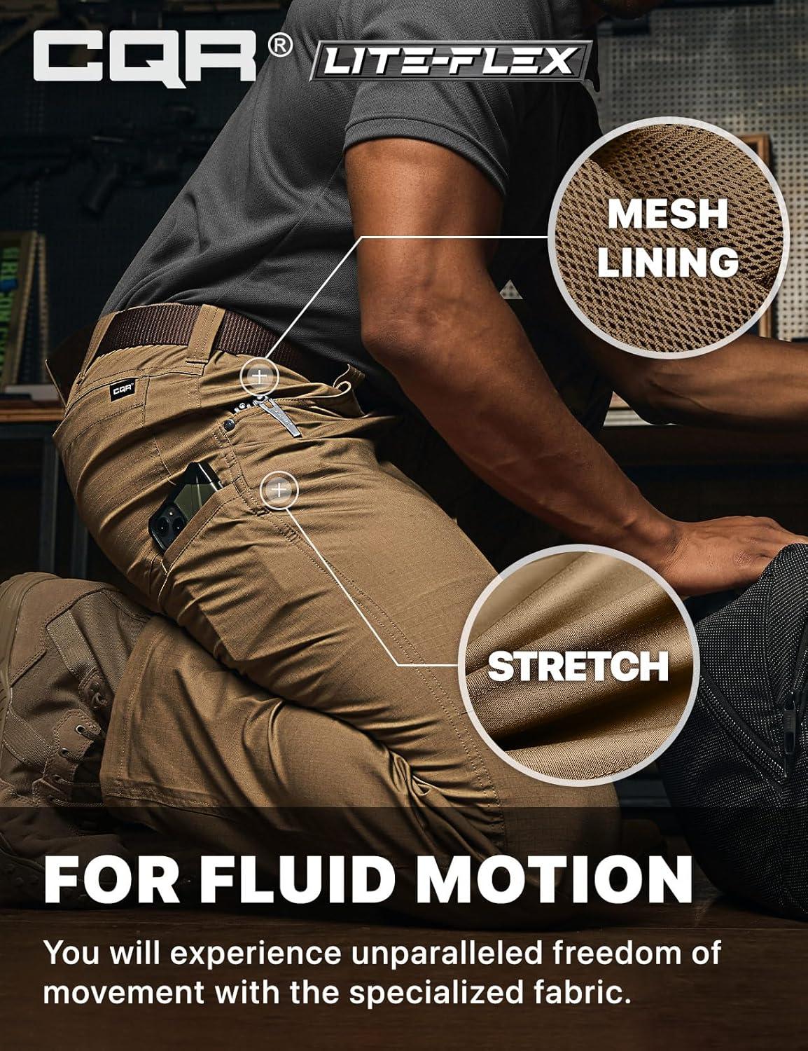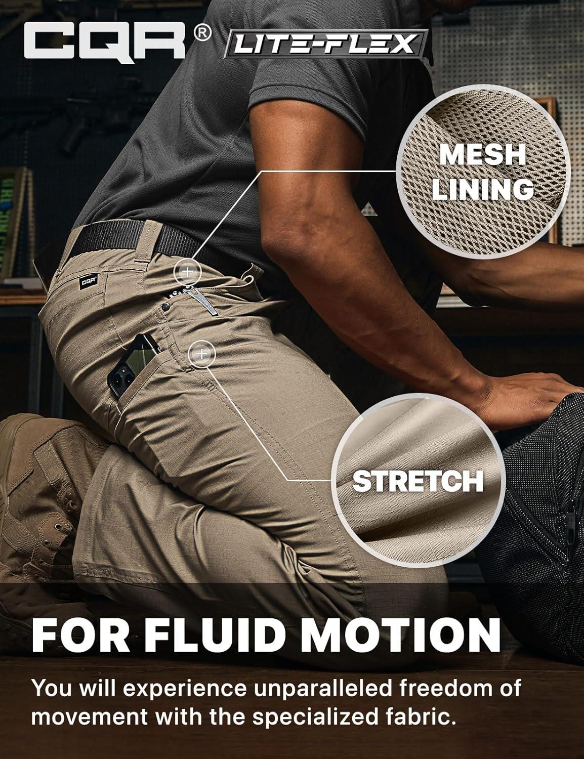 CQR Men’s Flex Ripstop Tactical Pants, Water Resistant Stretch Cargo Pants, Lightweight EDC Hiking Work Pants