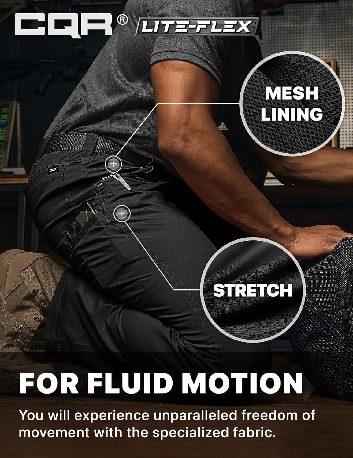 CQR Men’s Utility Flex Cargo Pants, Classic-Fit Casual Stretch Work Pants, Water Resistant Lightweight Tactical Hiking Pants(Negotiator Black)