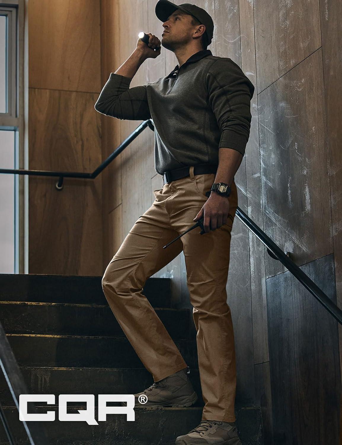 CQR Men’s Utility Flex Cargo Pants, Classic-Fit Casual Stretch Work Pants, Water Resistant Lightweight Tactical Hiking Pants(Negotiator Alamo Khaki)