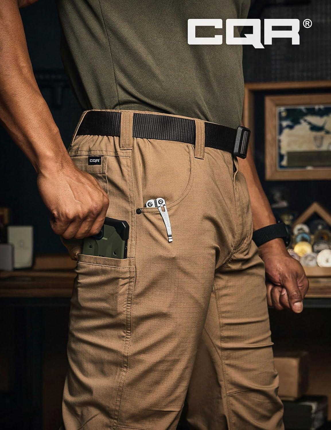 CQR Men’s Tactical Pants, Water Resistant Ripstop Cargo Pants, Lightweight EDC Work Hiking Pants, Outdoor Apparel