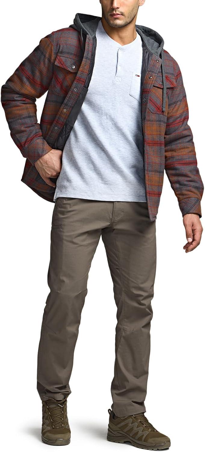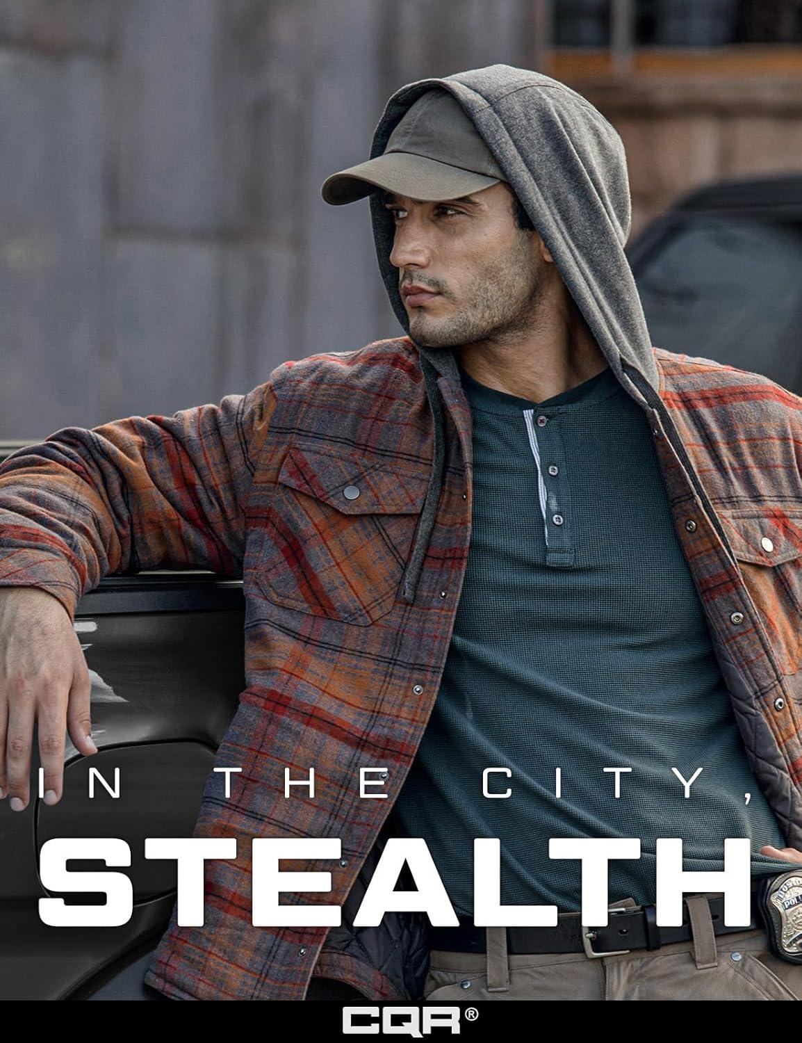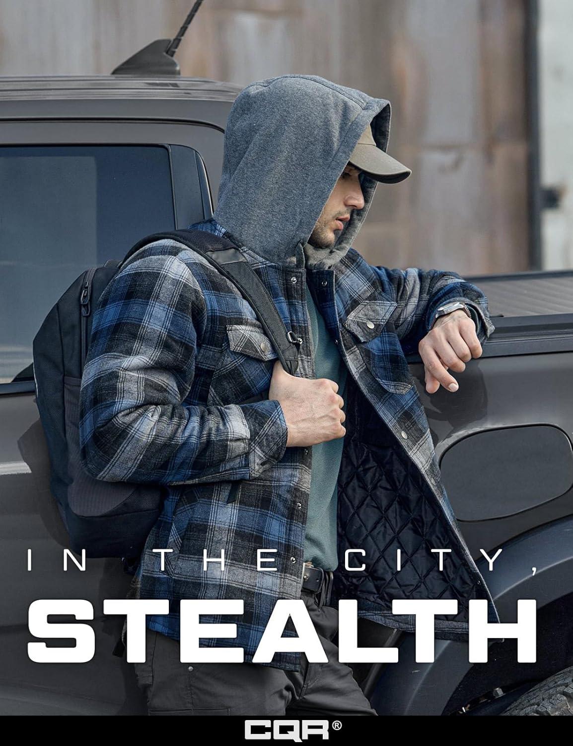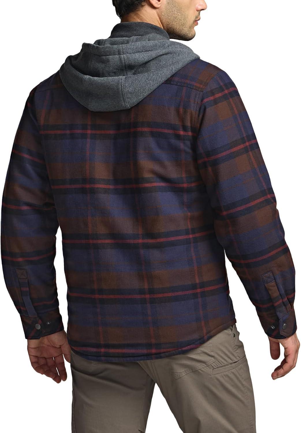 CQR Men’s Quilted Lined Flannel Hooded Shirt Jacket, Soft Warm Long Sleeve Outdoor Cotton Plaid Shirt Jackets(Stealth Harvest)