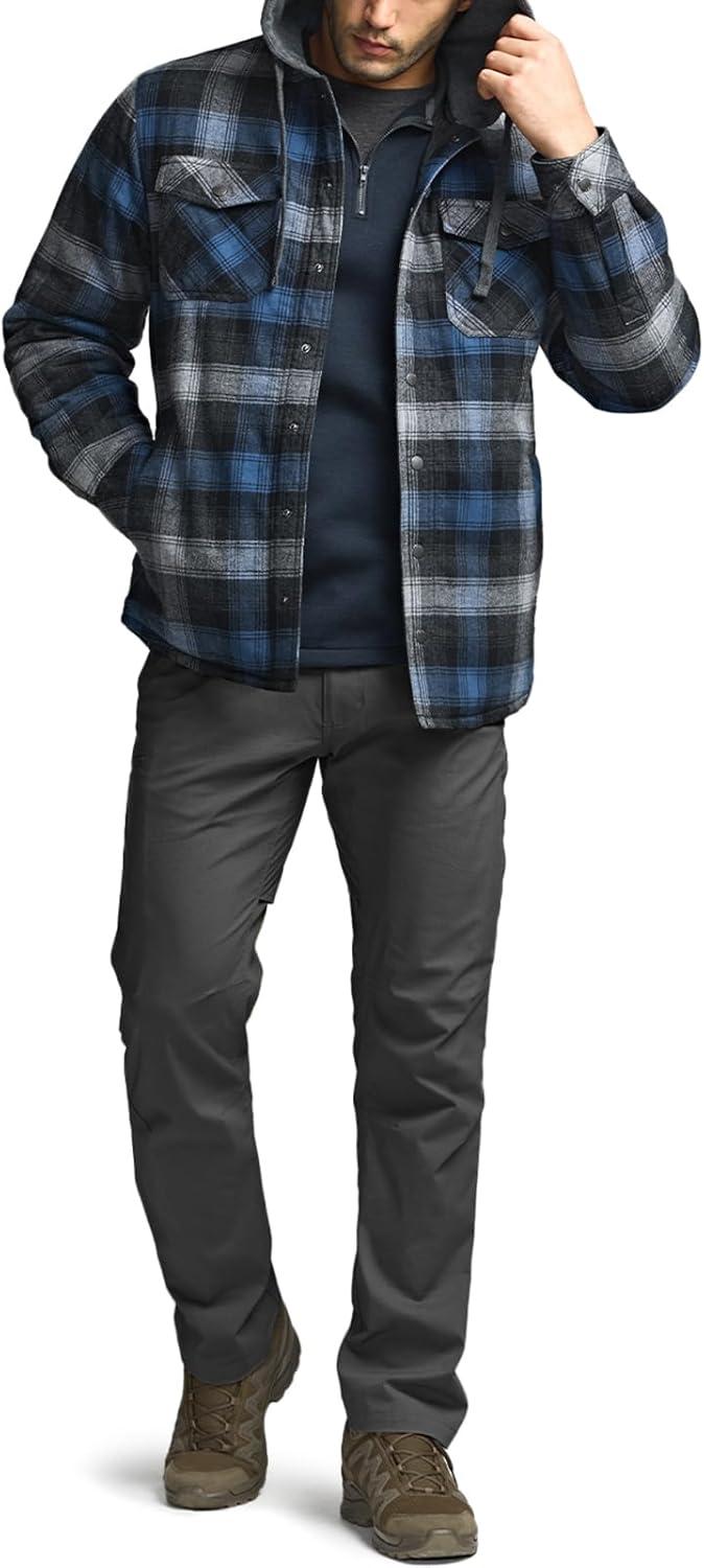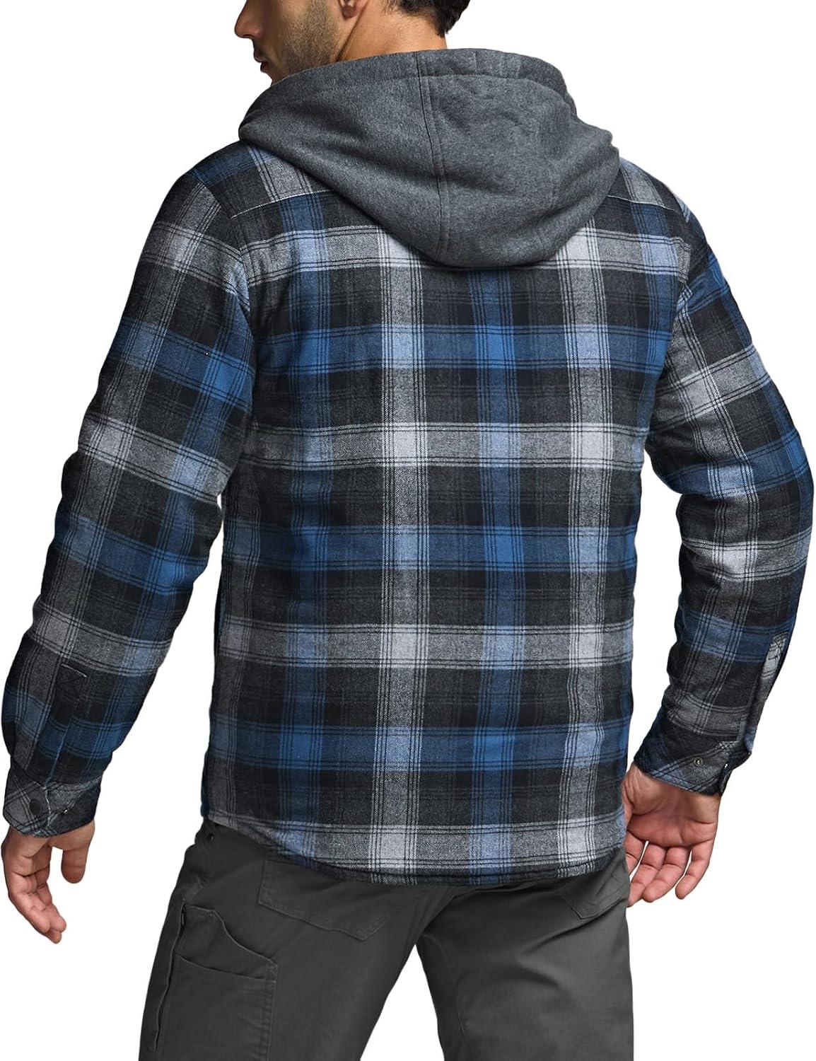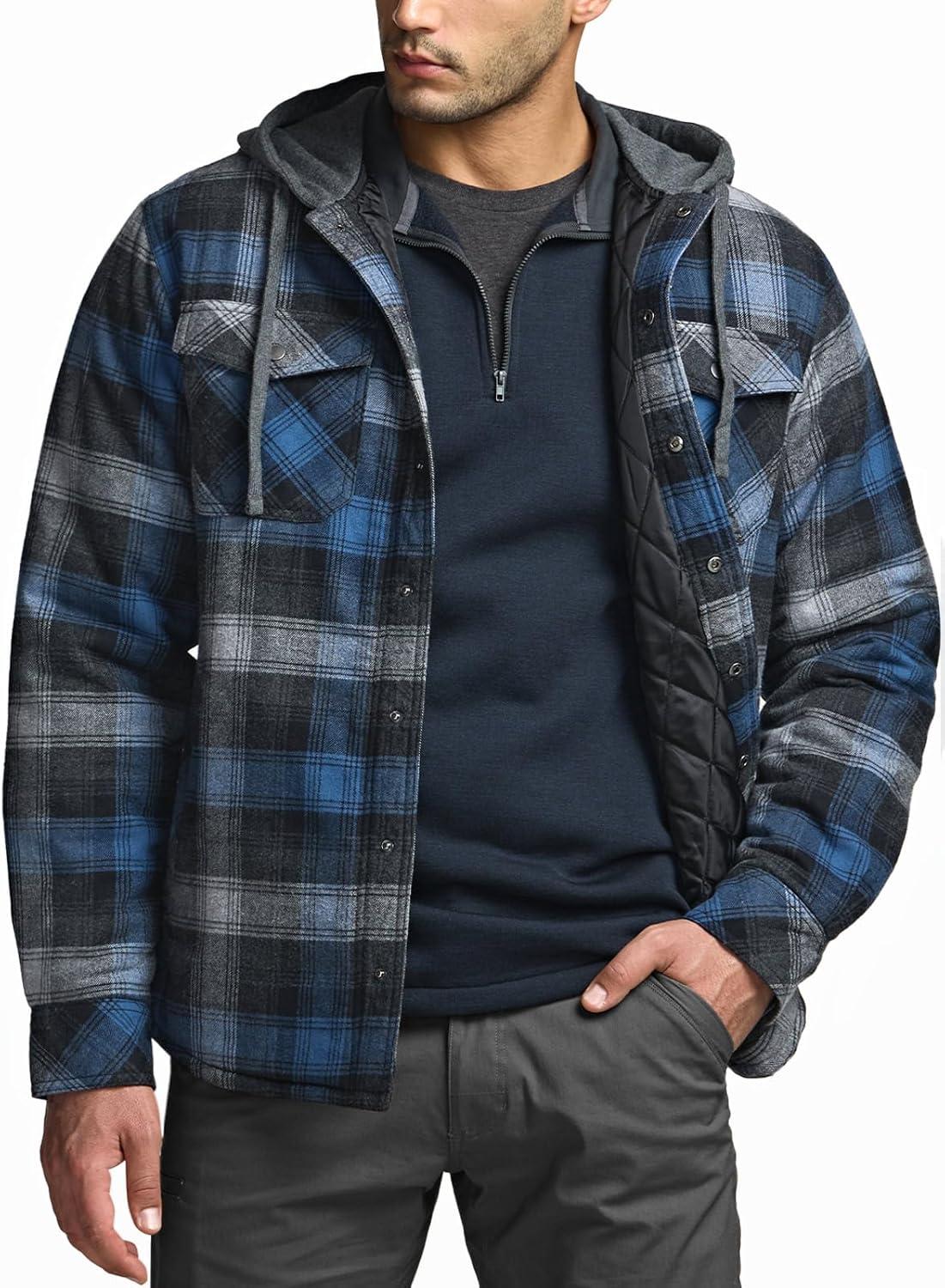 CQR Men’s Quilted Lined Flannel Hooded Shirt Jacket, Soft Warm Long Sleeve Outdoor Cotton Plaid Shirt Jackets(Stealth Night Sky)