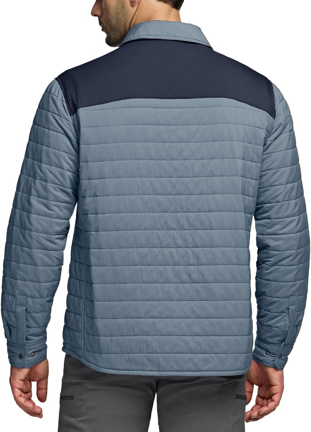CQR Men’s Lightweight Insulated Jacket, Windproof Packable Water Resistant Warm Active Coat for Hiking Work Outdoor Tactical(Frame Shadow Grey & Stone Blue)
