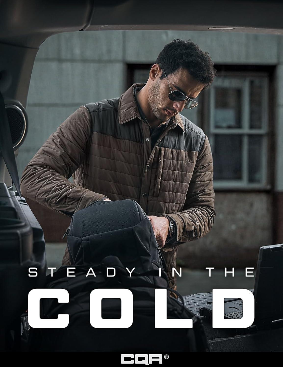 CQR Men’s Lightweight Insulated Jacket, Windproof Packable Water Resistant Warm Active Coat for Hiking Work Outdoor Tactical(Frame Black)