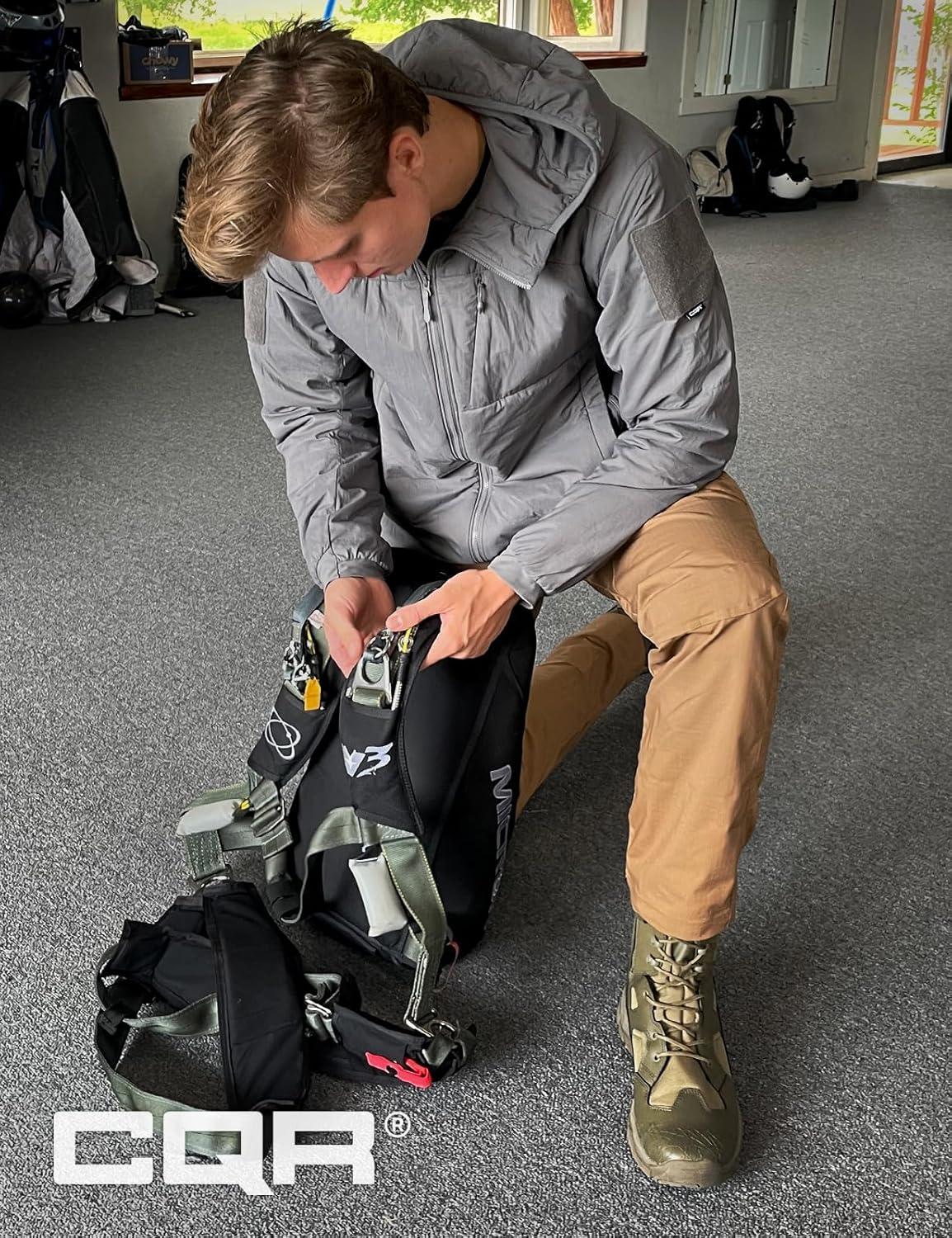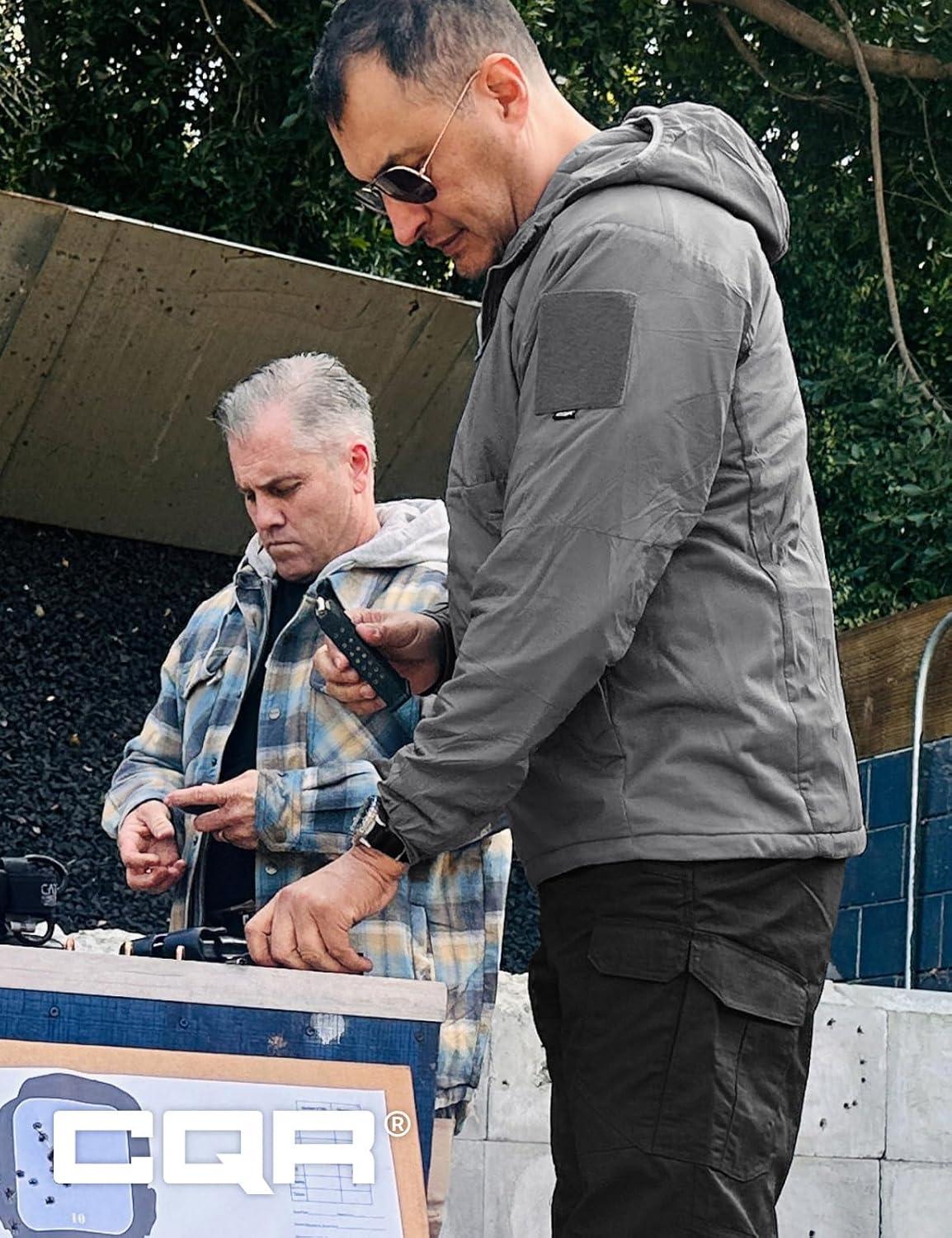 CQR Men’s Lightweight Insulated Jacket, Windproof Packable Water Resistant Warm Active Coat for Hiking Work Outdoor Tactical(Layer Black & Shadow Grey)