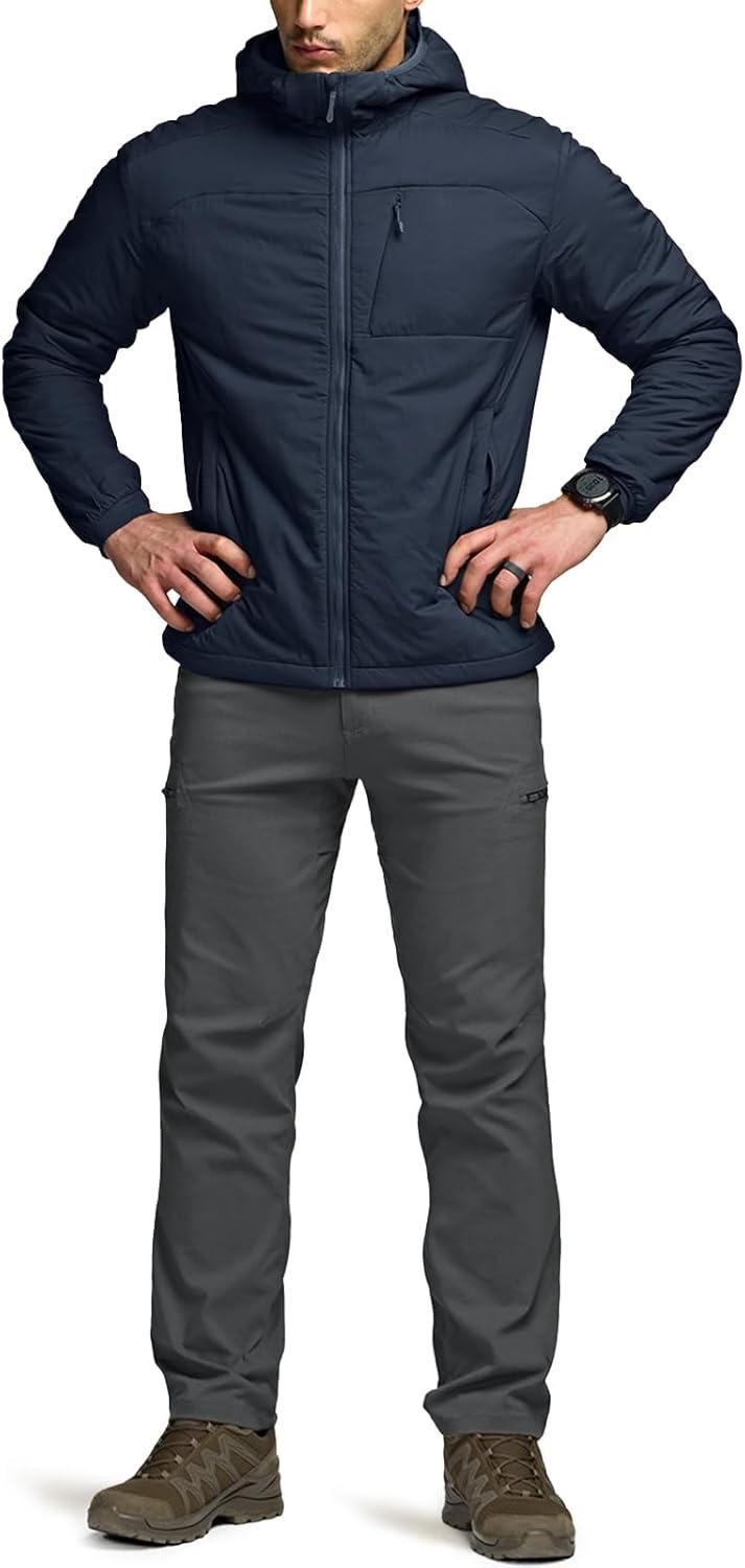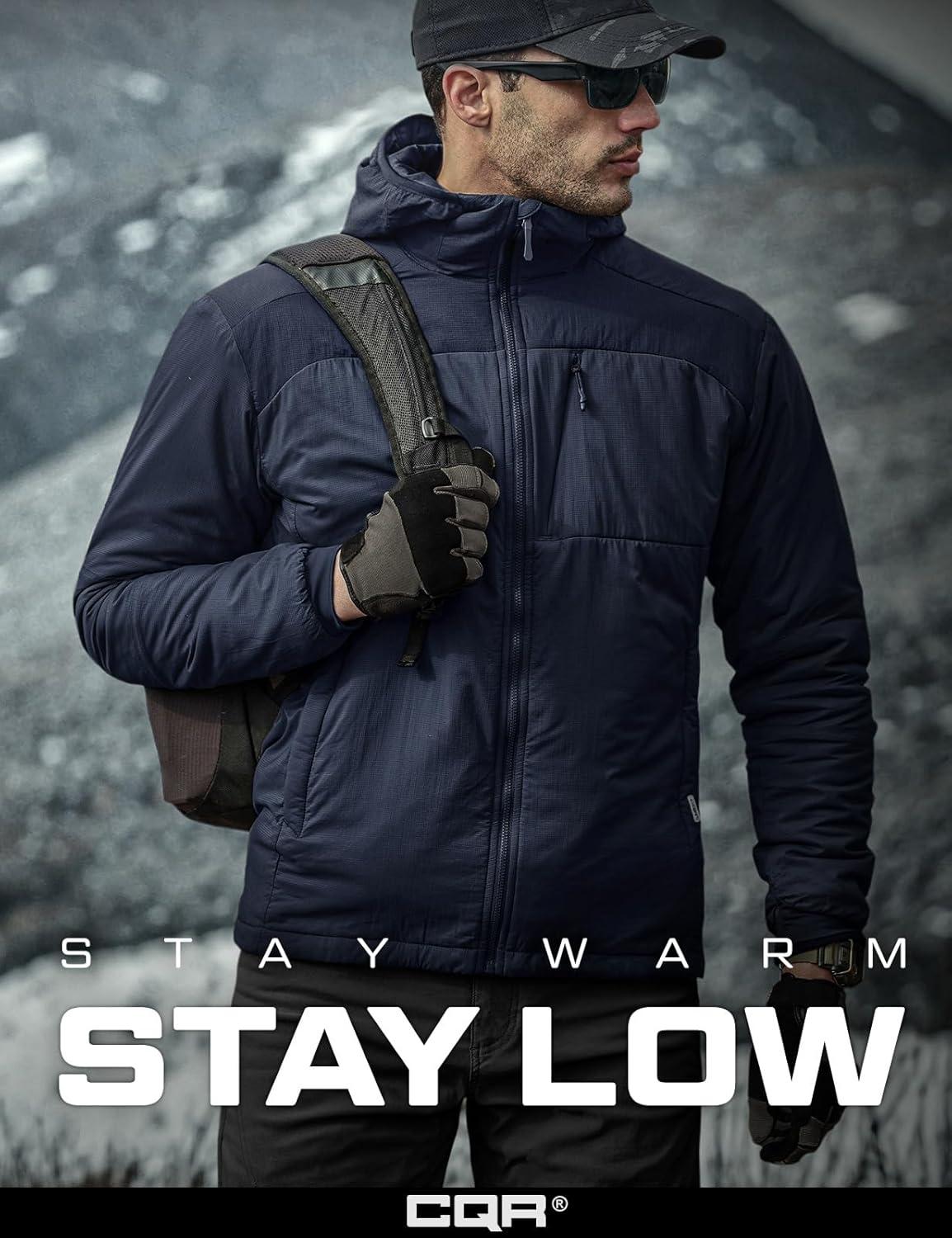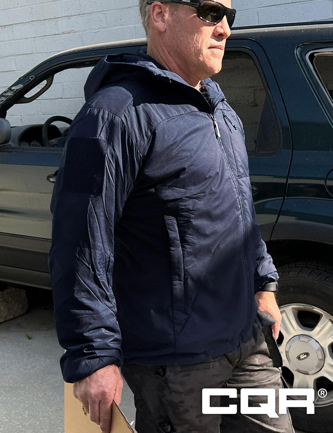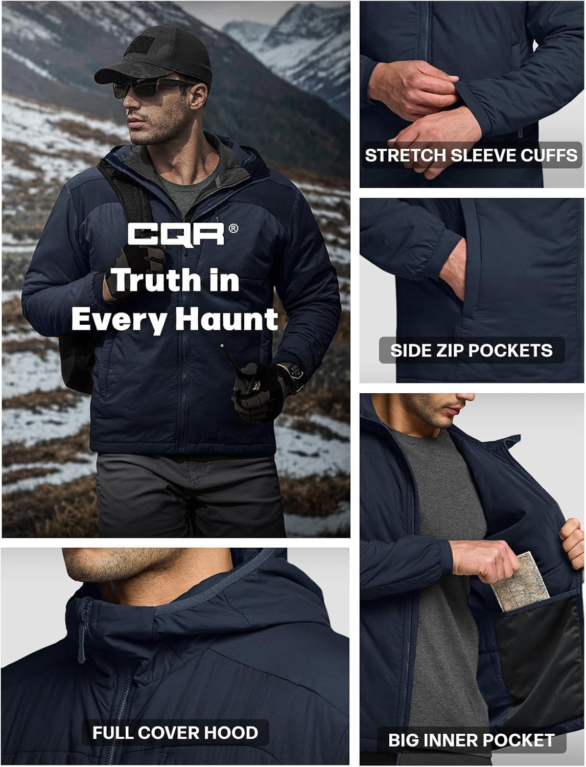 CQR Men’s Lightweight Insulated Jacket, Windproof Packable Water Resistant Warm Active Coat for Hiking Work Outdoor Tactical(Frame Tundra & Navy)