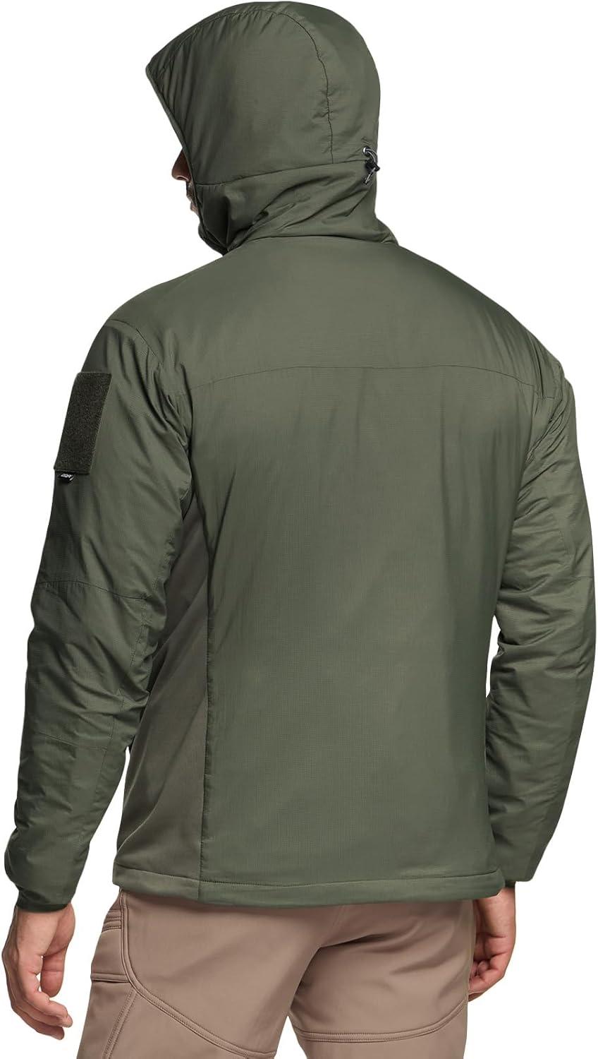 CQR Men’s Lightweight Insulated Jacket, Windproof Packable Water Resistant Warm Active Coat for Hiking Work Outdoor Tactical(Layer Army Green & Soil Green)