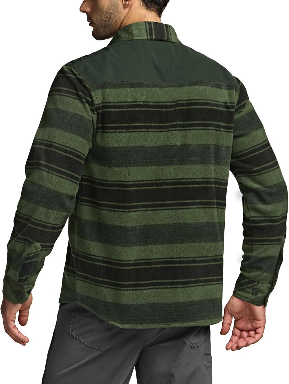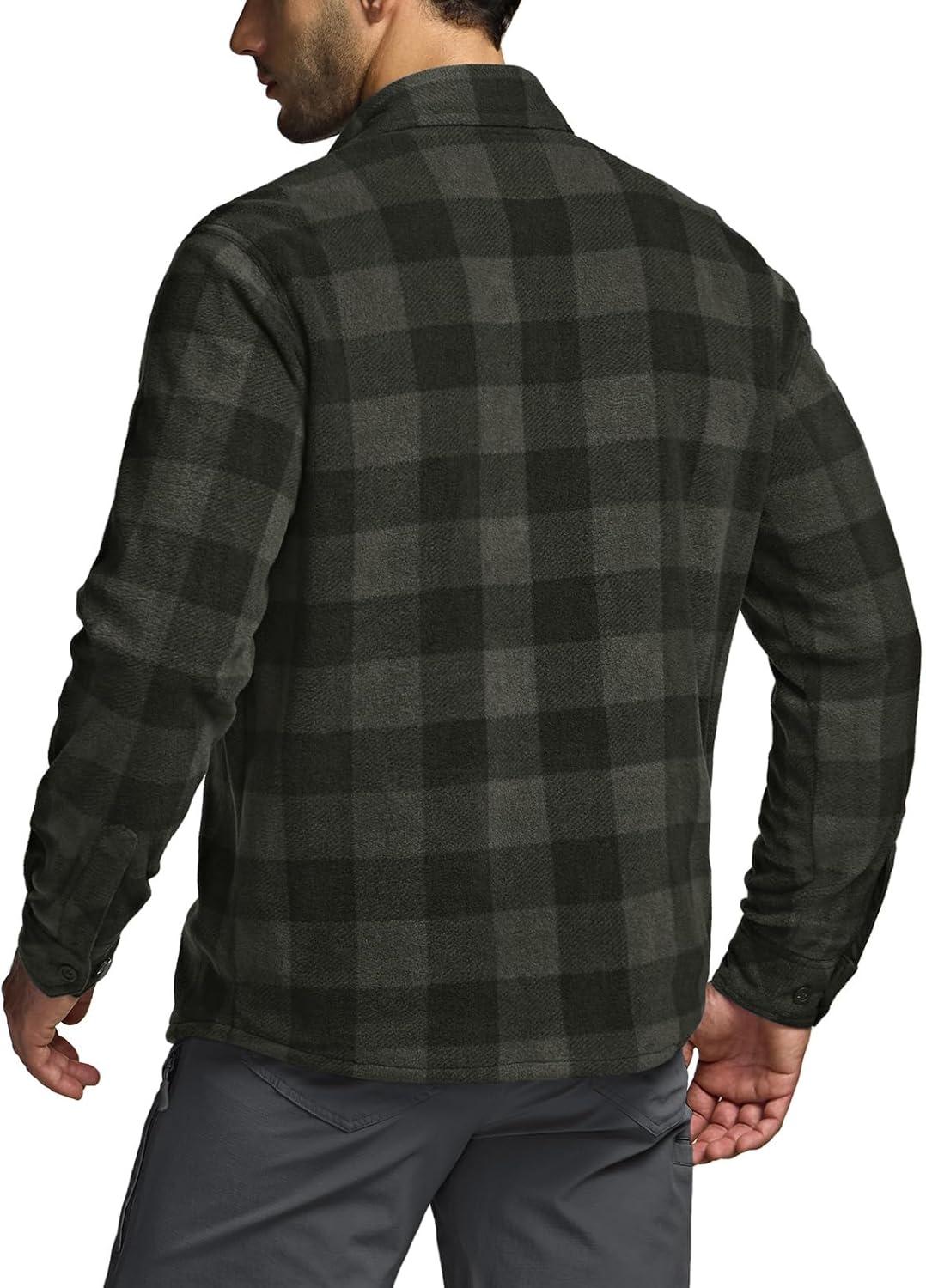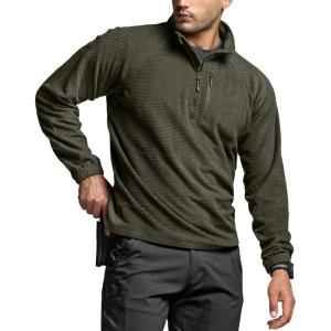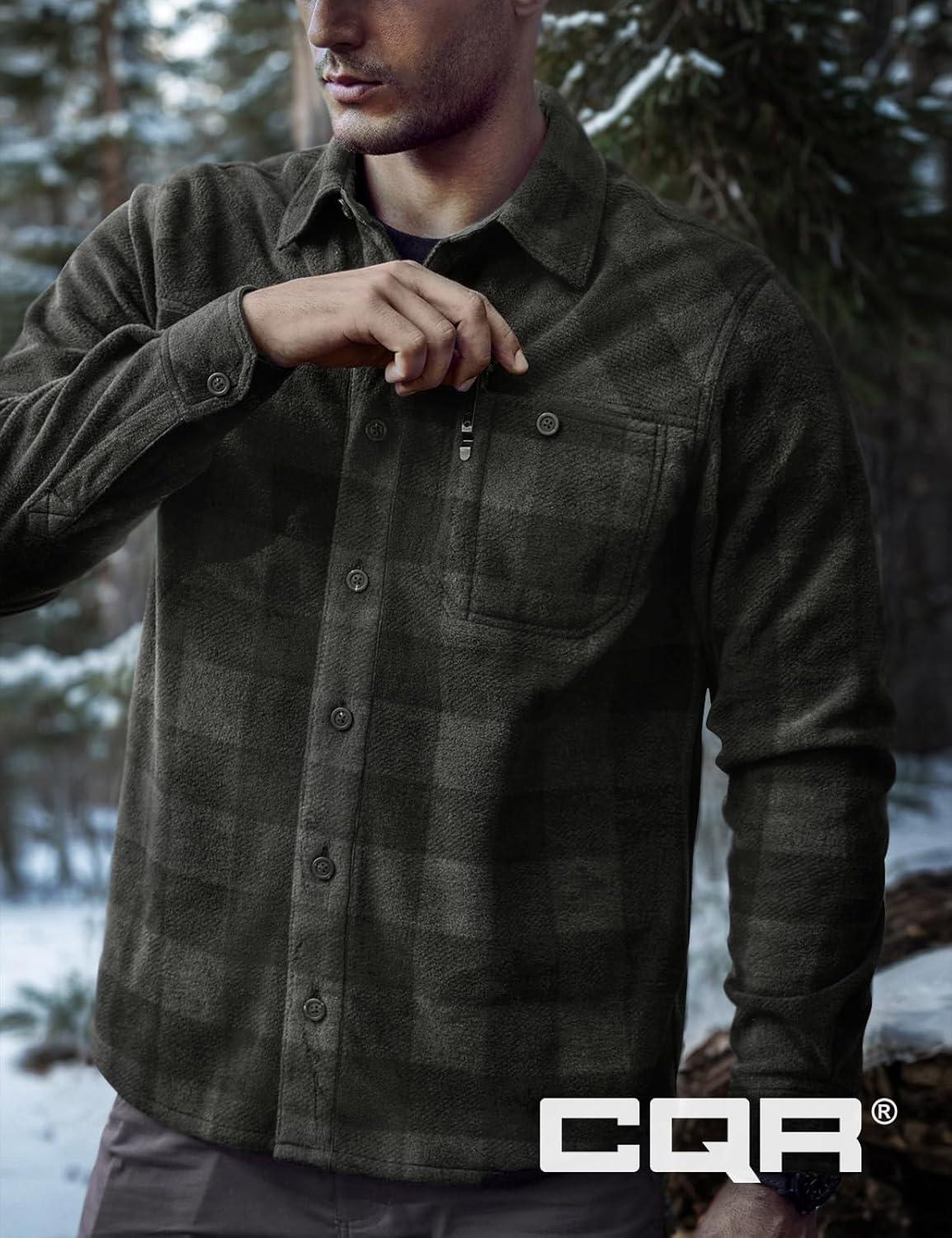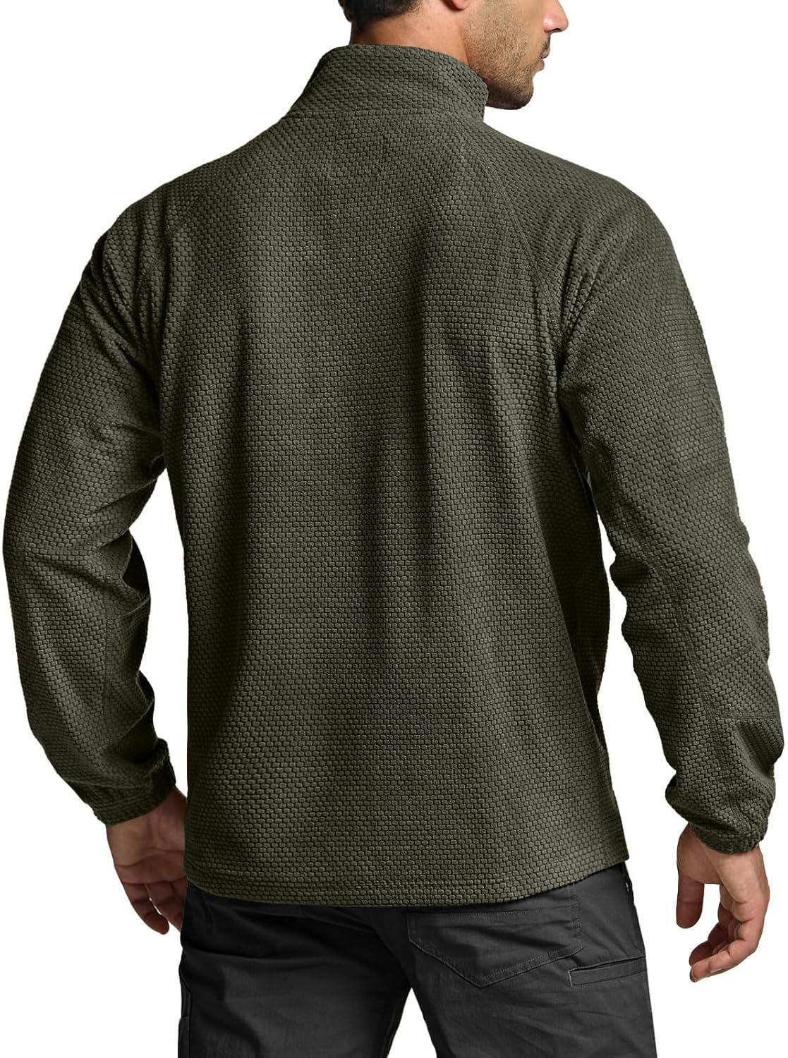 CQR Men’s Full-Zip Tactical Jacket, Soft Warm Military Winter Fleece Jackets, Outdoor Coats with Zipper Pockets(Grid Flex Army Green)