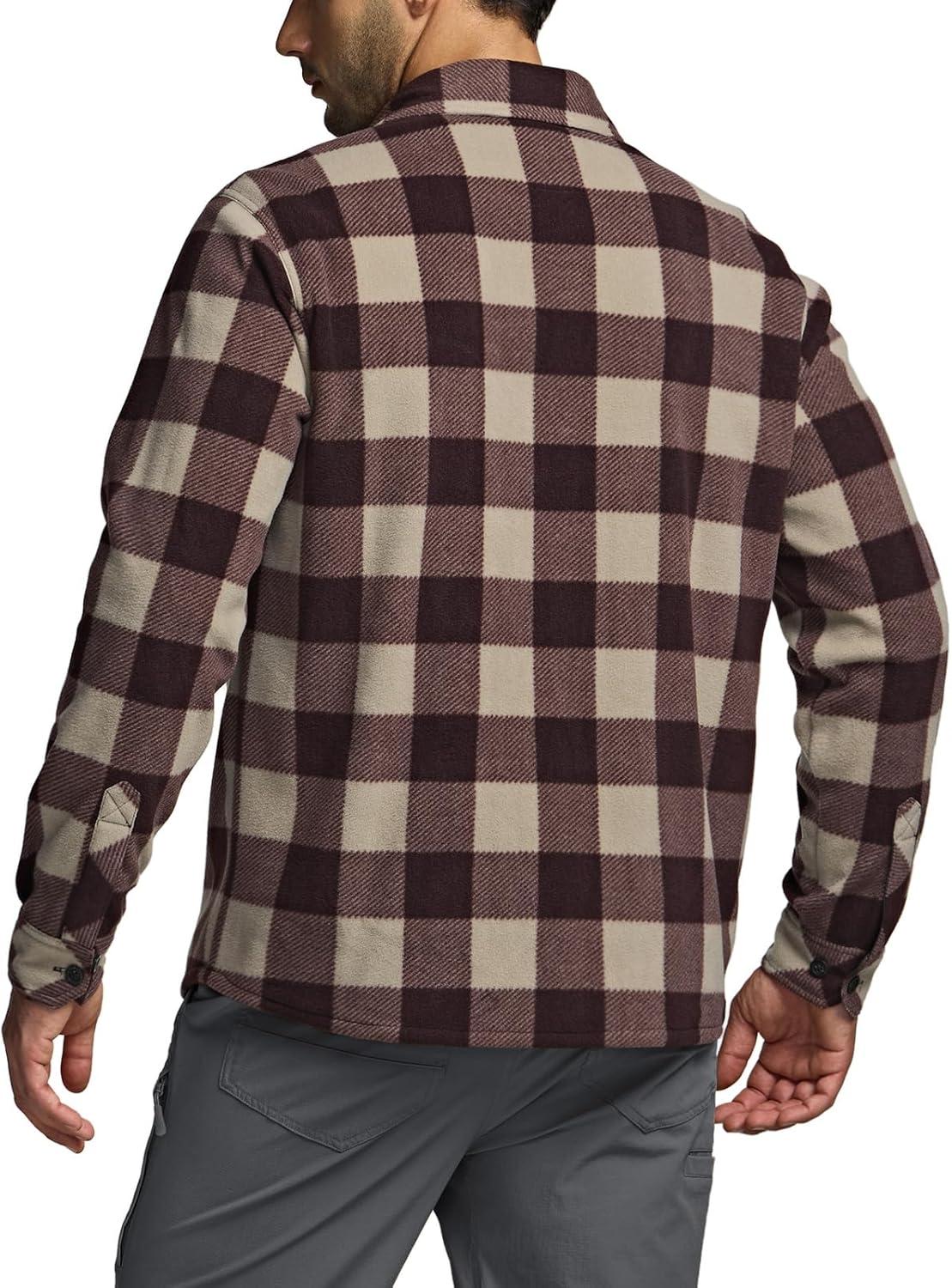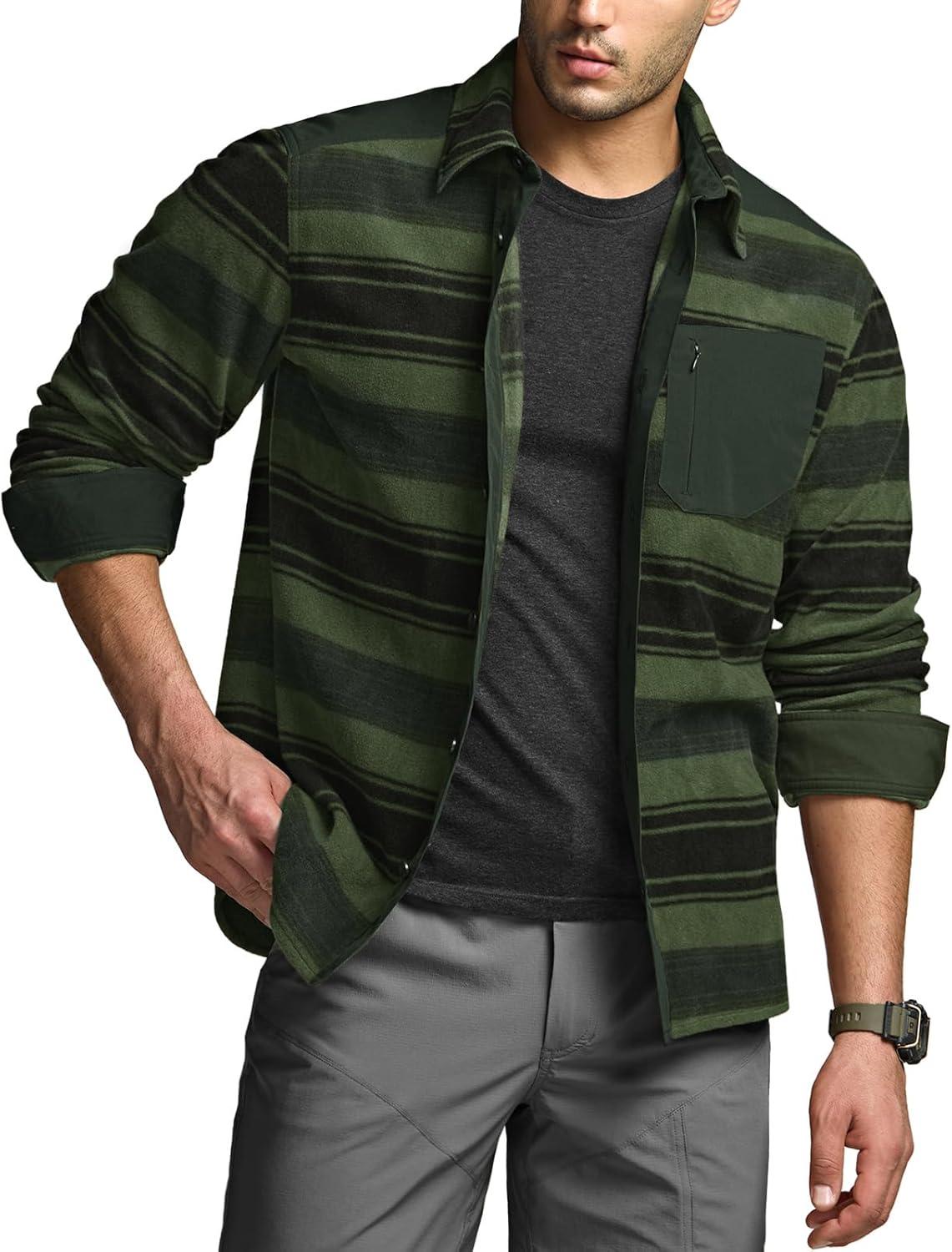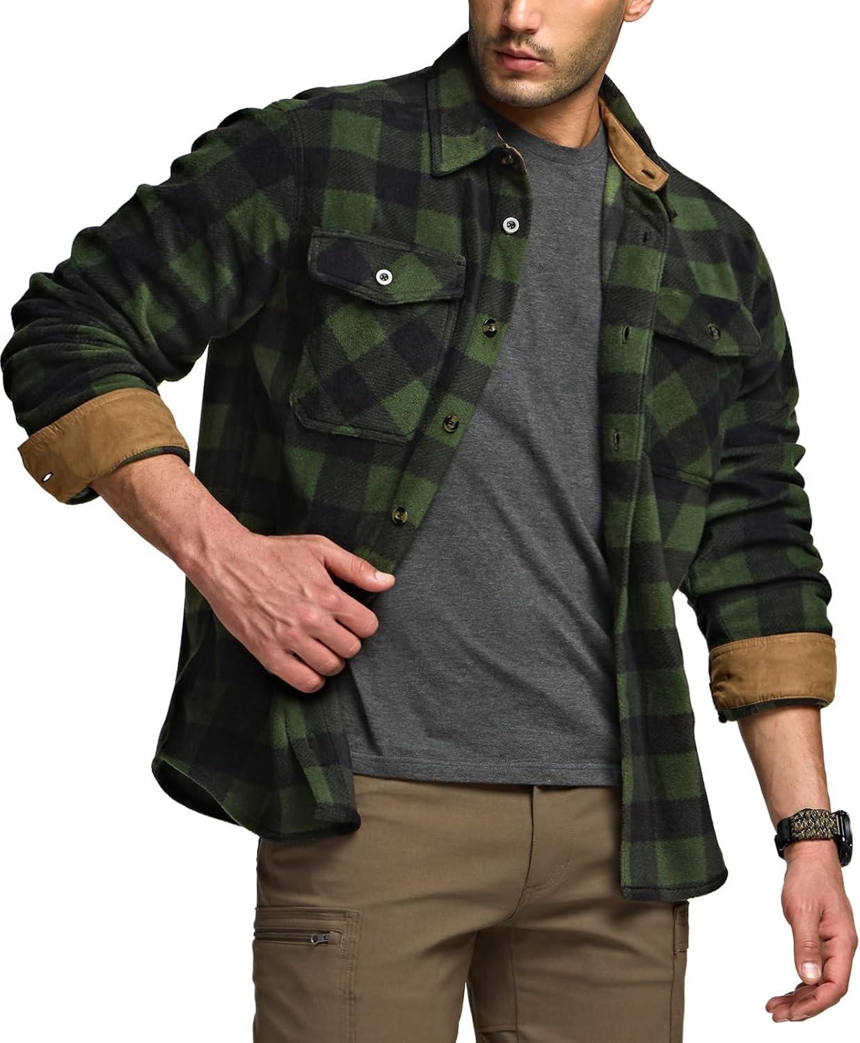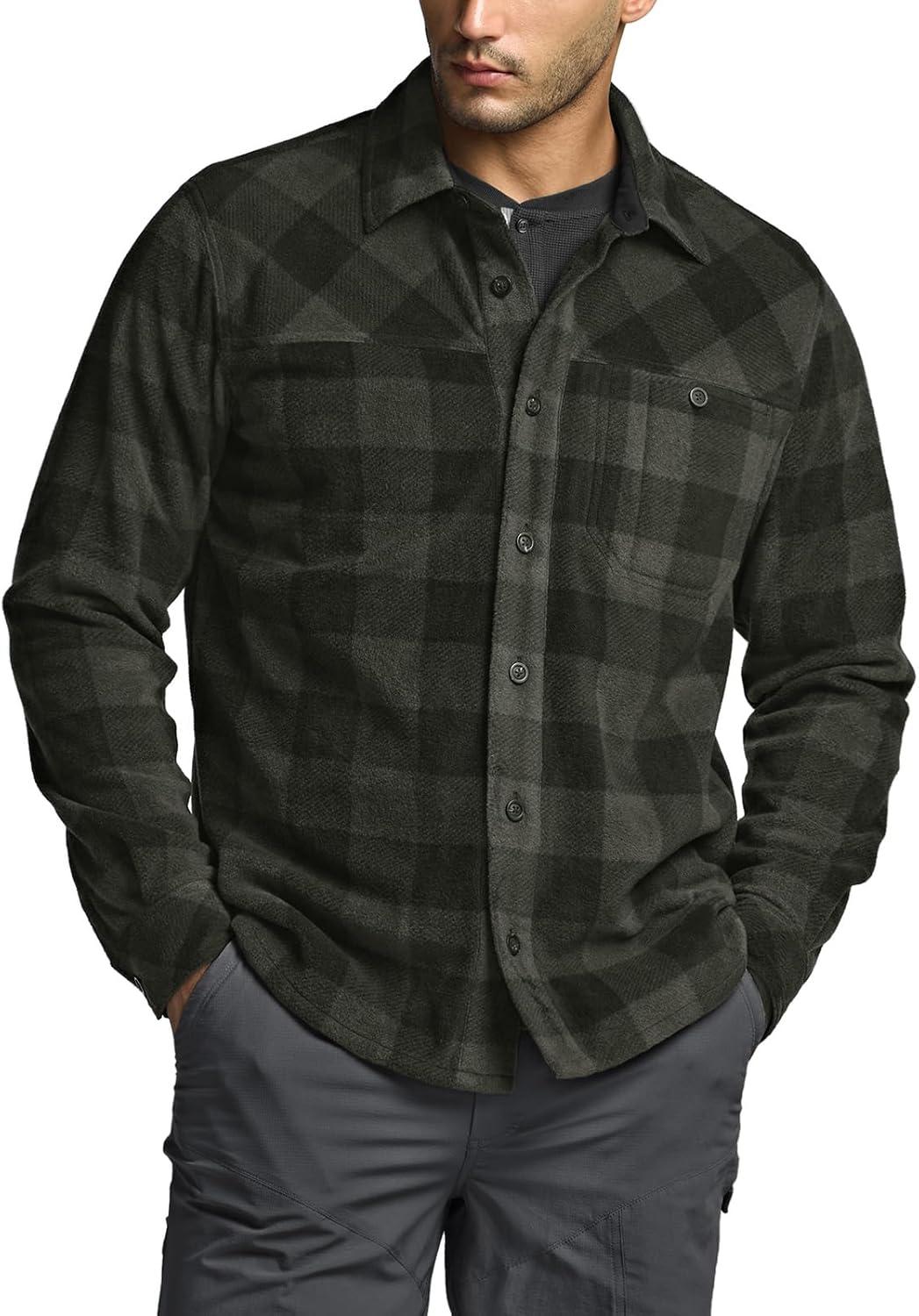 CQR Men’s Full-Zip Tactical Jacket, Soft Warm Military Winter Fleece Jackets, Outdoor Coats with Zipper Pockets(Grid Flex Army Green)