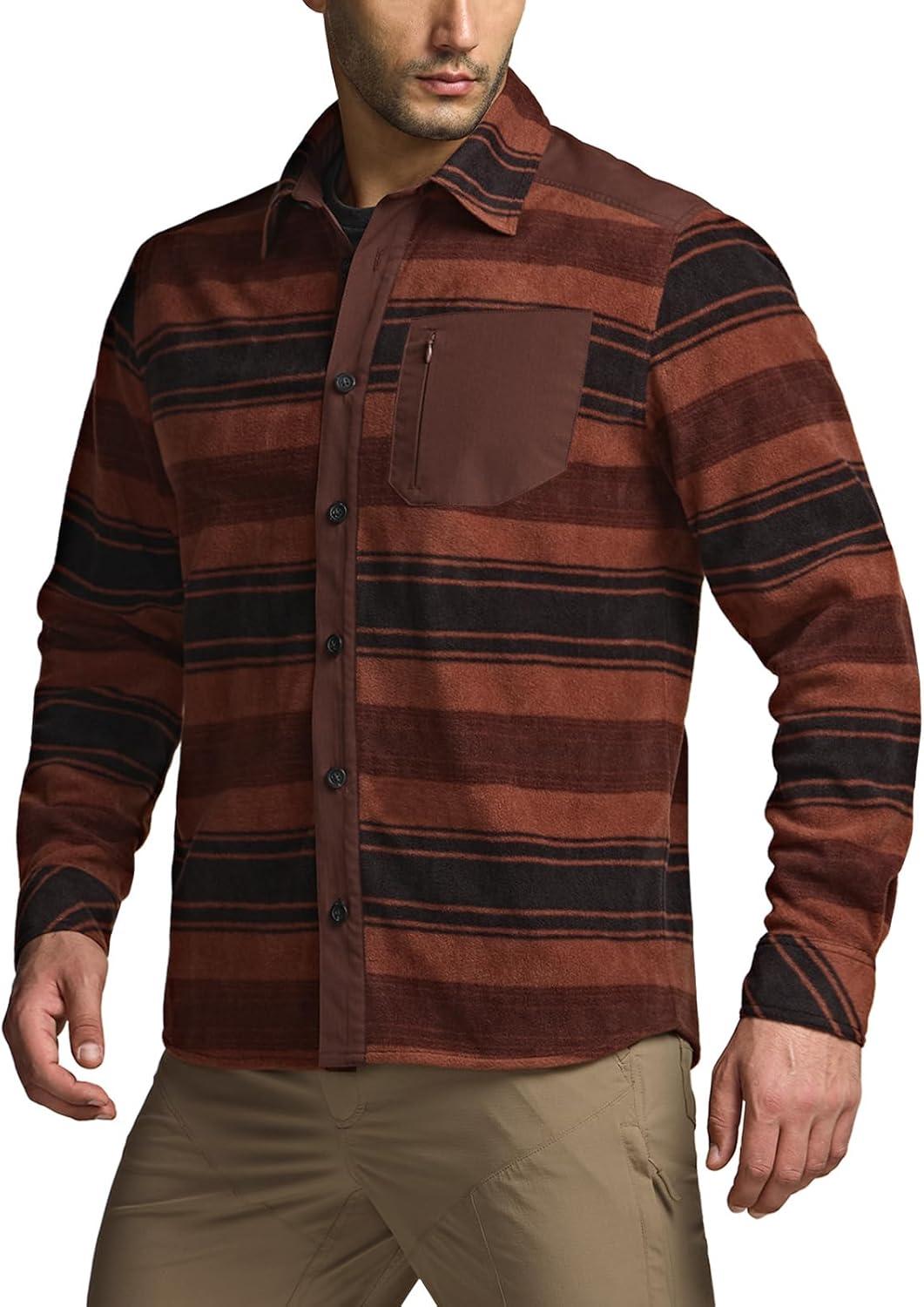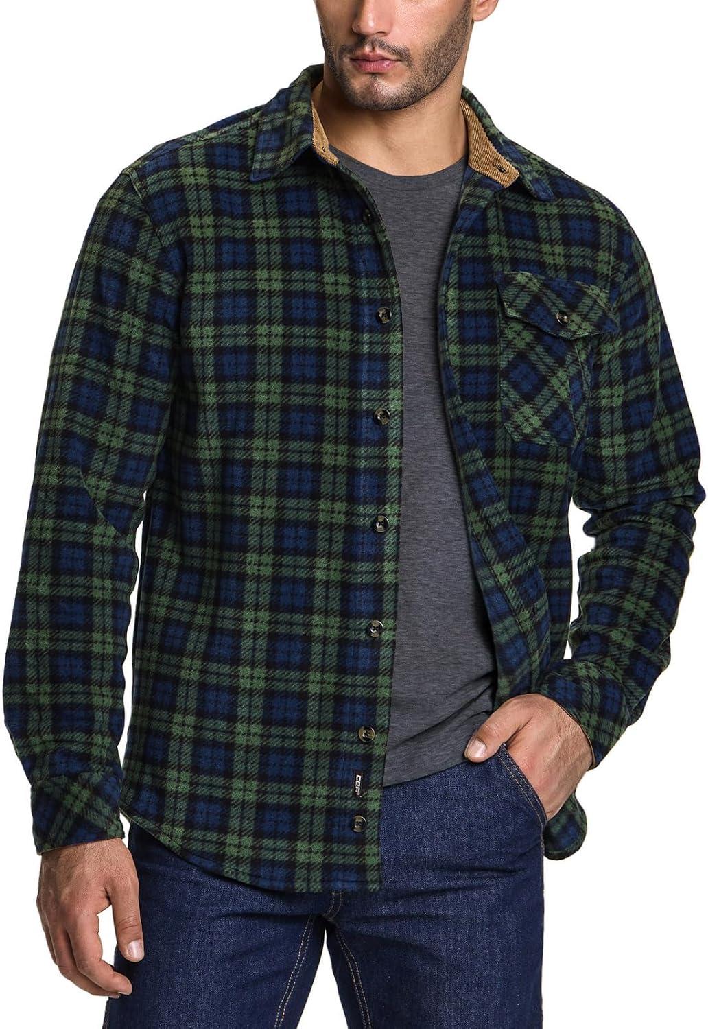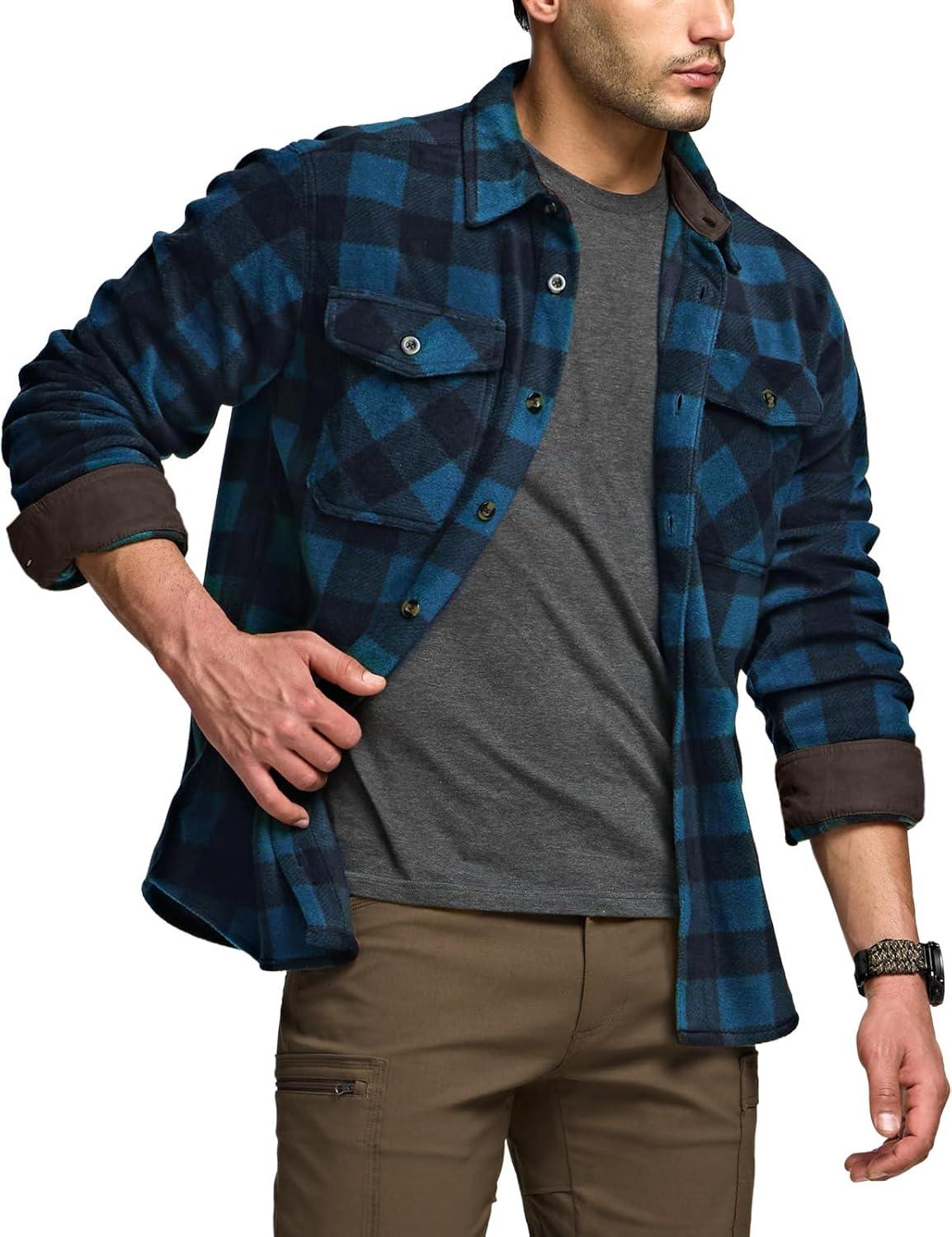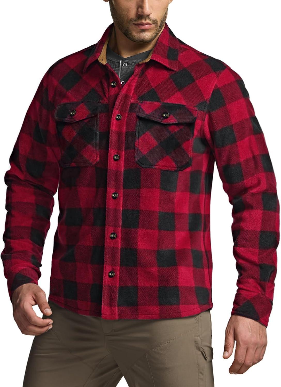 CQR Men’s Full-Zip Tactical Jacket, Soft Warm Military Winter Fleece Jackets, Outdoor Coats with Zipper Pockets(Grid Flex Army Green)