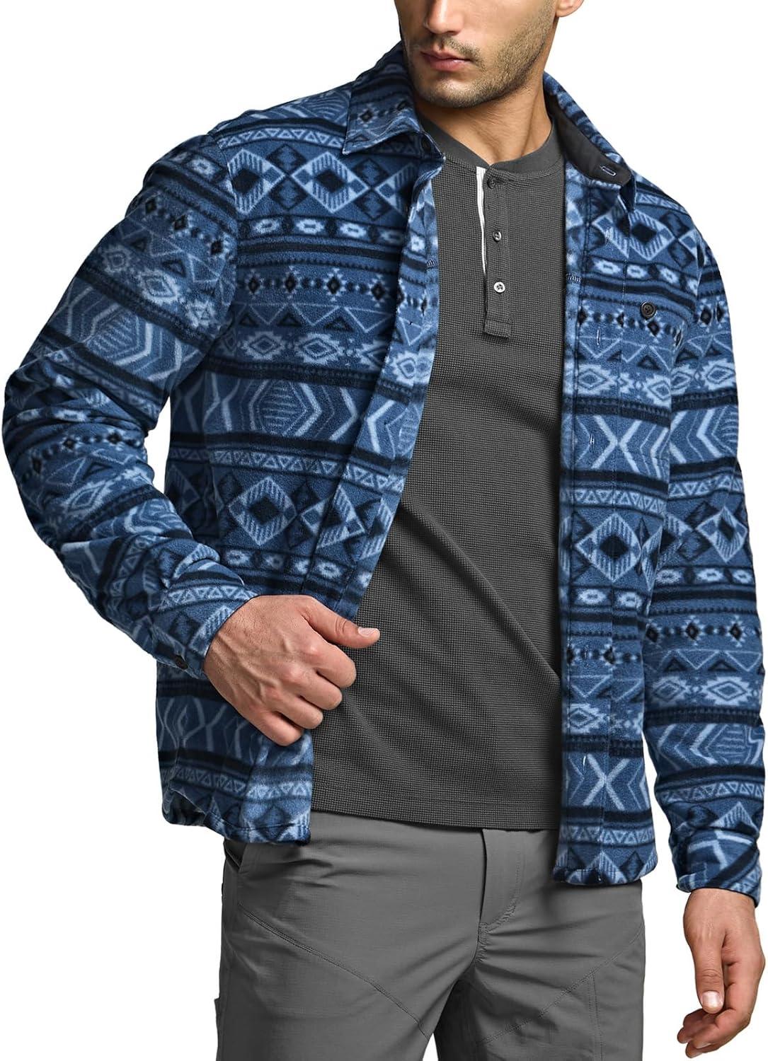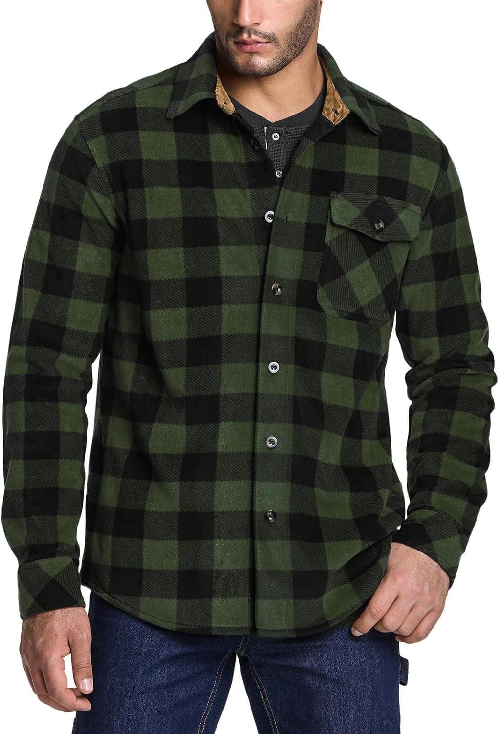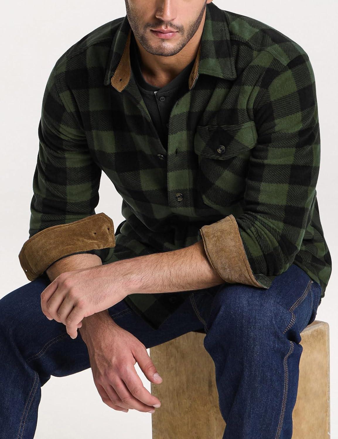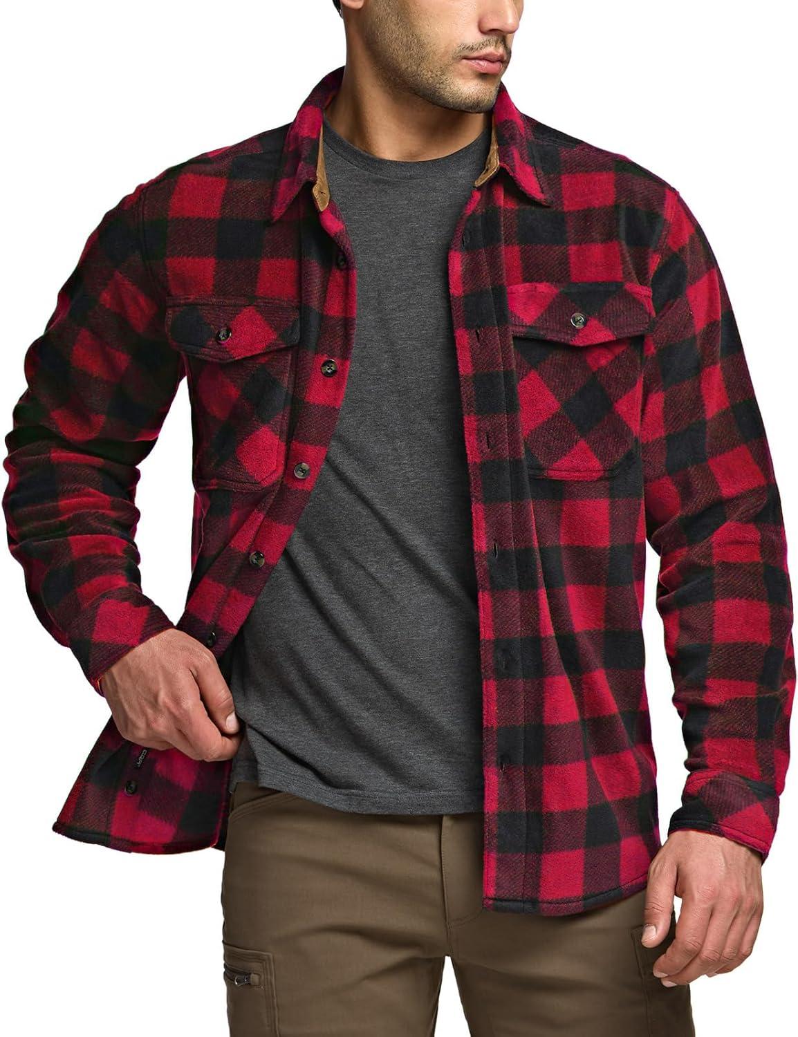CQR Men’s Full-Zip Tactical Jacket, Soft Warm Military Winter Fleece Jackets, Outdoor Coats with Zipper Pockets(Grid Flex Army Green)