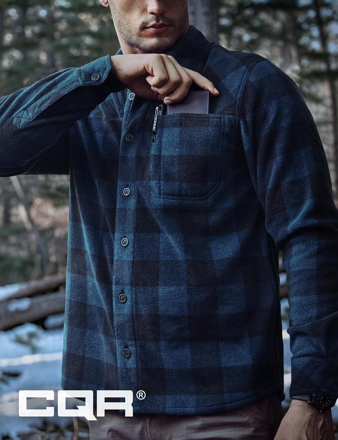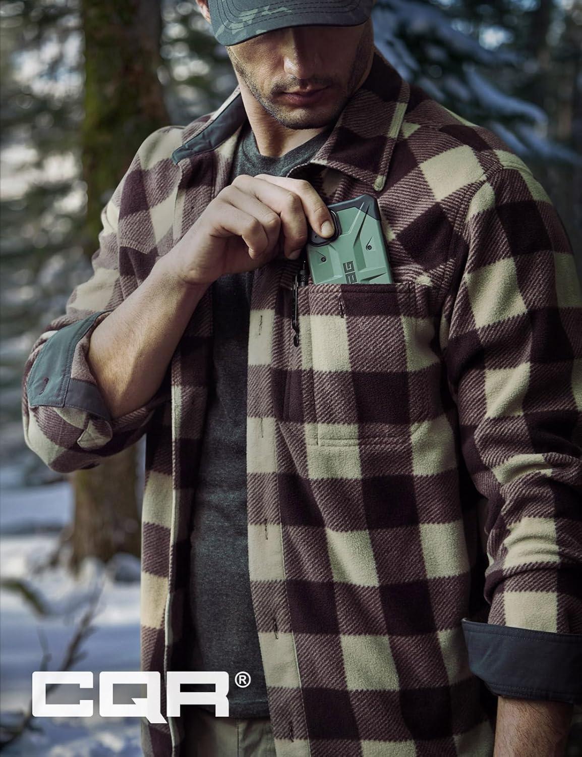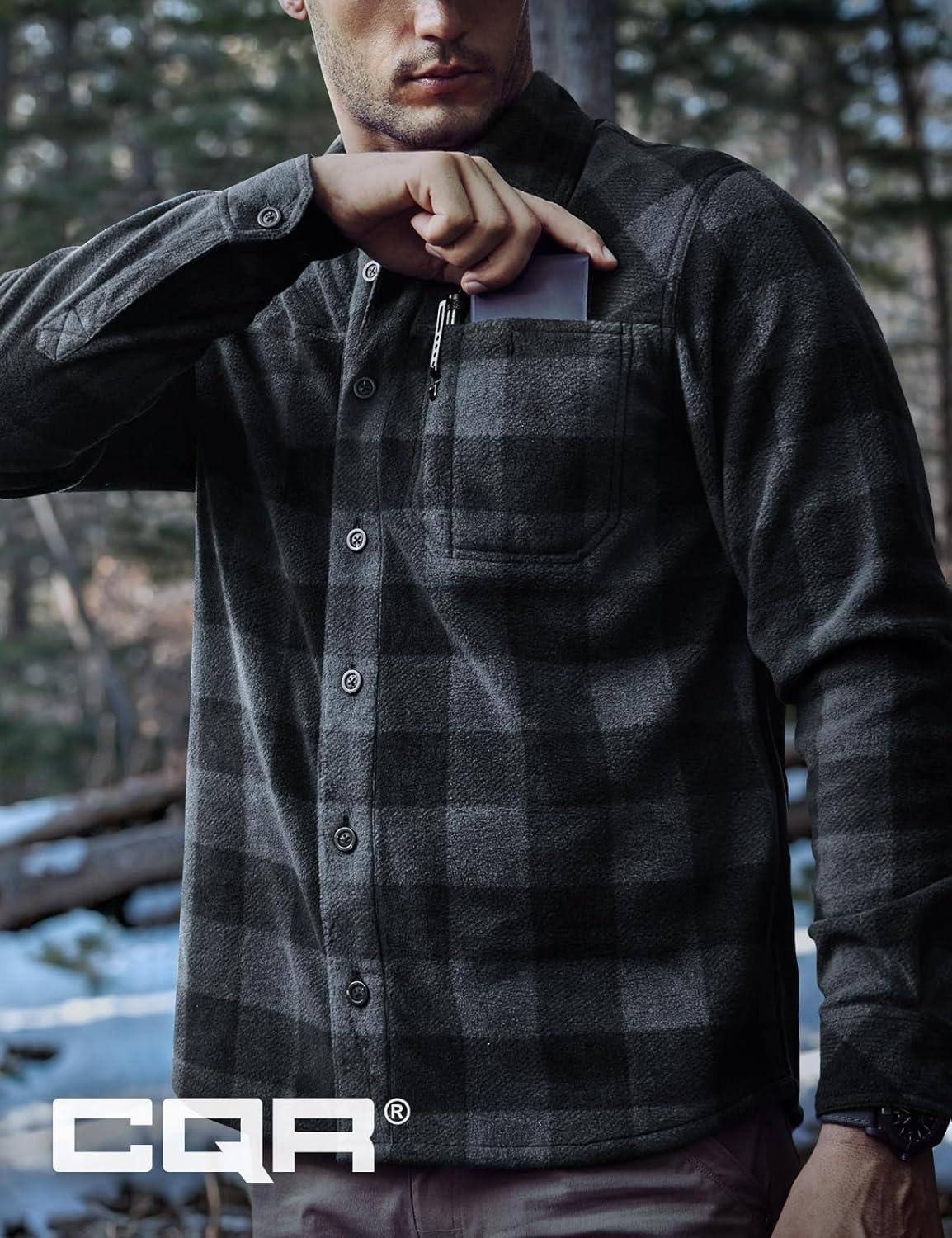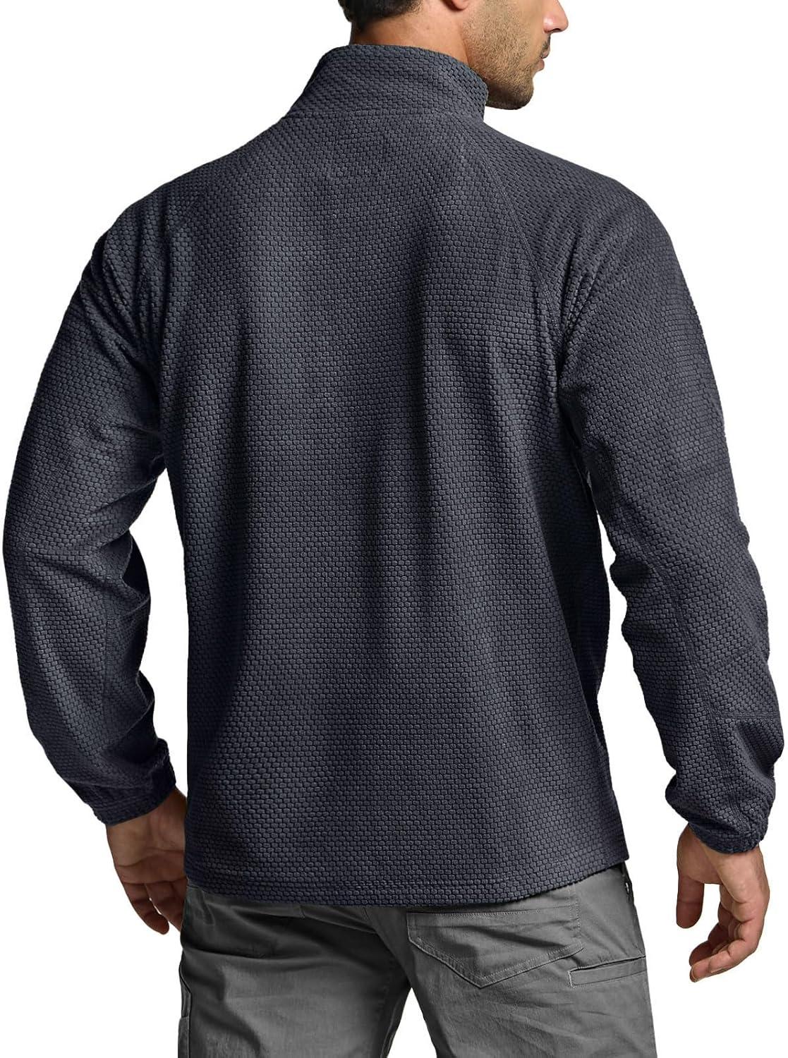 CQR Men’s Full-Zip Tactical Jacket, Soft Warm Military Winter Fleece Jackets, Outdoor Coats with Zipper Pockets(Grid Flex Charcoal)
