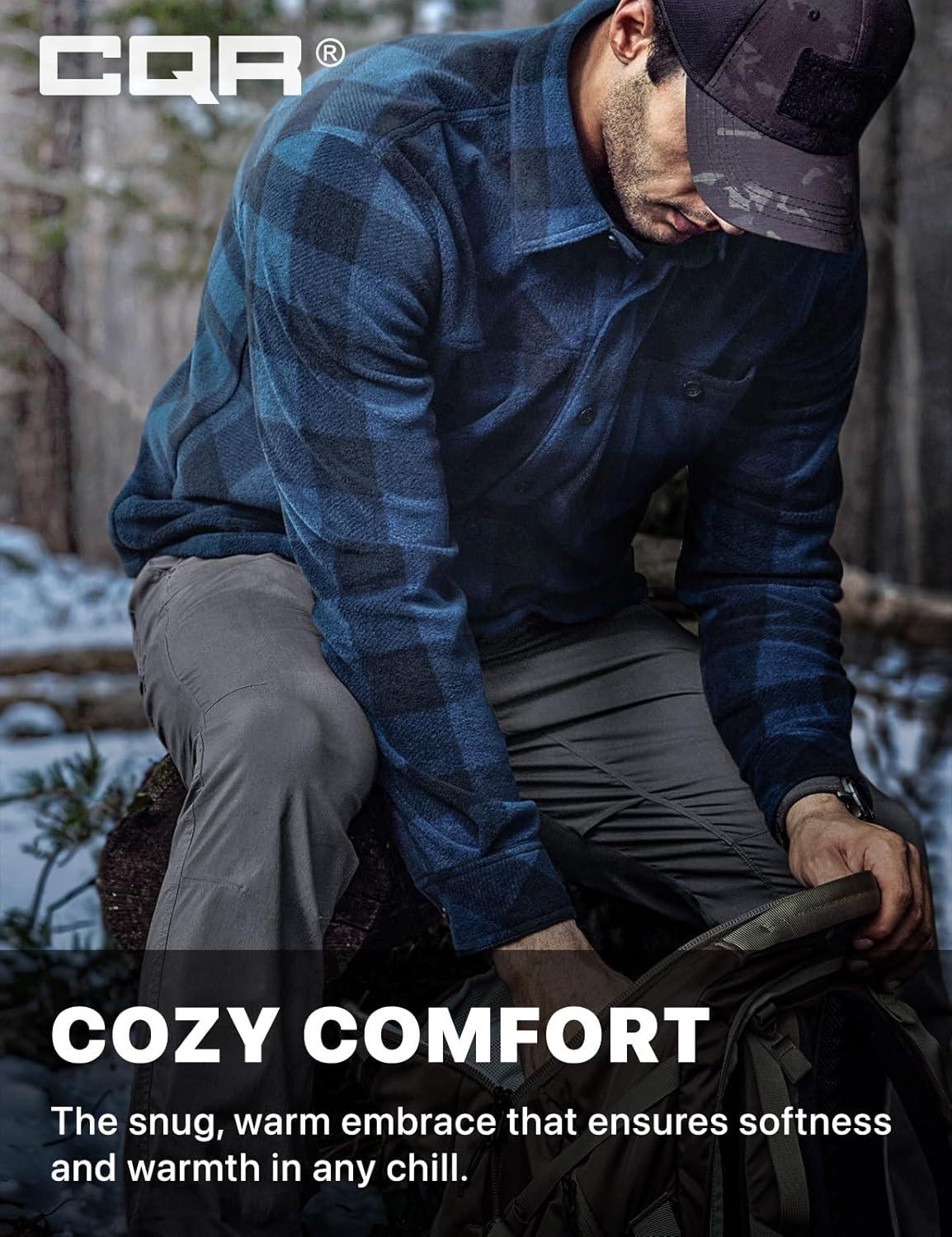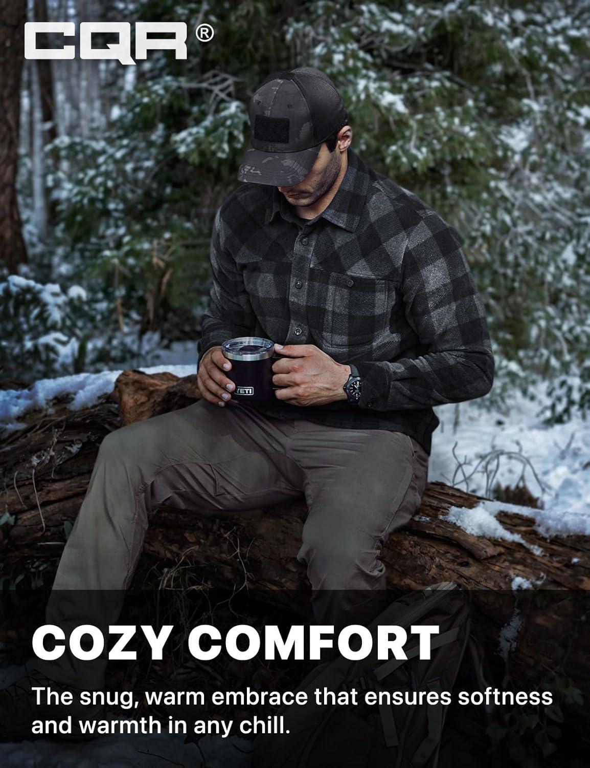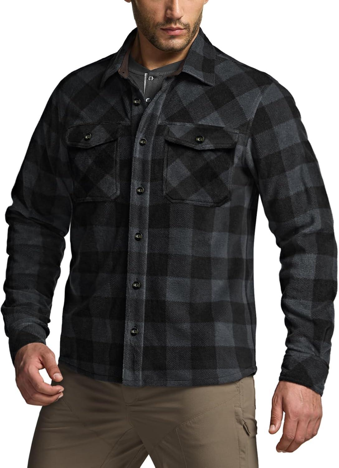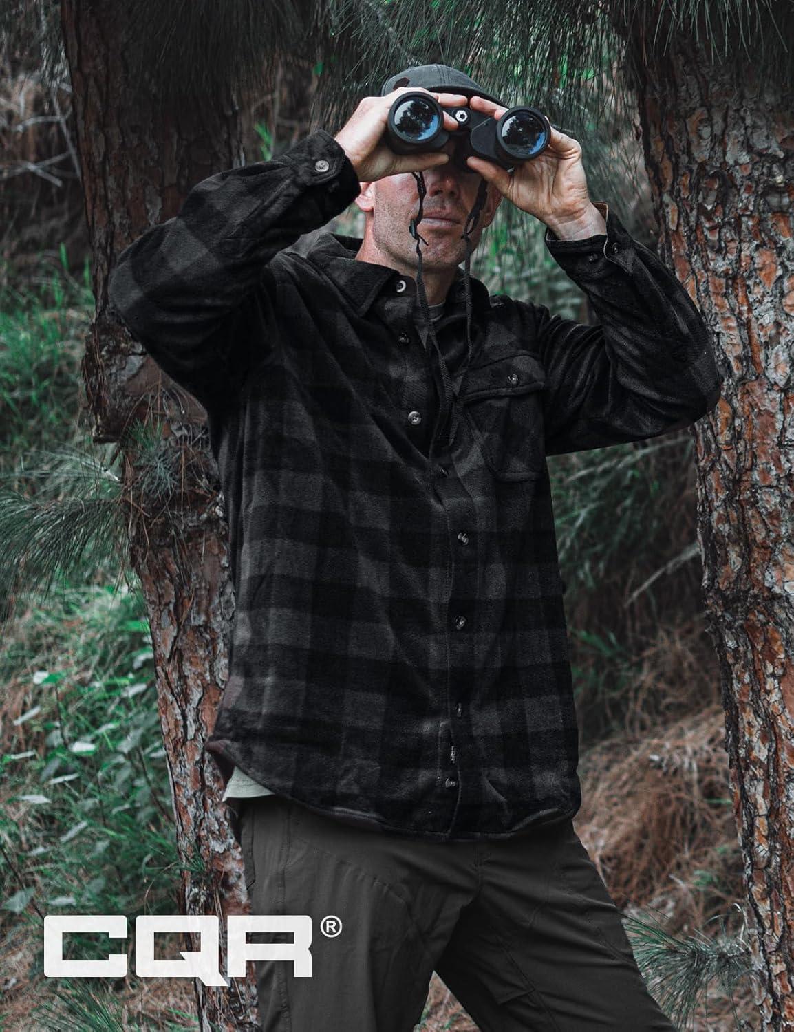 CQR Men’s Full-Zip Tactical Jacket, Soft Warm Military Winter Fleece Jackets, Outdoor Coats with Zipper Pockets(Grid Flex Charcoal)