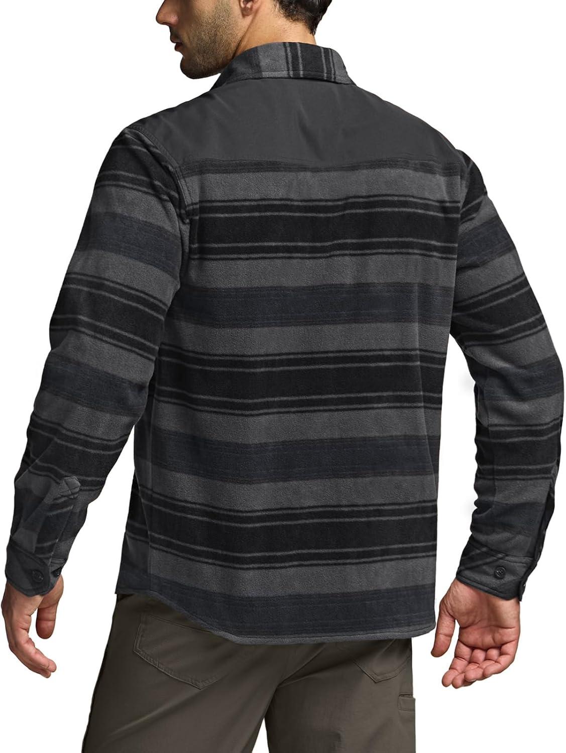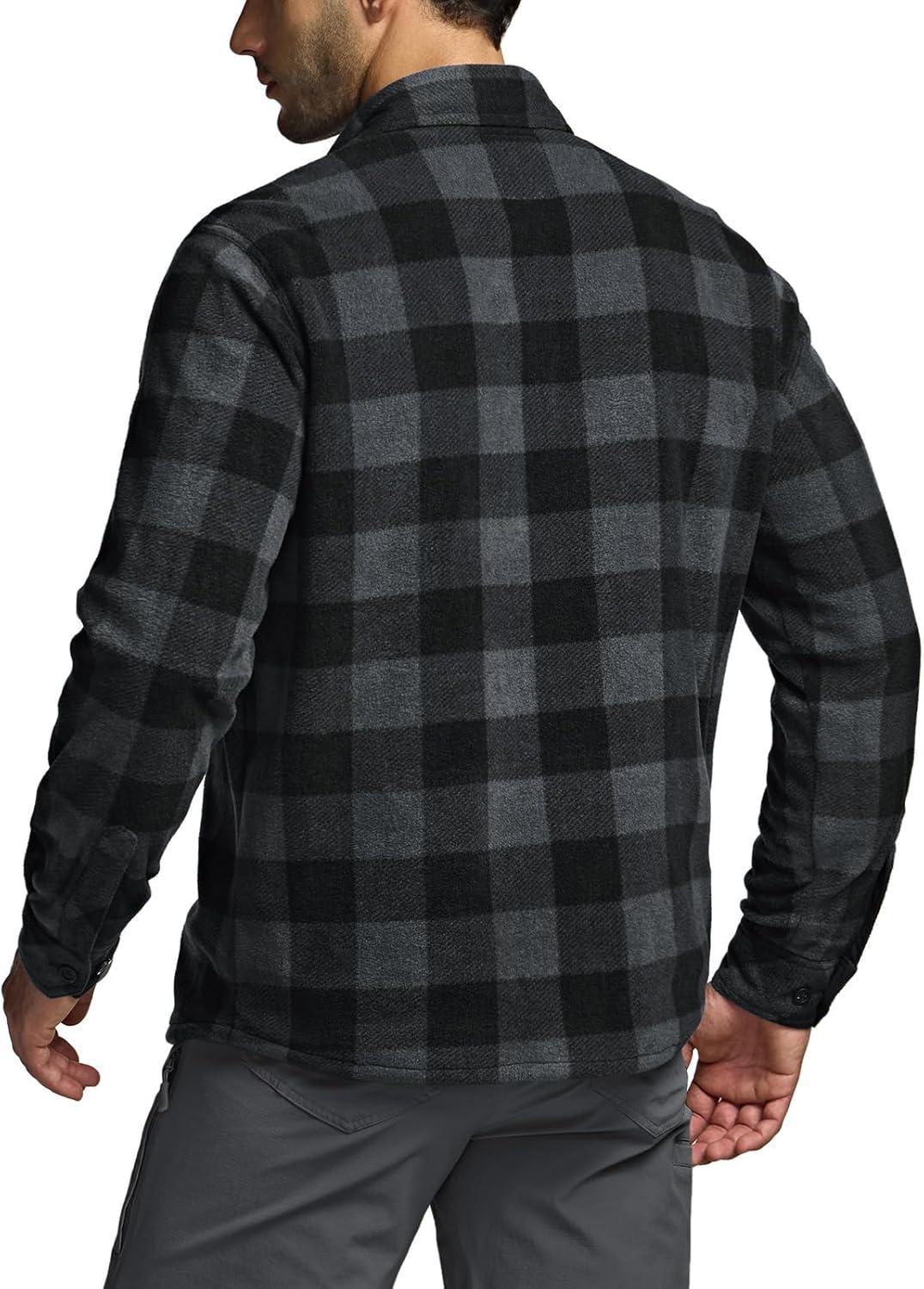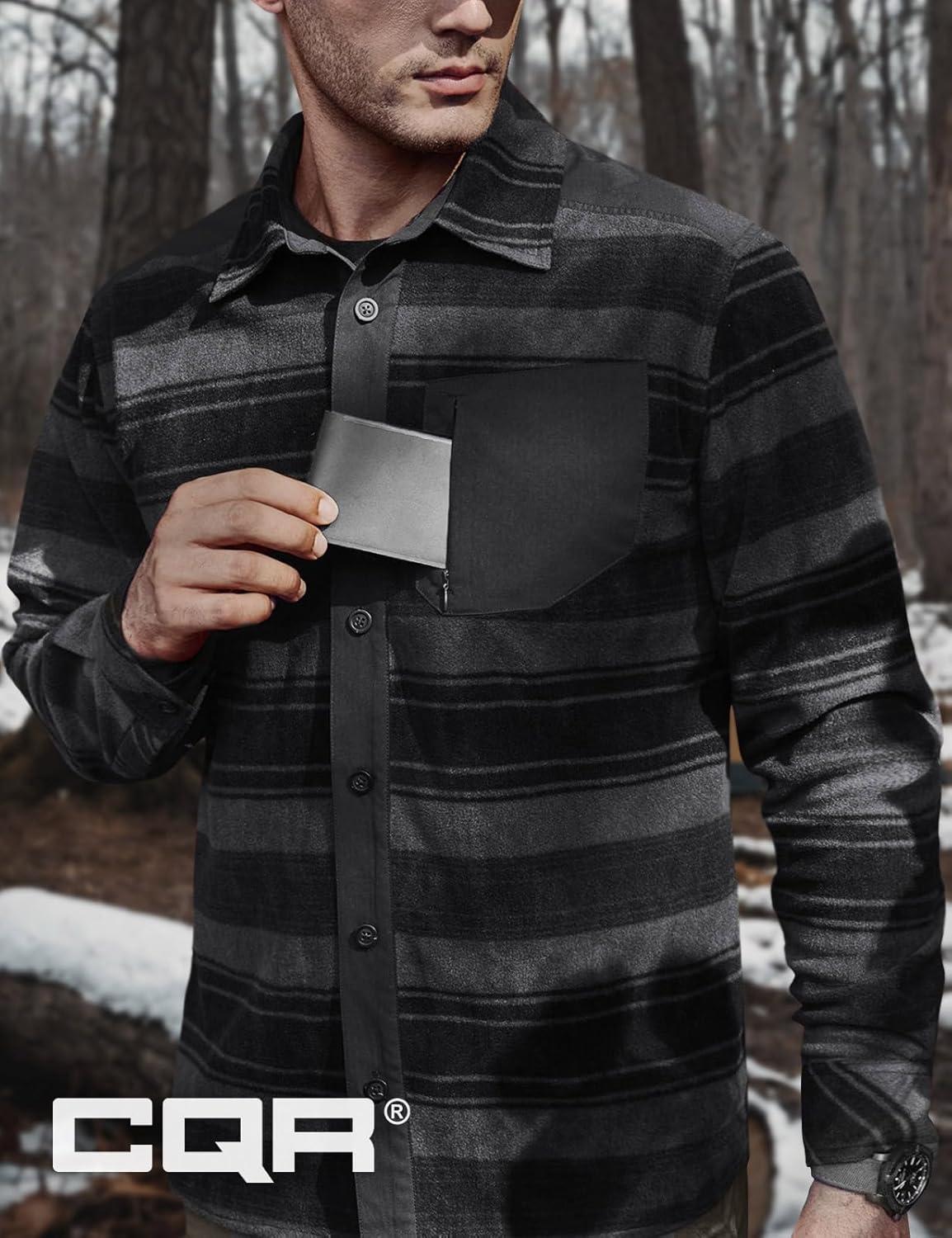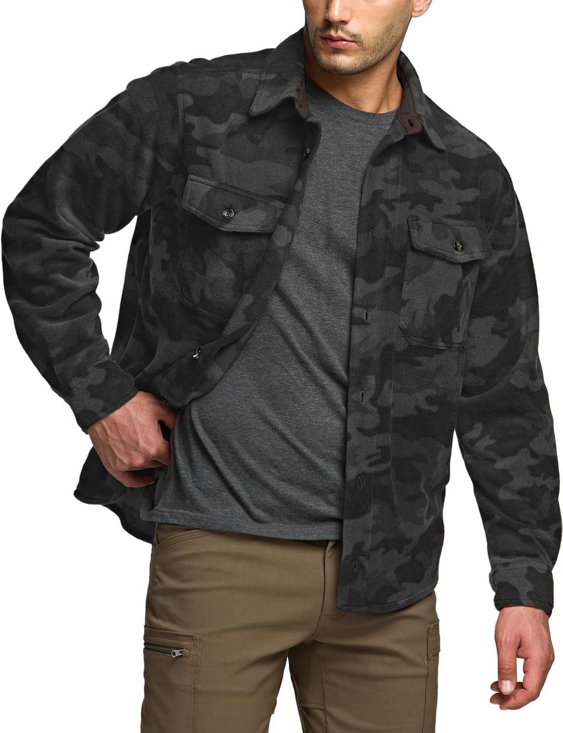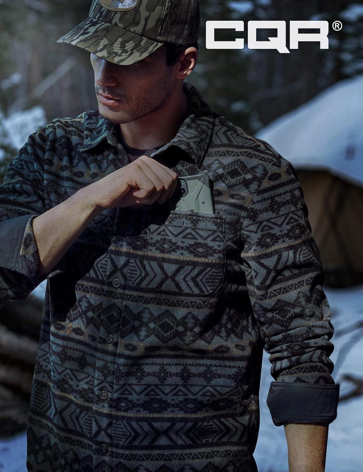 CQR Men’s Full-Zip Tactical Jacket, Soft Warm Military Winter Fleece Jackets, Outdoor Coats with Zipper Pockets(Grid Flex Charcoal)