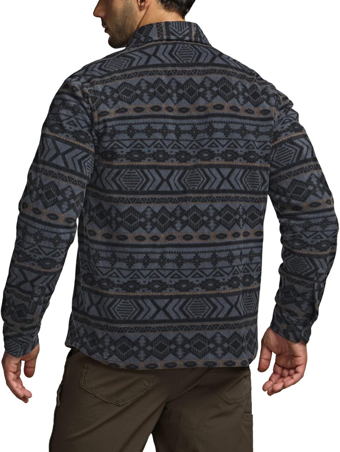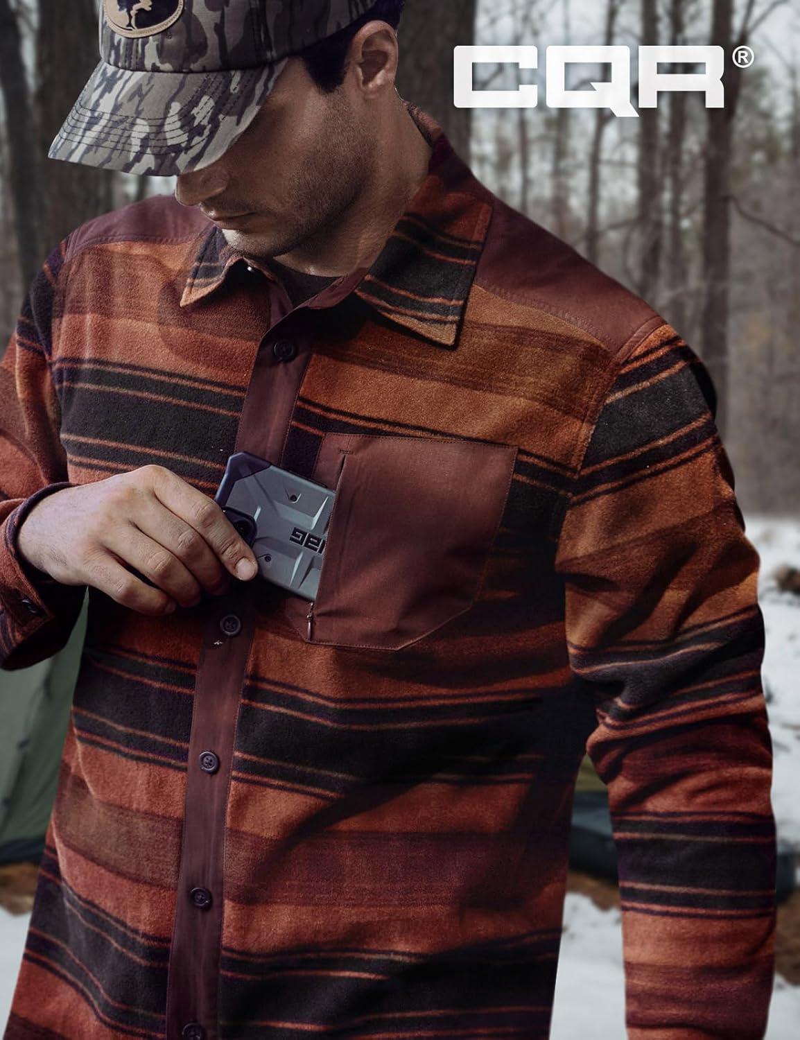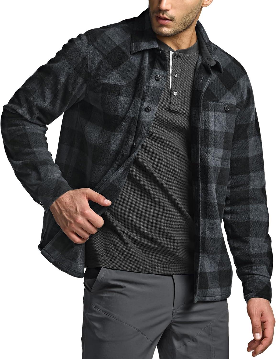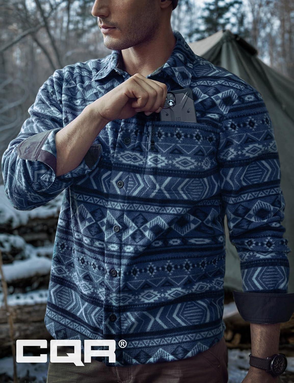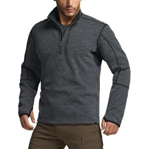 CQR Men’s Full-Zip Tactical Jacket, Soft Warm Military Winter Fleece Jackets, Outdoor Coats with Zipper Pockets(Grid Flex Charcoal)