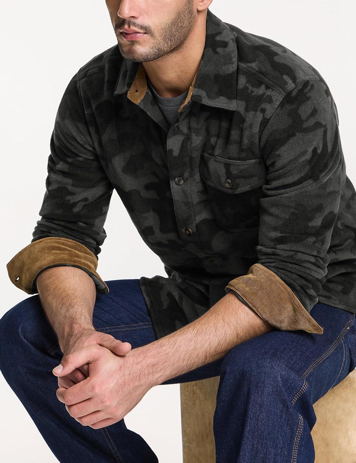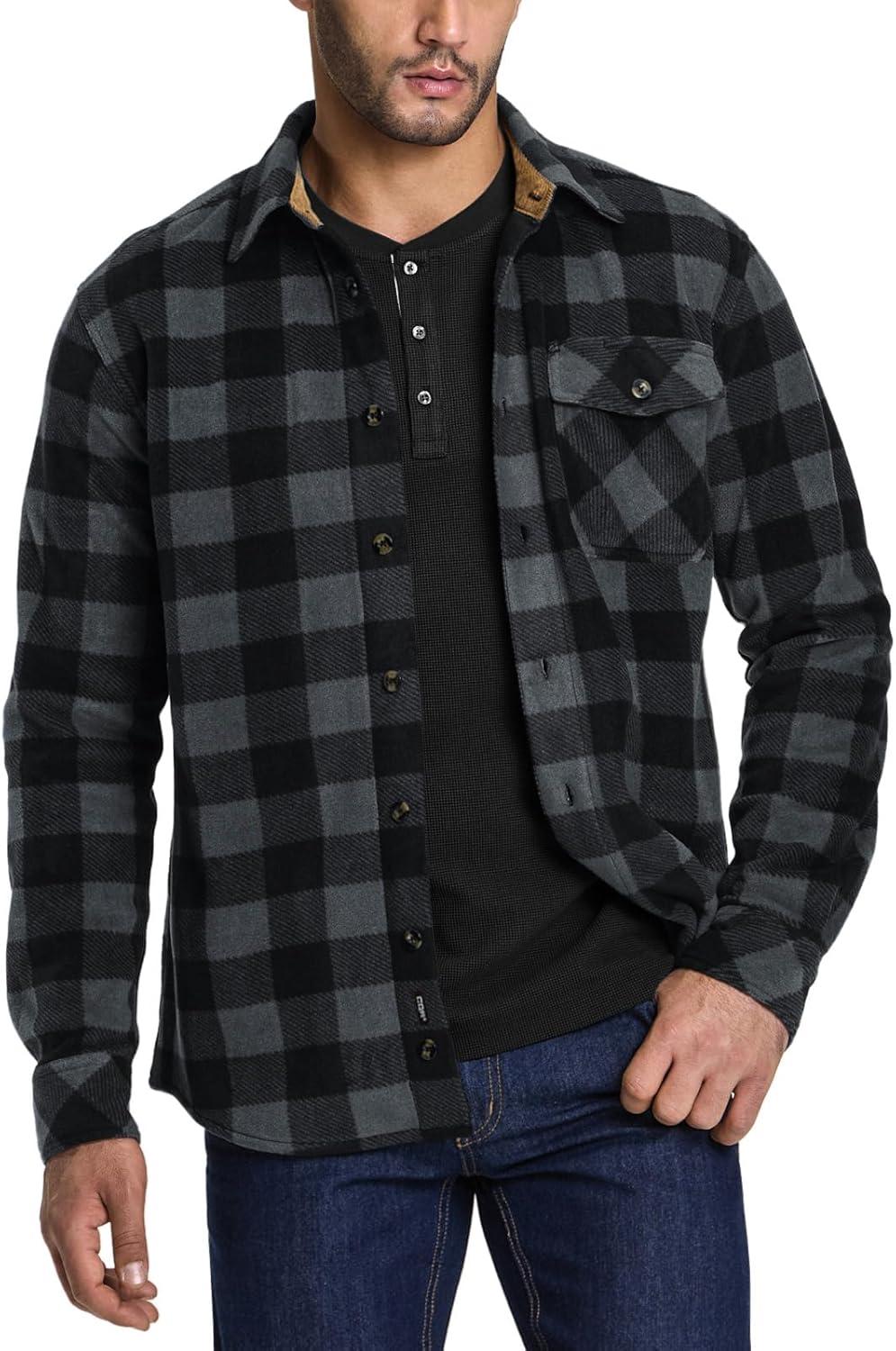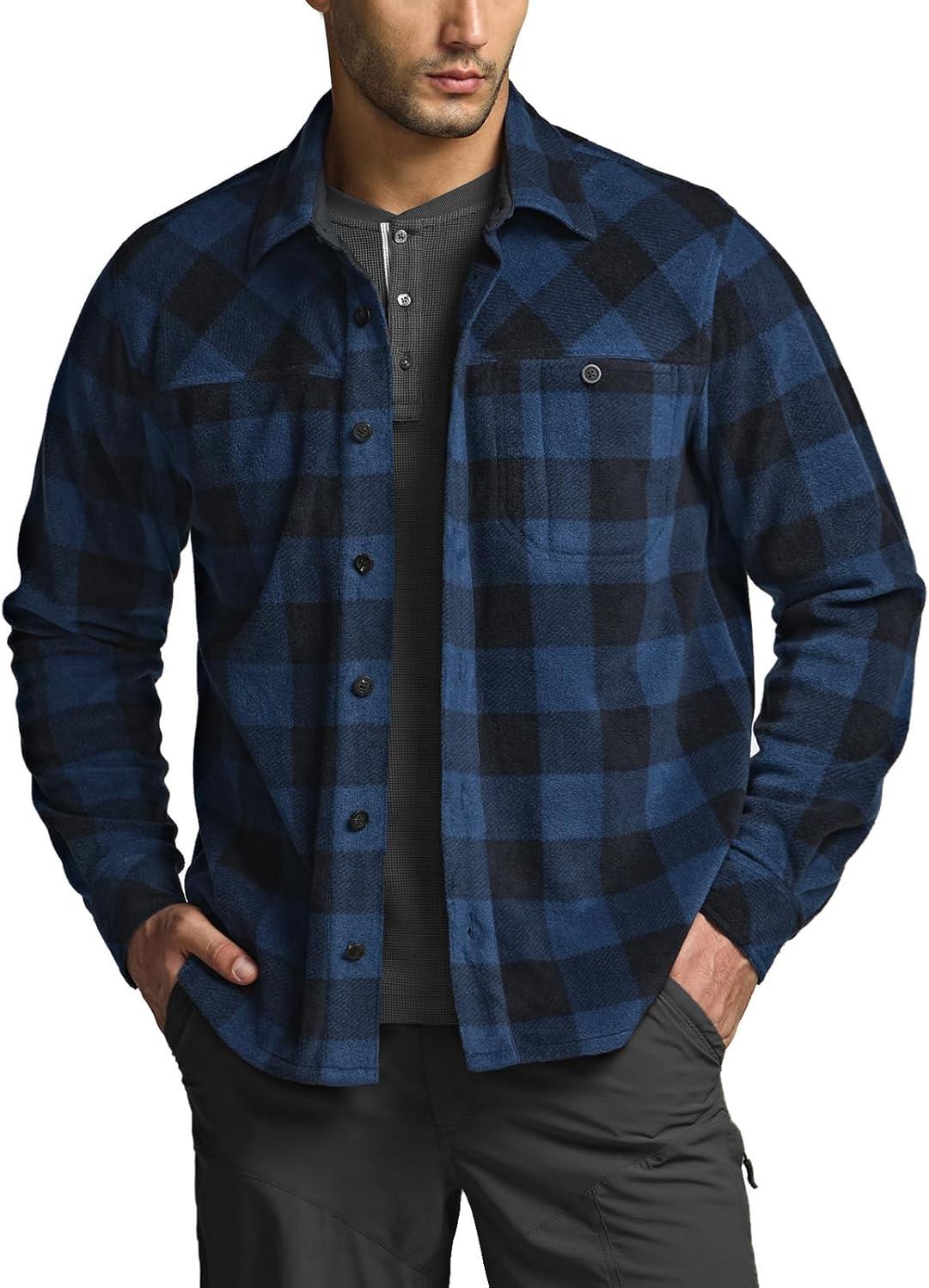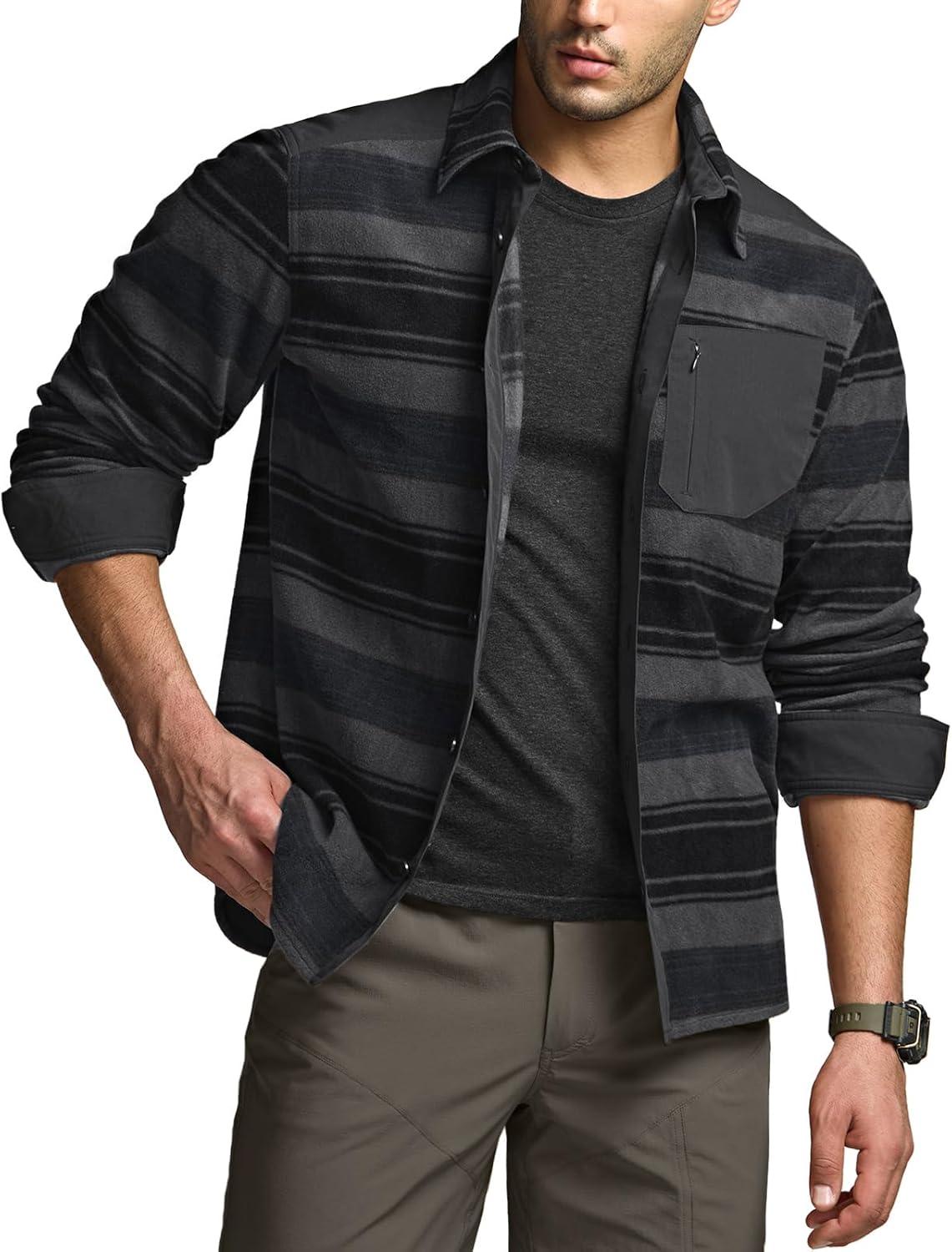 CQR Men’s Full-Zip Tactical Jacket, Soft Warm Military Winter Fleece Jackets, Outdoor Coats with Zipper Pockets(Grid Flex Charcoal)