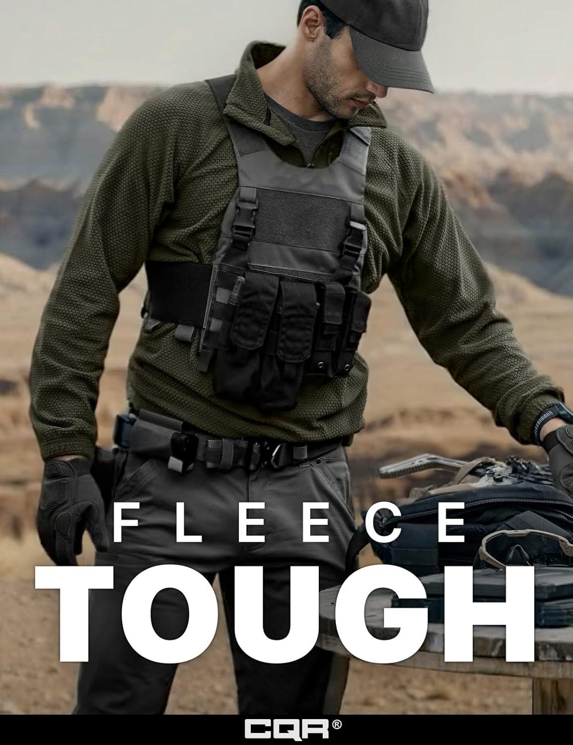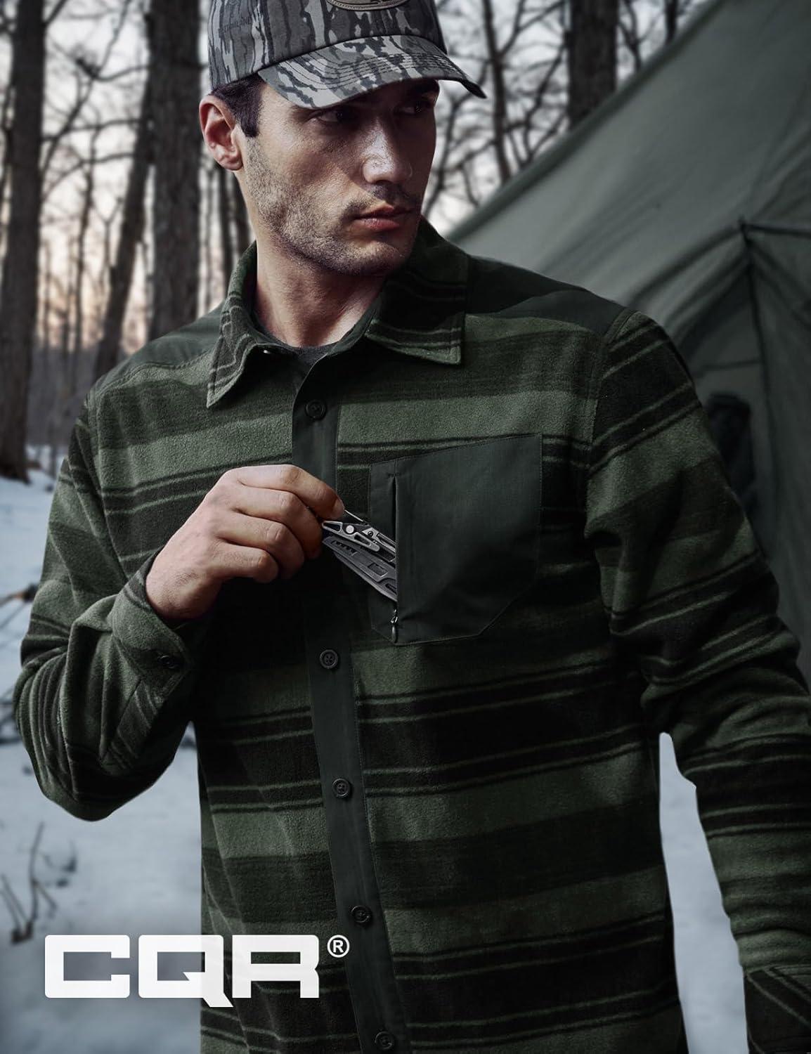 CQR Men’s Full-Zip Tactical Jacket, Soft Warm Military Winter Fleece Jackets, Outdoor Coats with Zipper Pockets(Guardian Army Green)