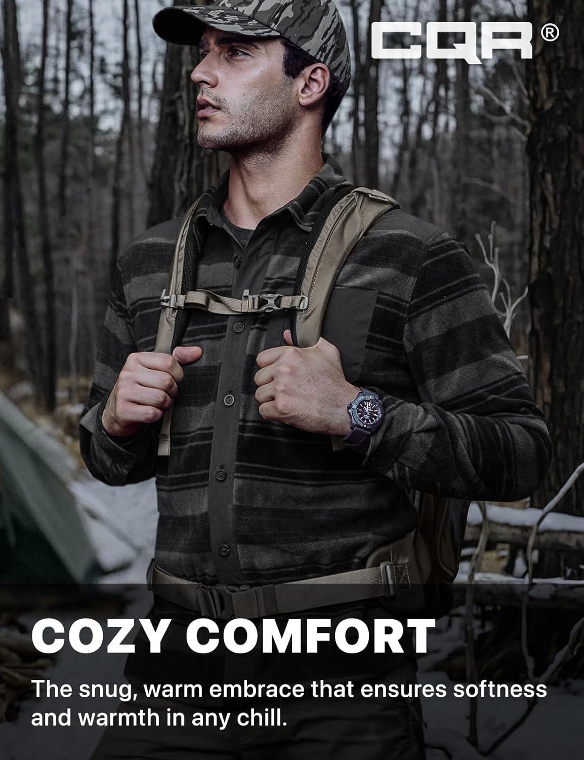 CQR Men’s Full-Zip Tactical Jacket, Soft Warm Military Winter Fleece Jackets, Outdoor Coats with Zipper Pockets(Guardian Charcoal)