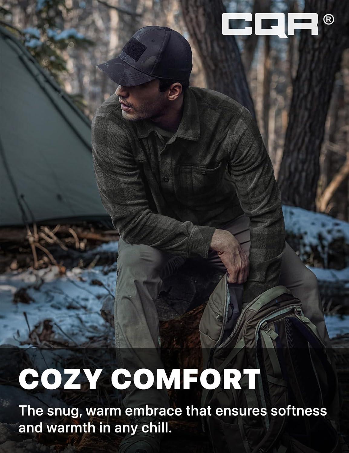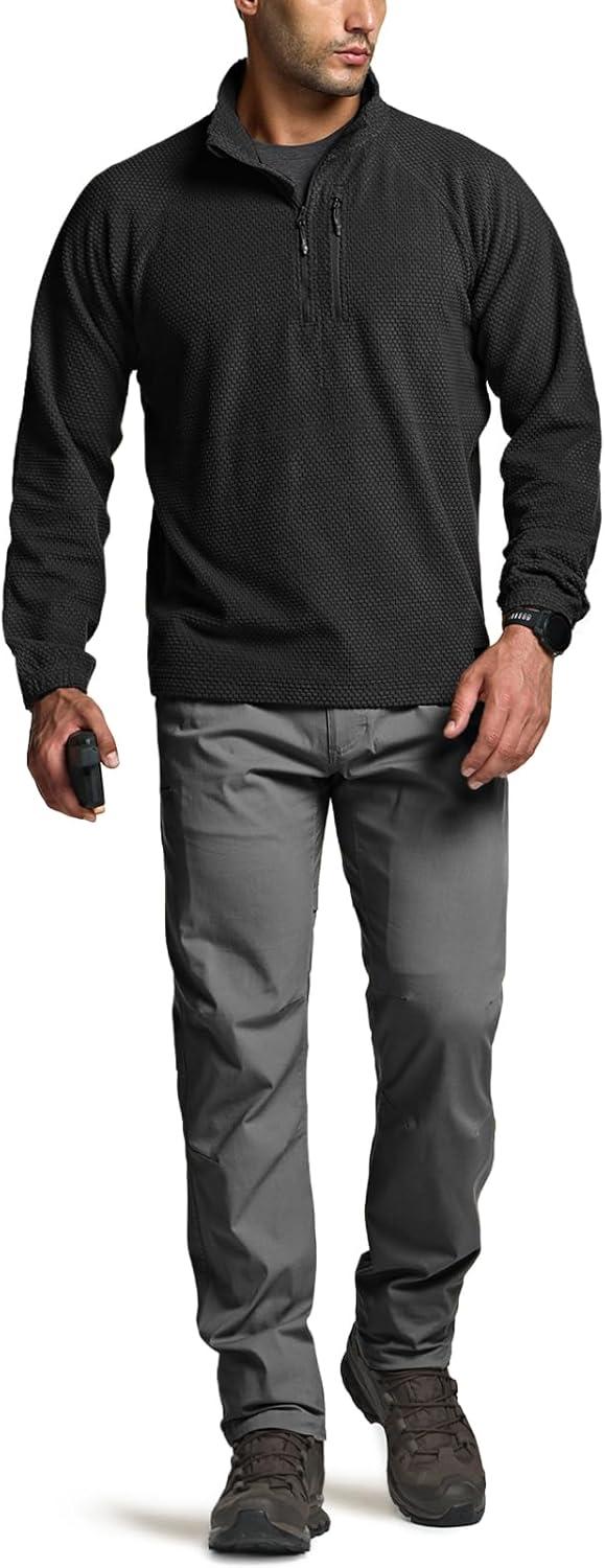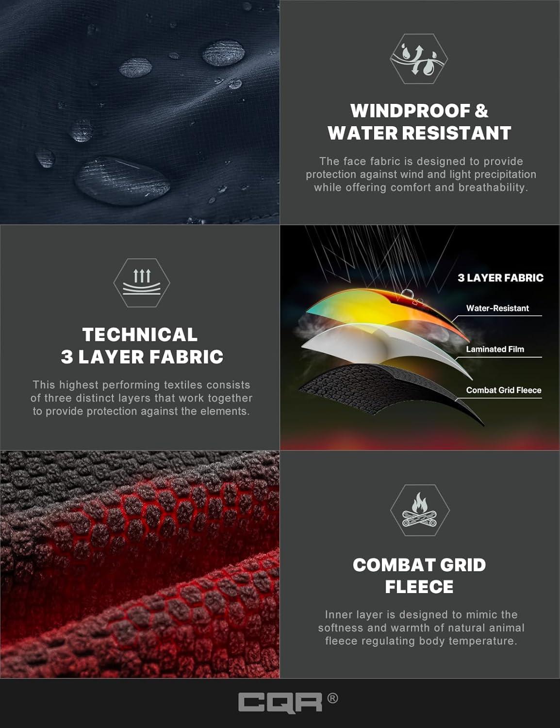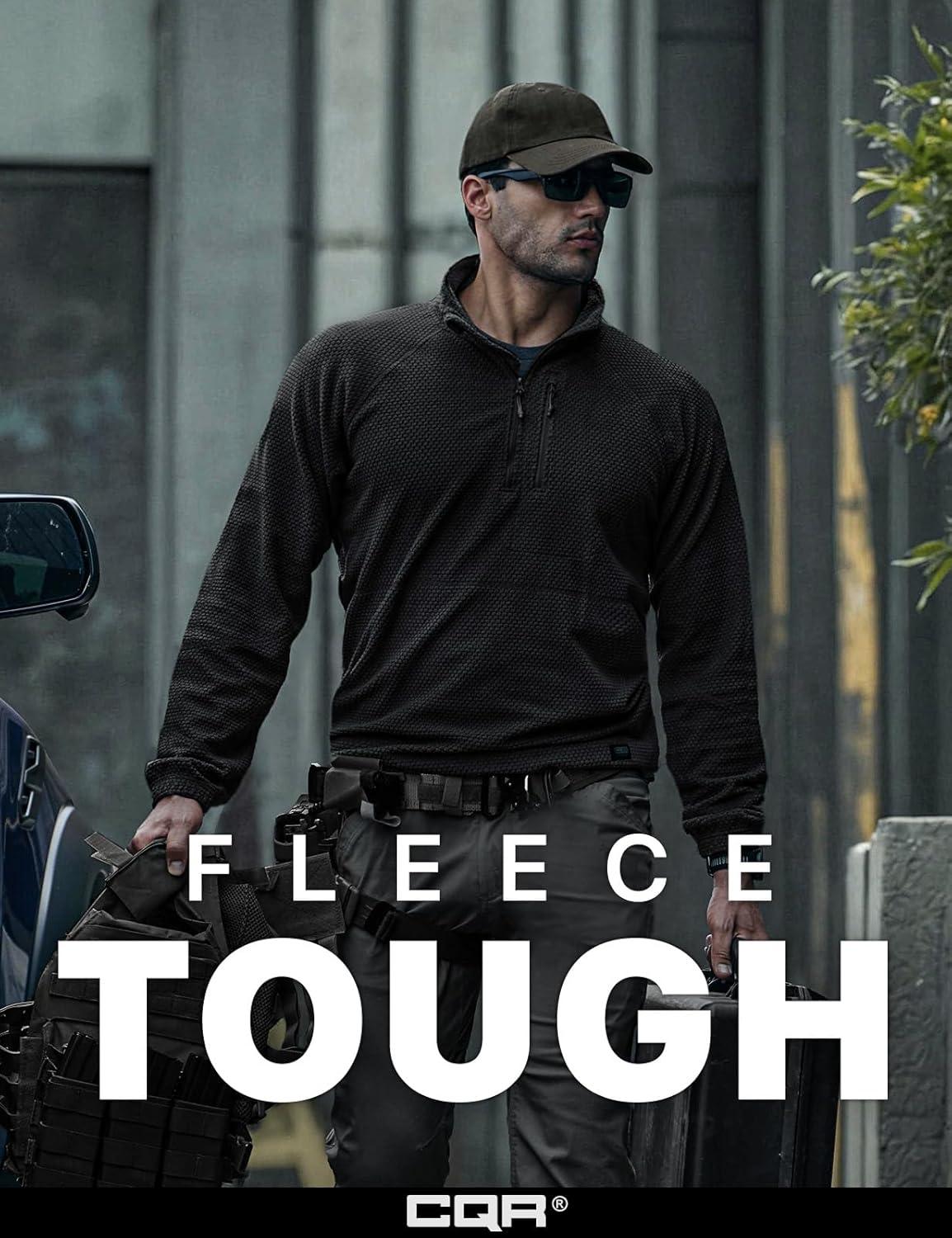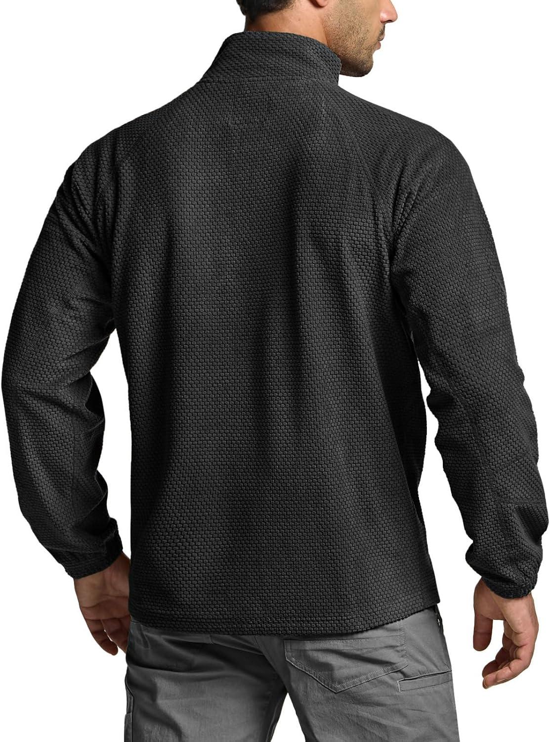 CQR Men’s Full-Zip Tactical Jacket, Soft Warm Military Winter Fleece Jackets, Outdoor Coats with Zipper Pockets(Grid Flex Black)