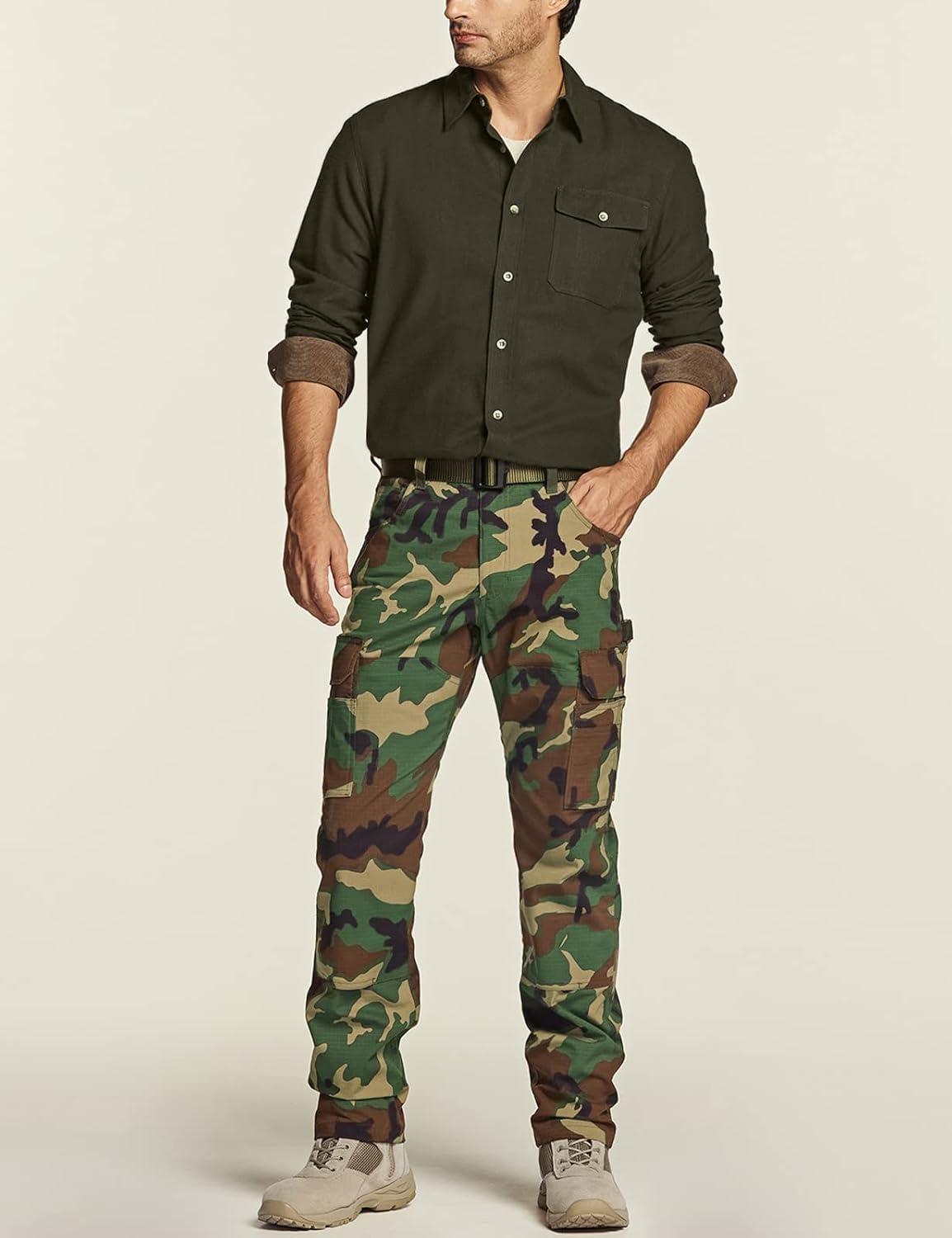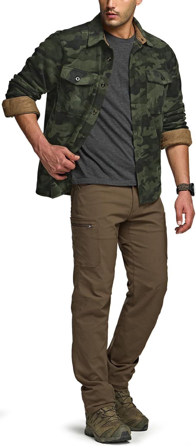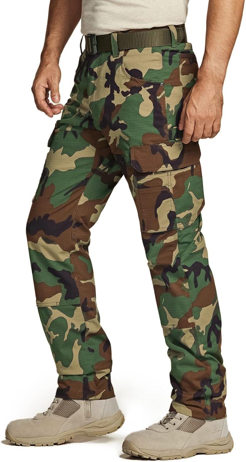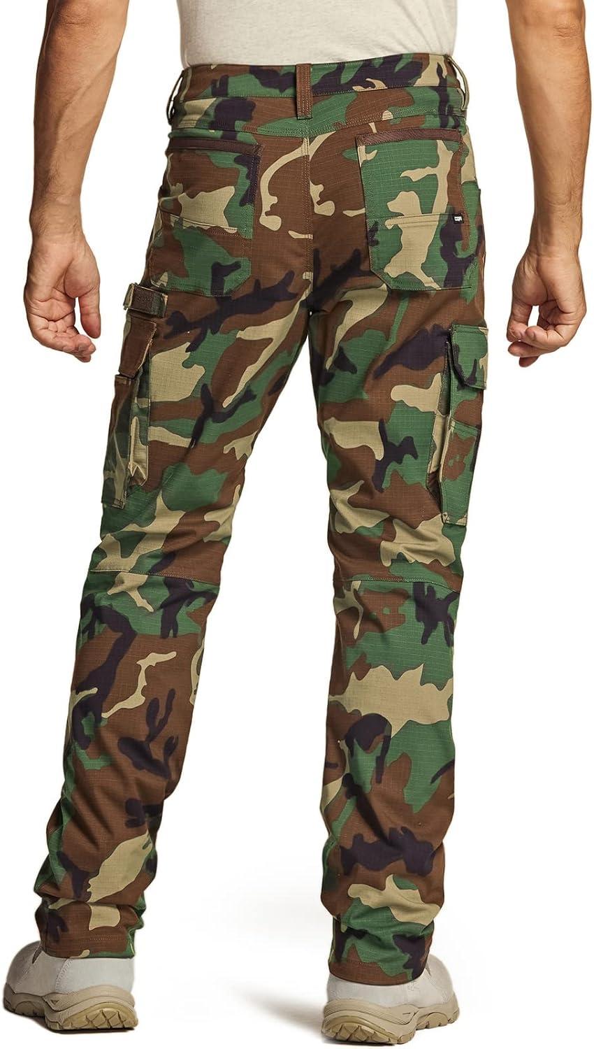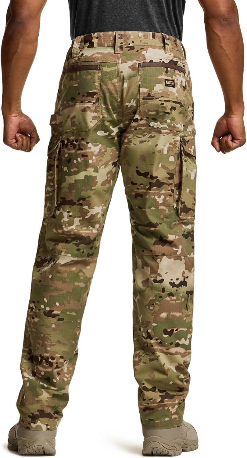 CQR Men’s Flex Stretch Tactical Pants, Water Resistant Ripstop Cargo Pants, Lightweight EDC Outdoor Work Hiking Pants(Intense Utility Camo)