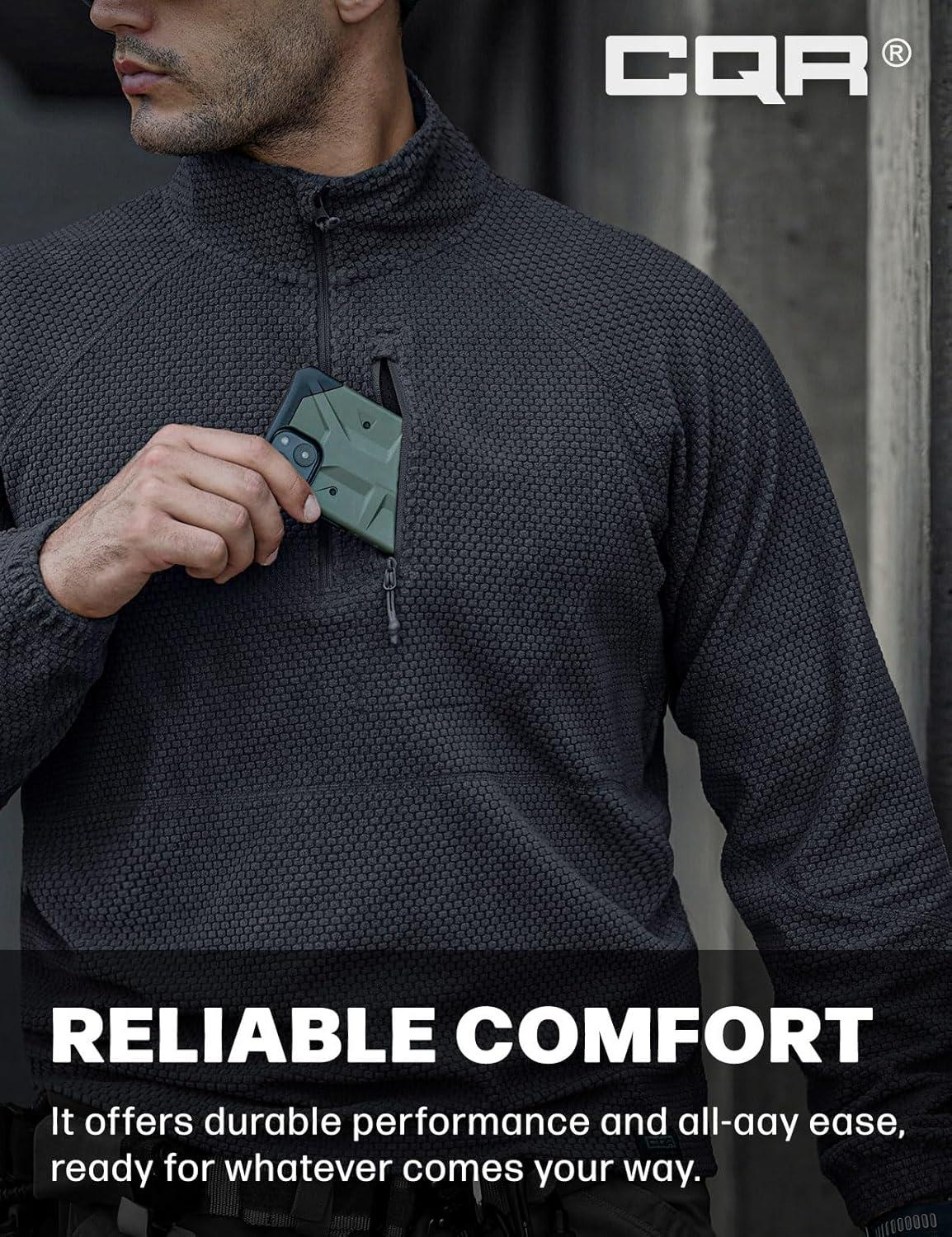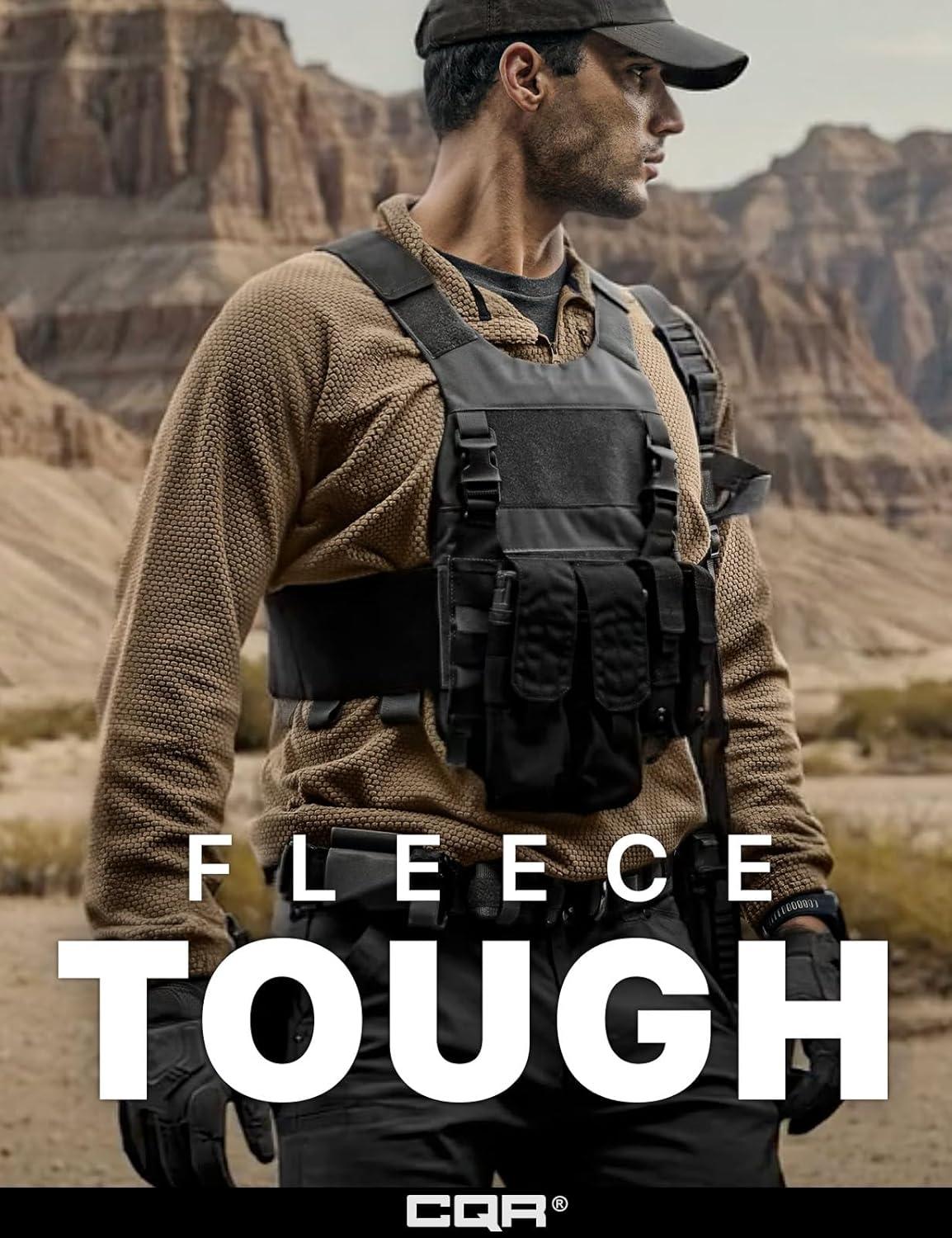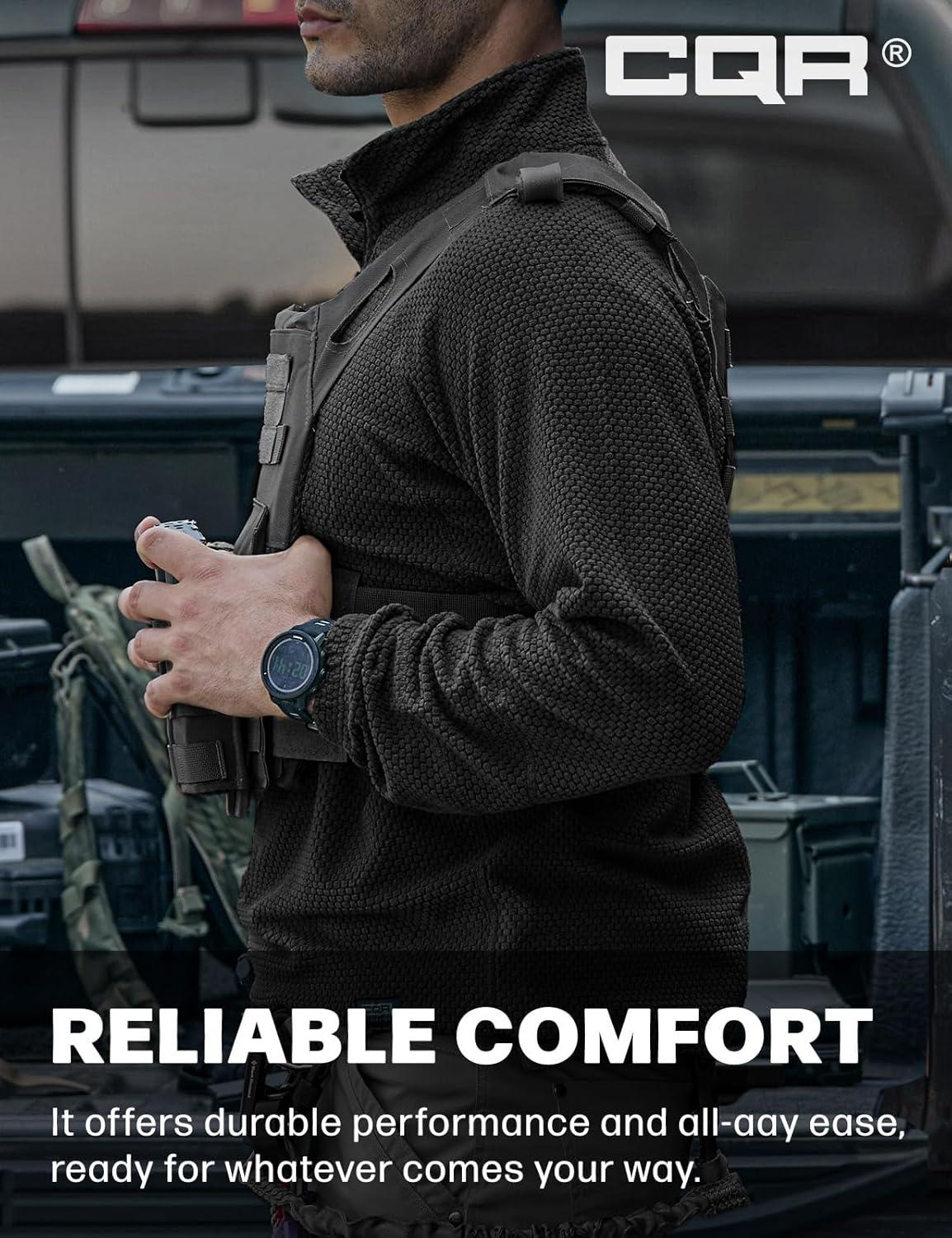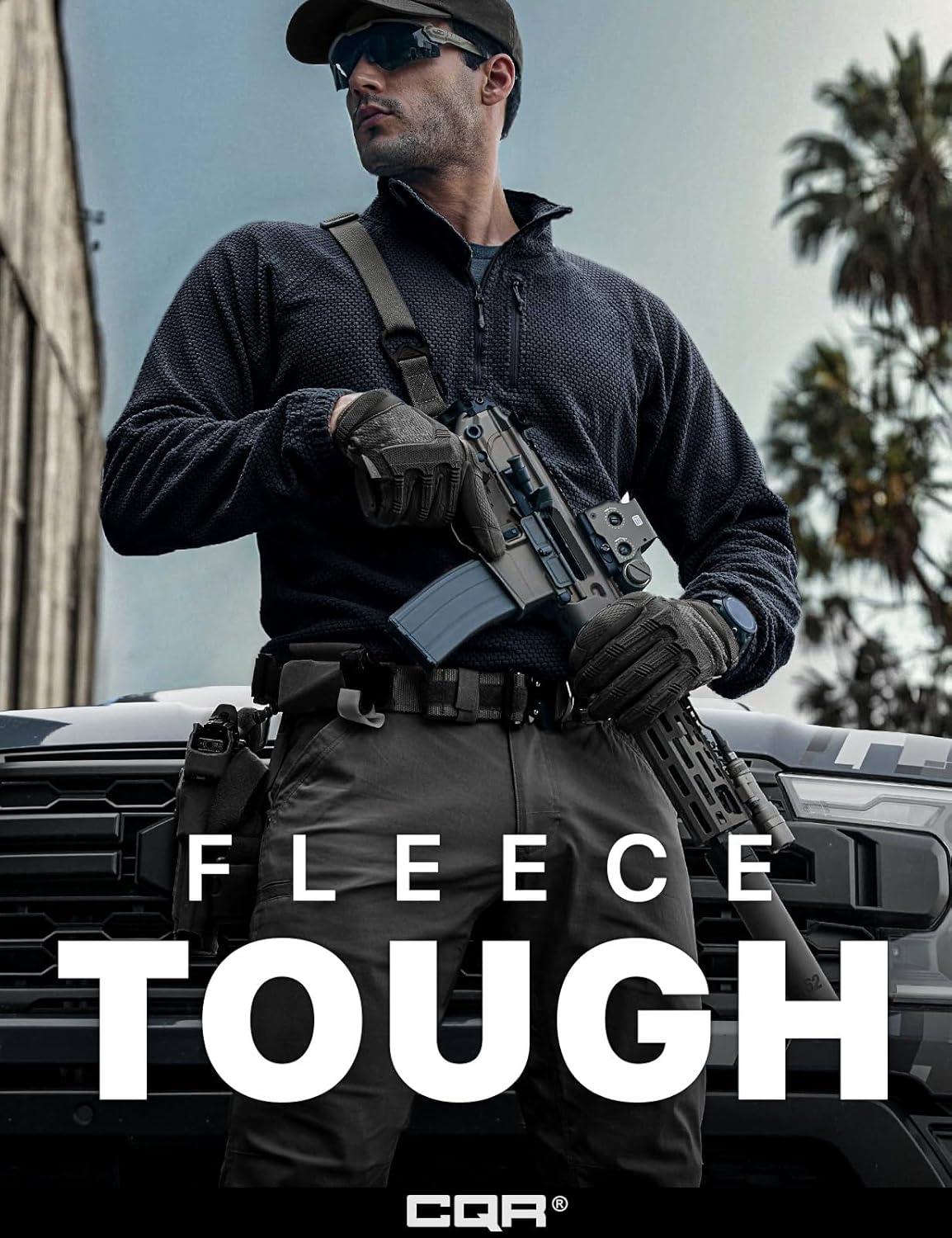 CQR Men’s Full-Zip Tactical Jacket, Soft Warm Military Winter Fleece Jackets, Outdoor Coats with Zipper Pockets(Guardian Black)