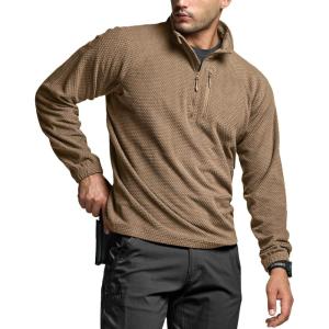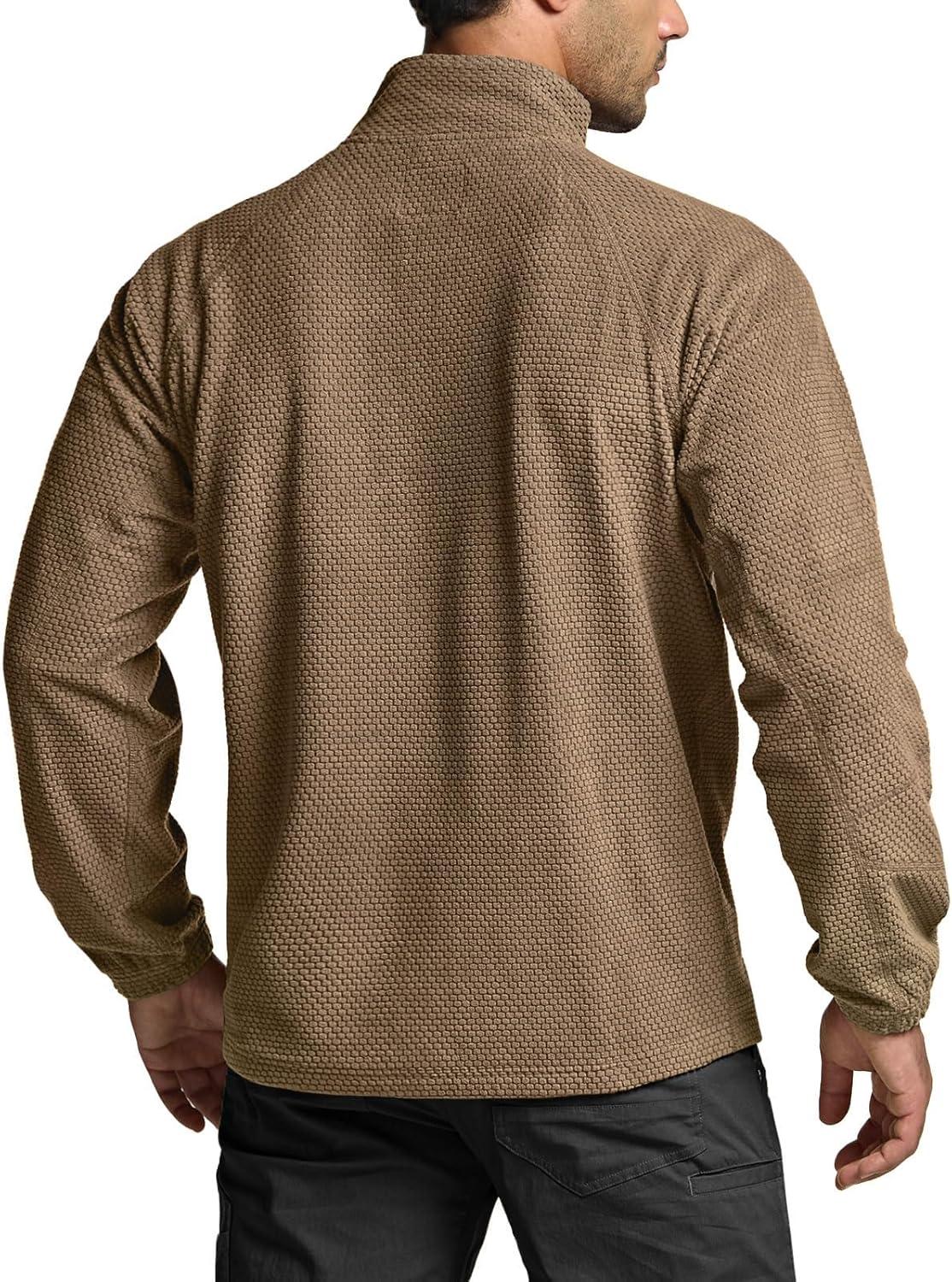 CQR Men’s Full-Zip Tactical Jacket, Soft Warm Military Winter Fleece Jackets, Outdoor Coats with Zipper Pockets(Grid Flex Coyote)