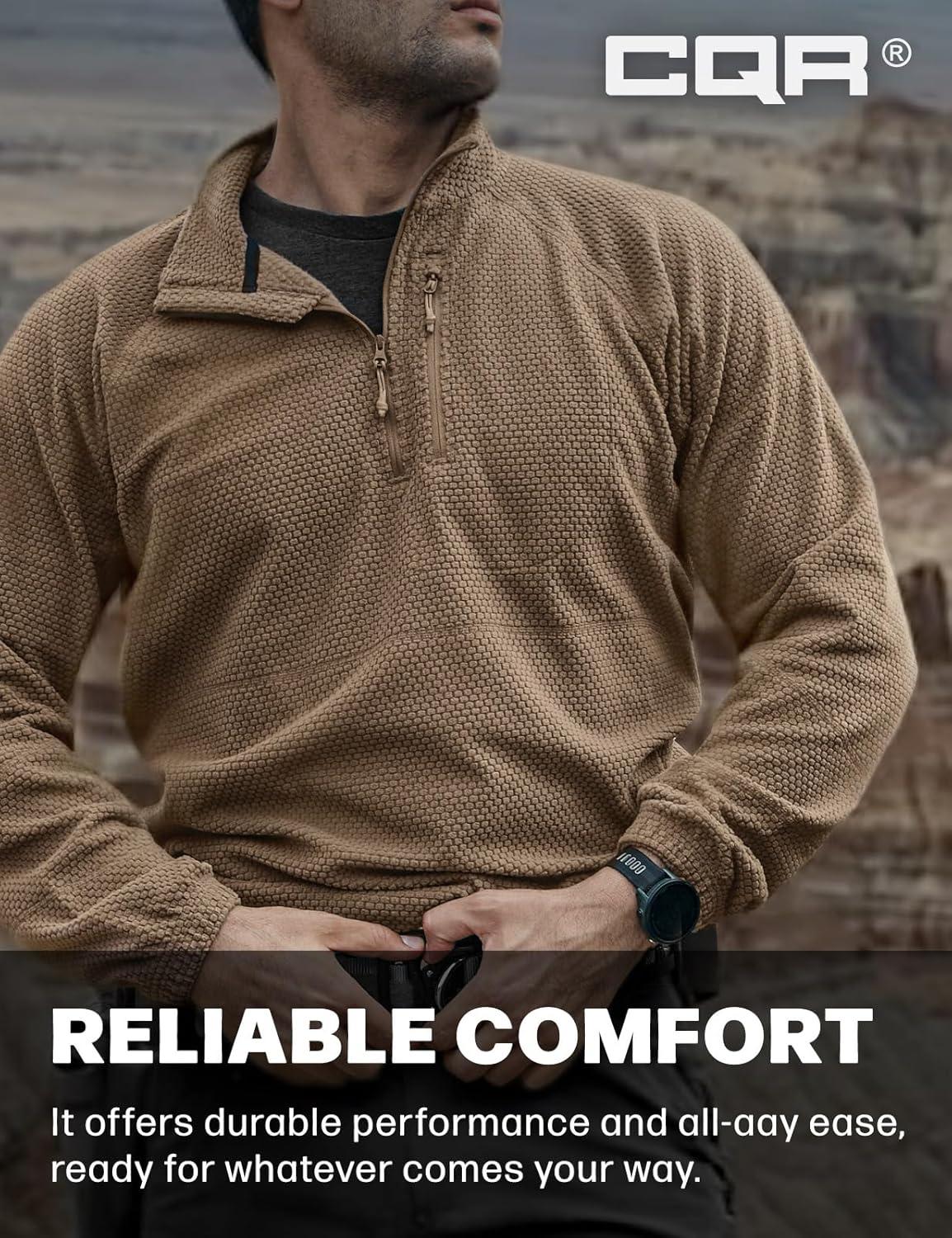 CQR Men’s Full-Zip Tactical Jacket, Soft Warm Military Winter Fleece Jackets, Outdoor Coats with Zipper Pockets(Guardian Coyote)