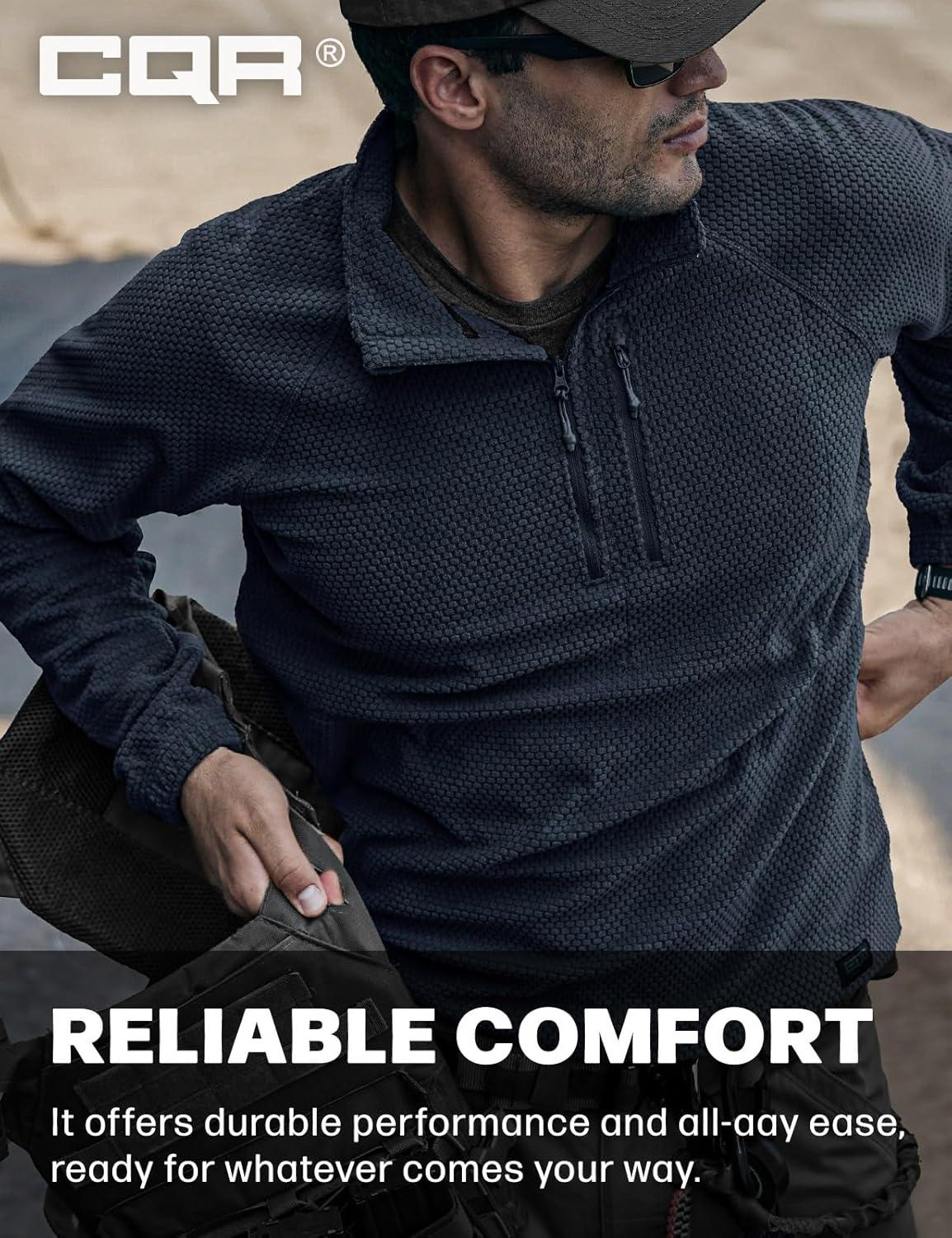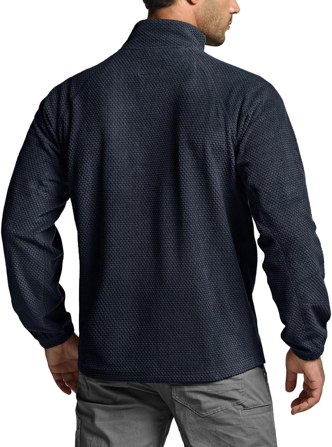 CQR Men’s Full-Zip Tactical Jacket, Soft Warm Military Winter Fleece Jackets, Outdoor Coats with Zipper Pockets(Grid Fleece Operator Navy)