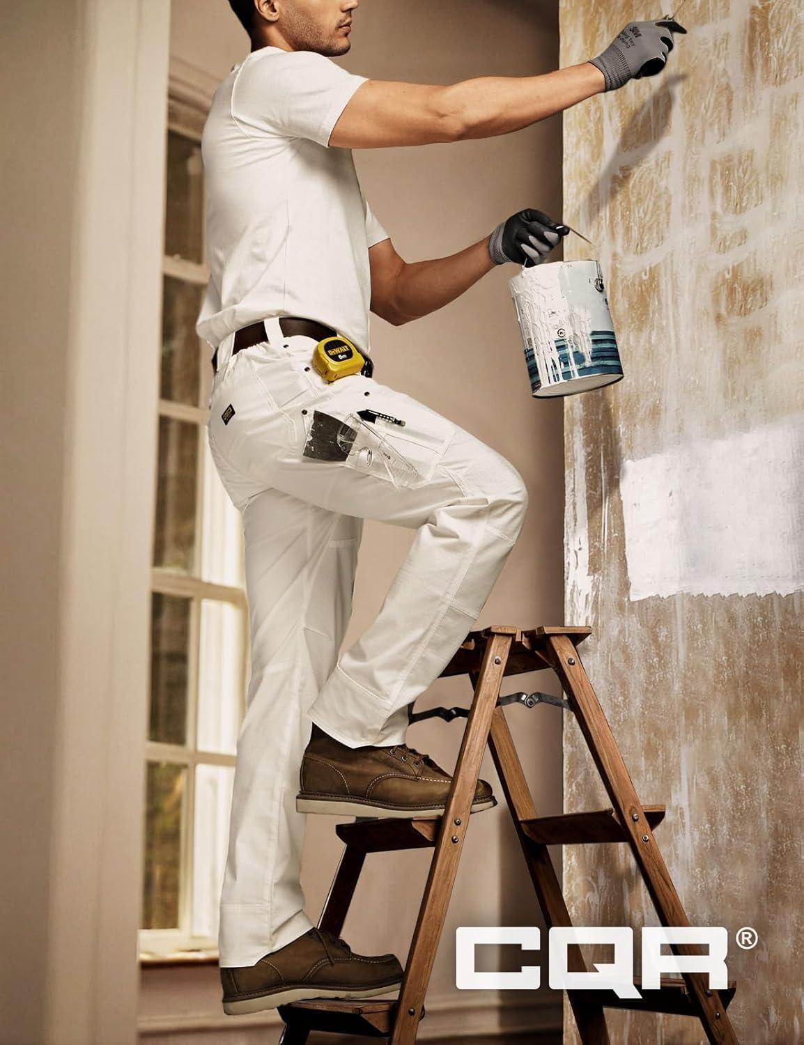 CQR Men’s Quick Dry Work Pants, Water Resistant Outdoor Tactical Pants, Lightweight Stretch Cargo Hiking Pants(Work Pants Frosted White)
