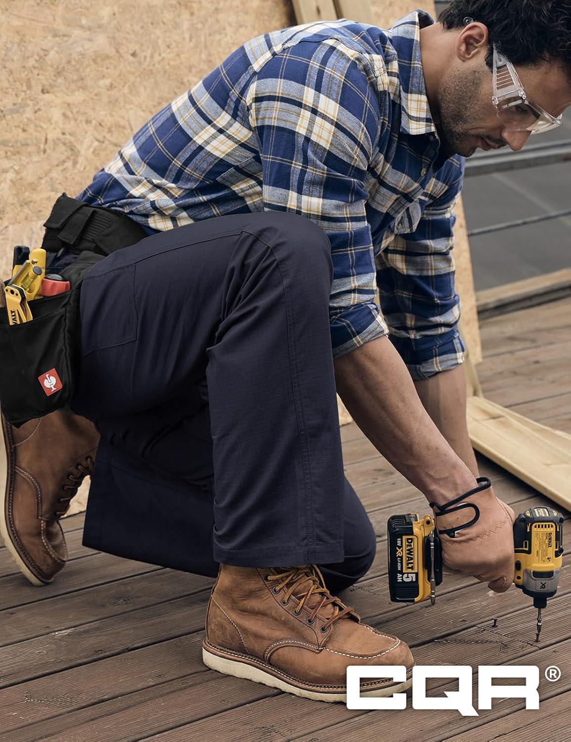 CQR Men’s Quick Dry Work Pants, Water Resistant Outdoor Tactical Pants, Lightweight Stretch Cargo Hiking Pants(Lumber Operator Navy)