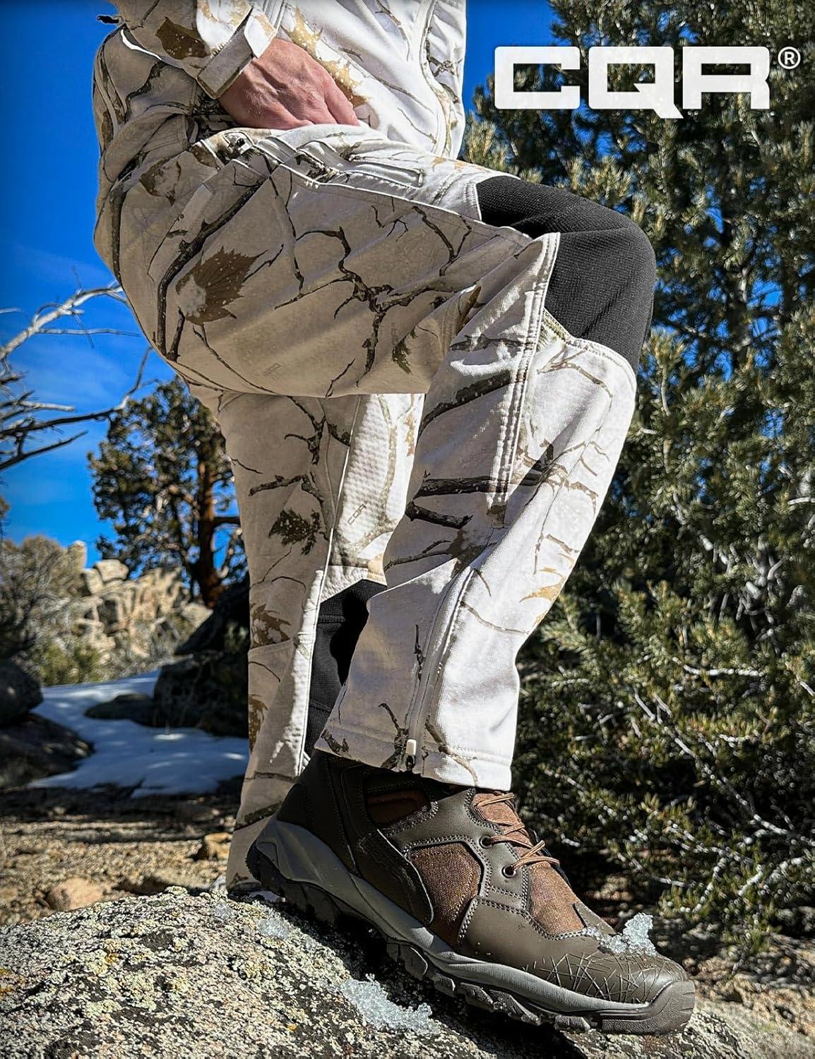 CQR Men’s Softshell Fleece Lined Winter Hiking Pants, Water Resistant Insulated Thermal, Outdoor Tactical Warm Snow Ski Pants(Expedition Winter Hunting Camo)