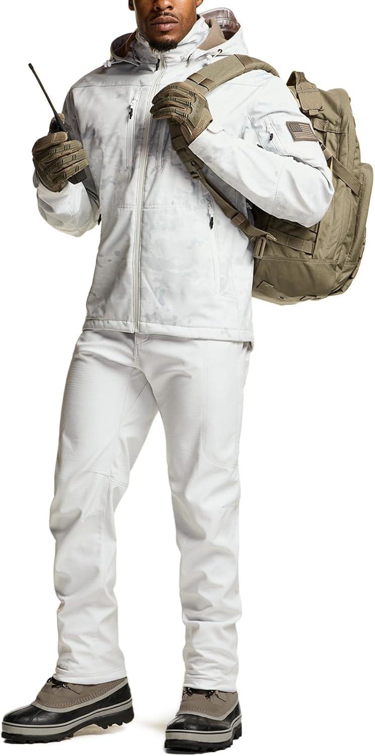 CQR Men’s Softshell Fleece Lined Winter Hiking Pants, Water Resistant Insulated Thermal, Outdoor Tactical Warm Snow Ski Pants(Recon White)