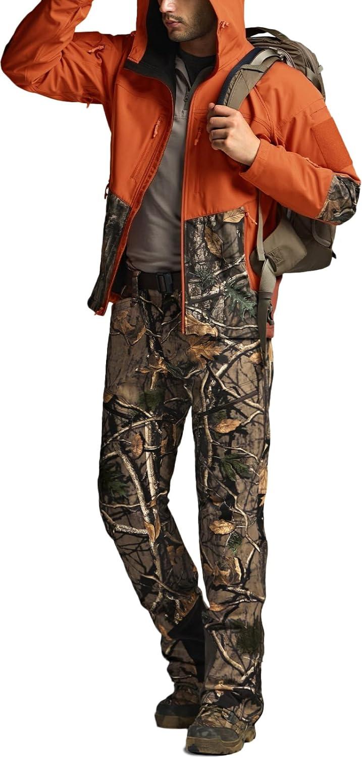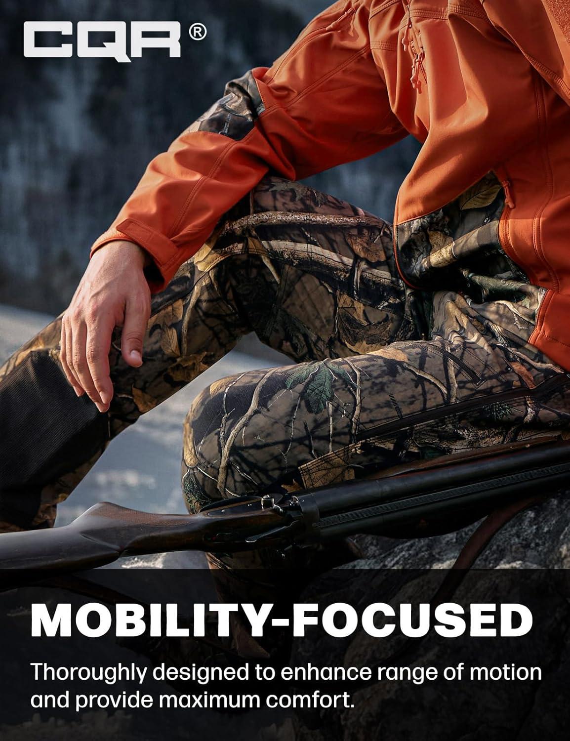 CQR Men’s Softshell Fleece Lined Winter Hiking Pants, Water Resistant Insulated Thermal, Outdoor Tactical Warm Snow Ski Pants(Teton Alpha Hunting Camo)
