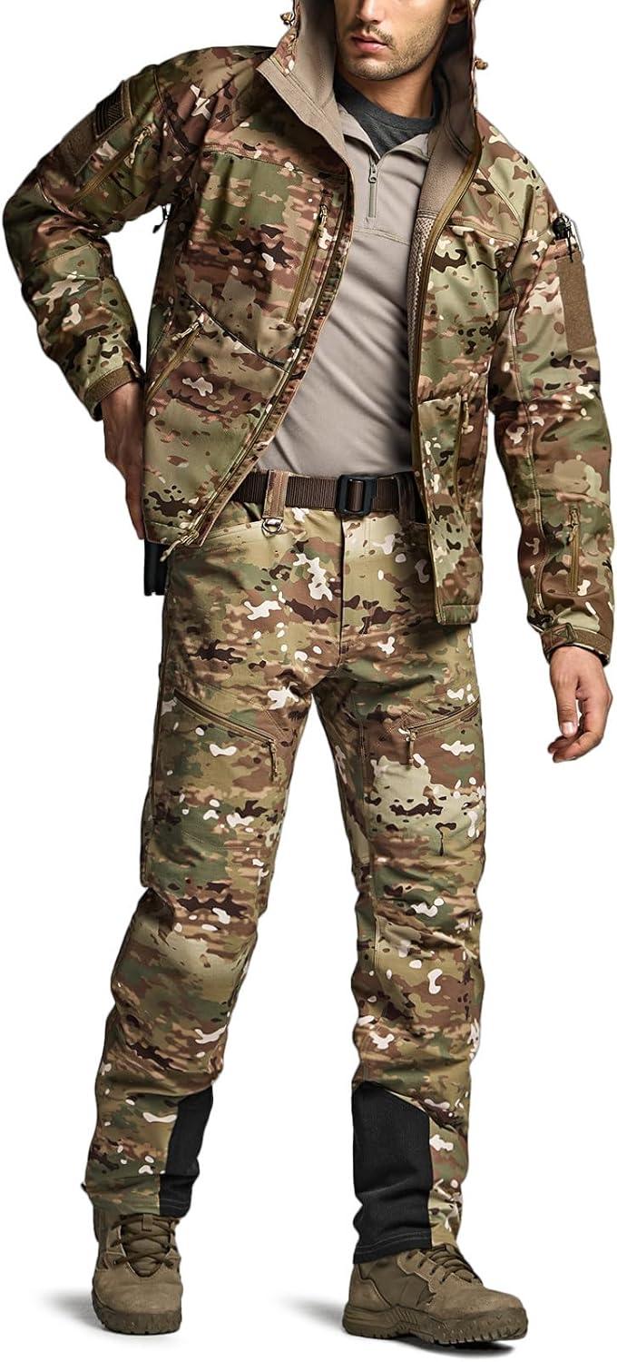 CQR Men’s Softshell Fleece Lined Winter Hiking Pants, Water Resistant Insulated Thermal, Outdoor Tactical Warm Snow Ski Pants(Teton Alpha Utility Camo)