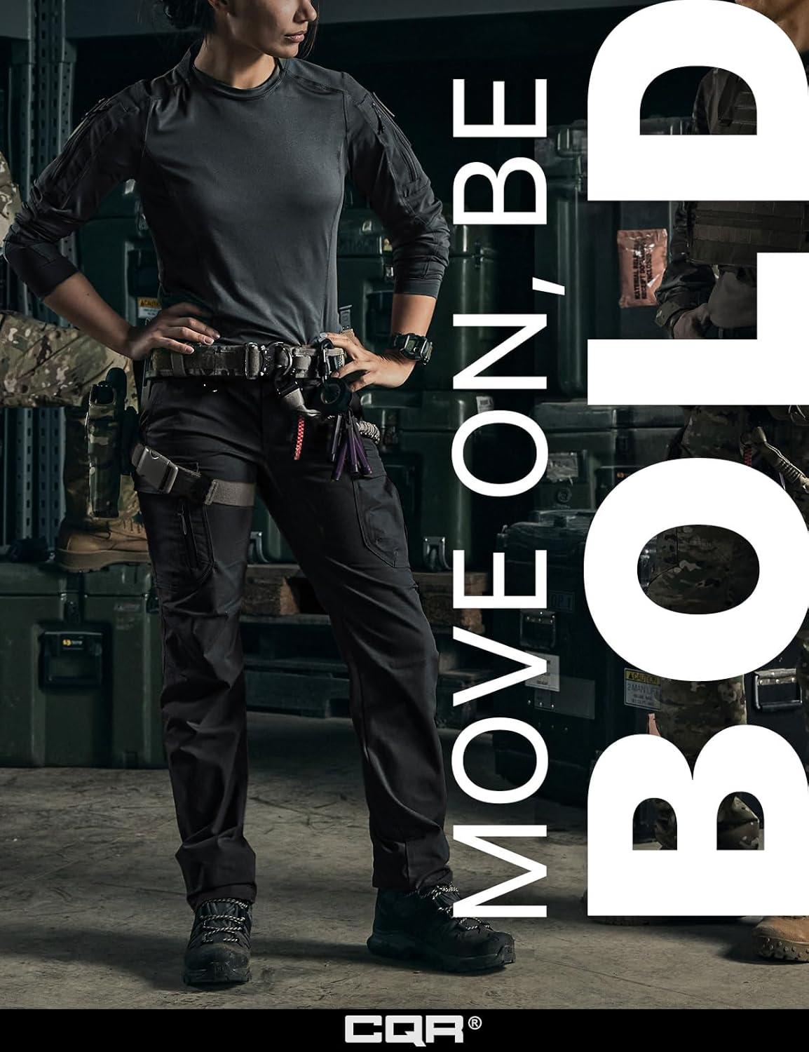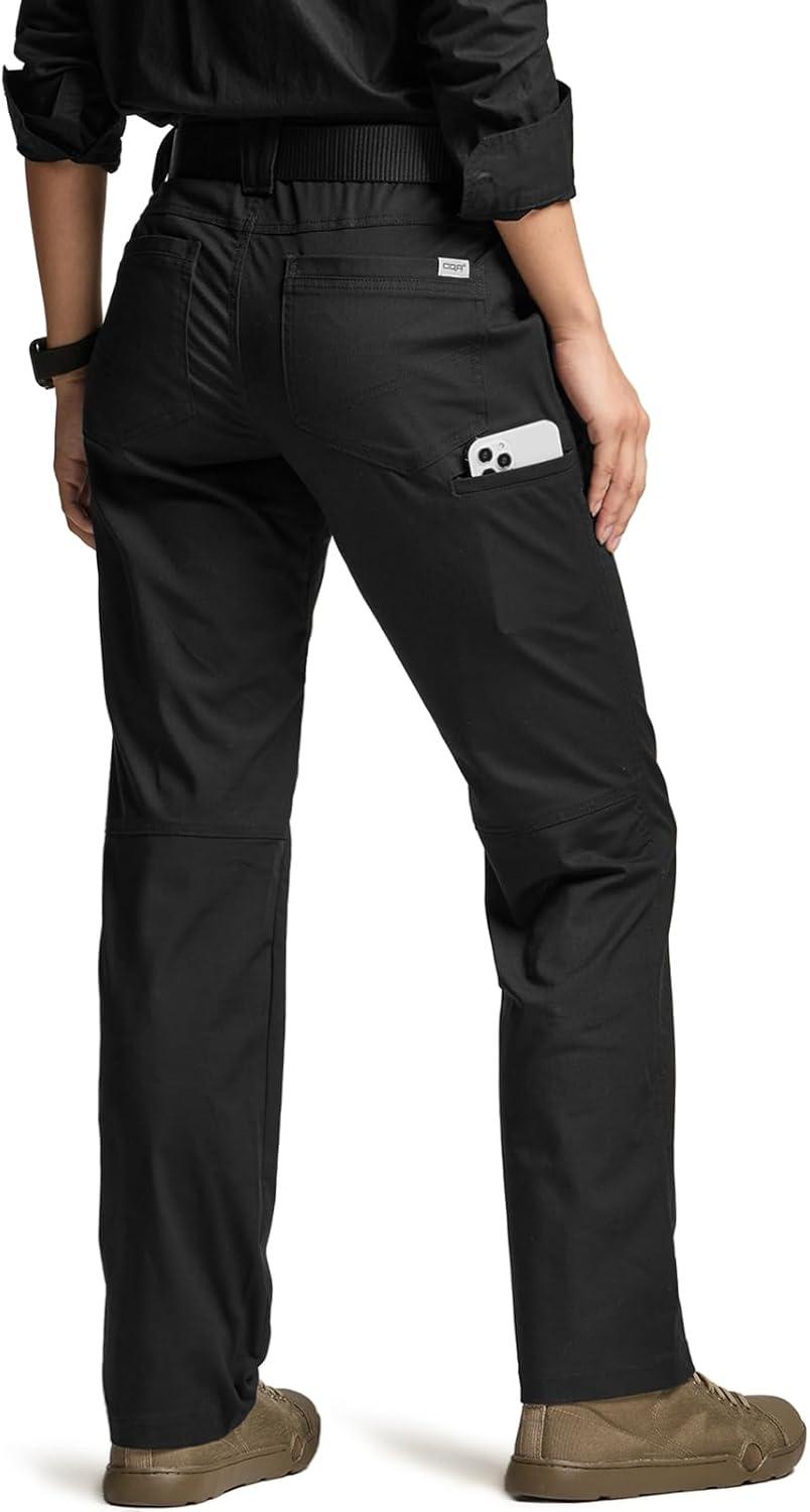 CQR Women’s Flex Stretch Tactical Pants, Water Resistant Ripstop Cargo Work Pants with Pockets for Outdoor & Hiking(Captain Black)