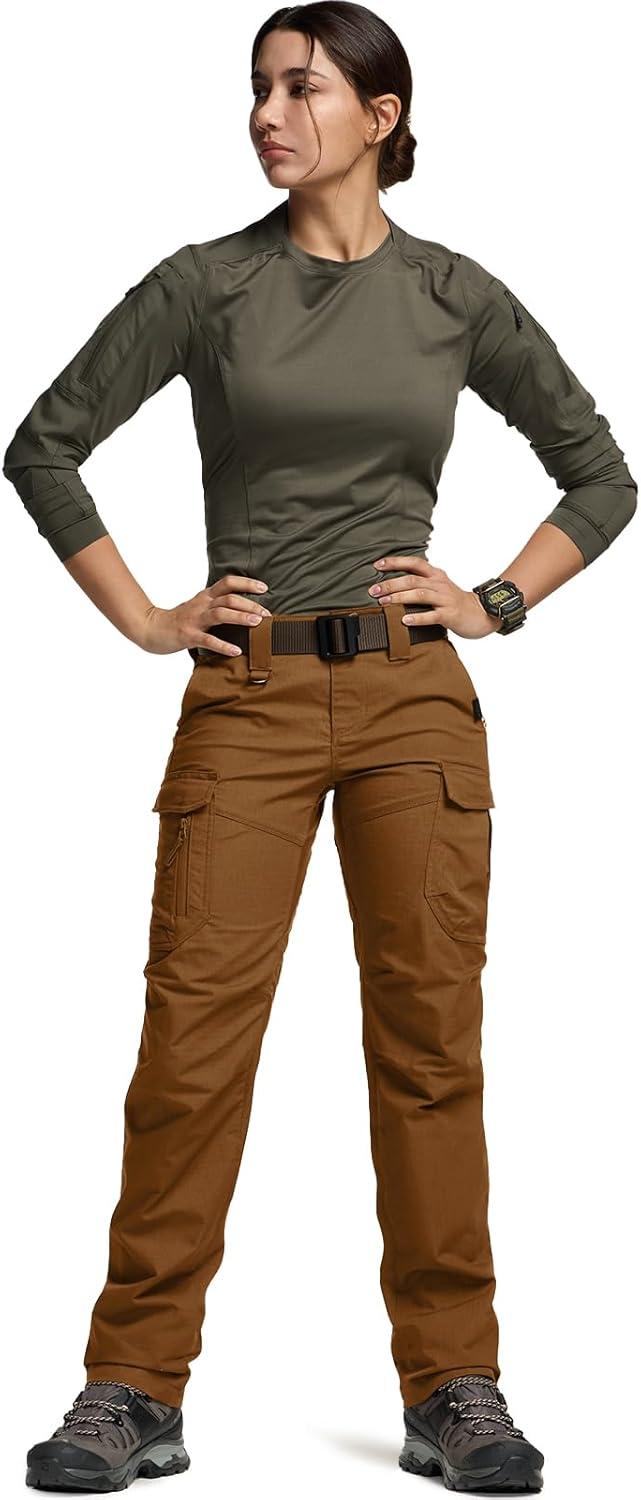 CQR Women’s Flex Stretch Tactical Pants, Water Resistant Ripstop Cargo Work Pants with Pockets for Outdoor & Hiking(Captain Copper Brown)