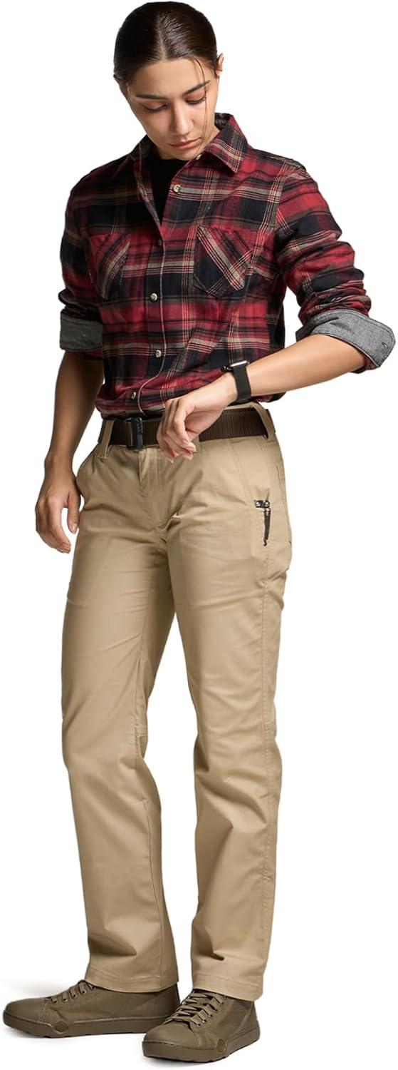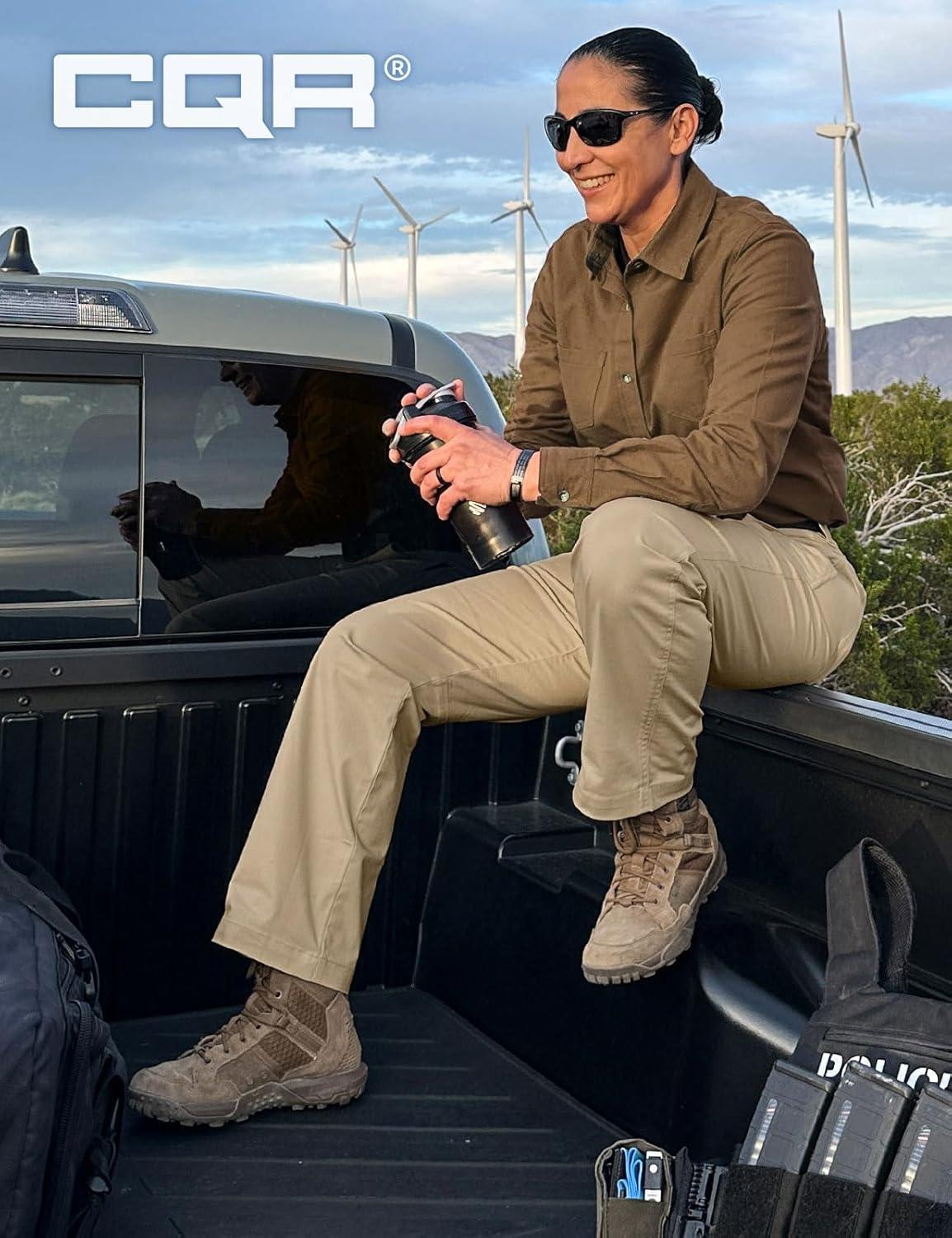 CQR Women’s Flex Stretch Tactical Pants, Water Resistant Ripstop Cargo Work Pants with Pockets for Outdoor & Hiking(Sub Rosa Alamo Khaki)