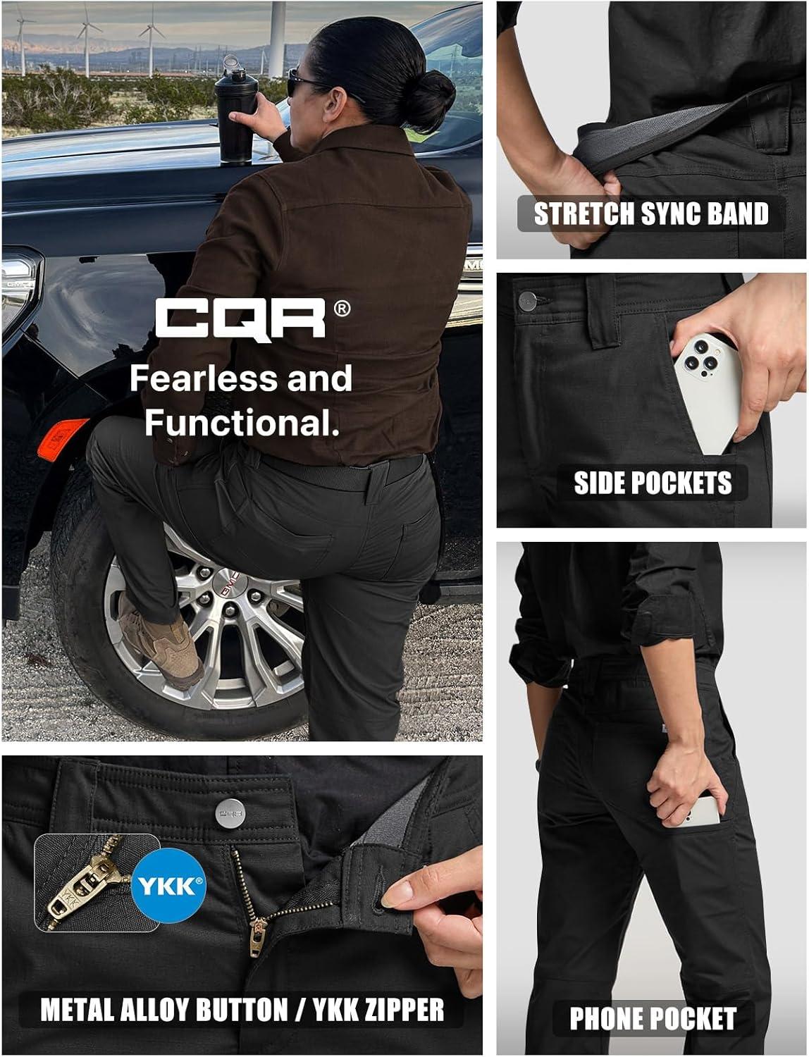 CQR Women’s Flex Stretch Tactical Pants, Water Resistant Ripstop Cargo Work Pants with Pockets for Outdoor & Hiking(Sub Rosa Black)
