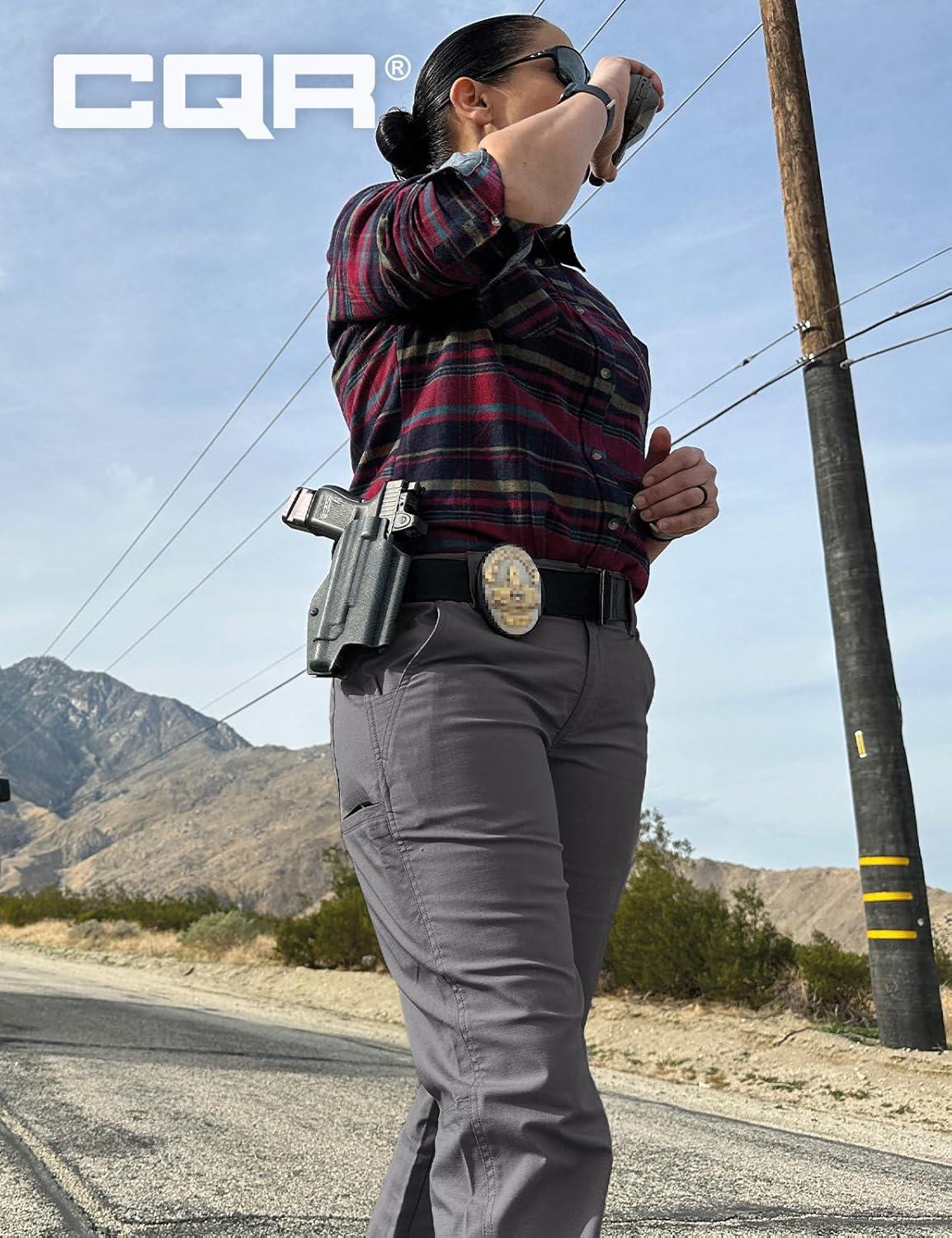 CQR Women’s Flex Stretch Tactical Pants, Water Resistant Ripstop Cargo Work Pants with Pockets for Outdoor & Hiking(Vanguard Stone)