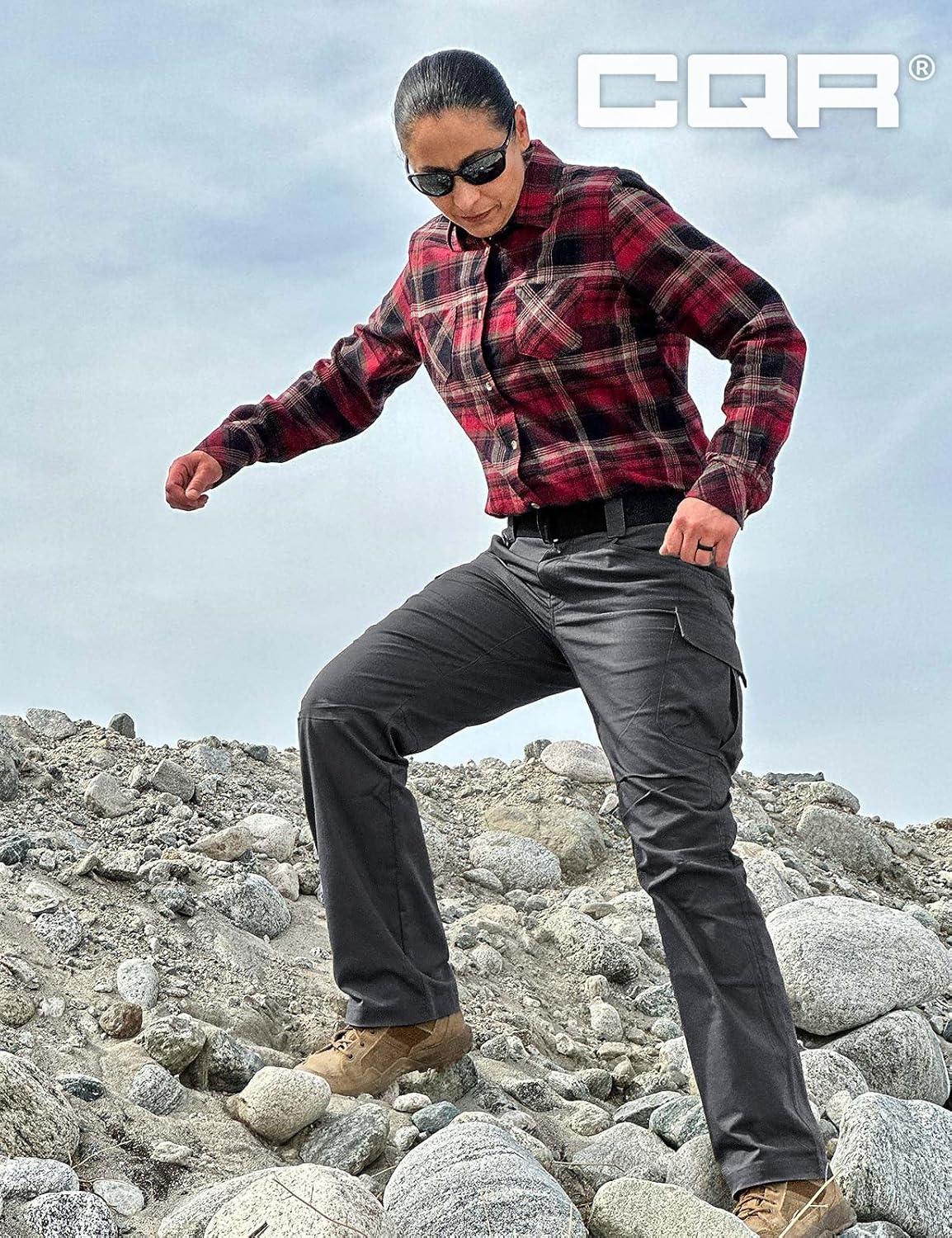 CQR Women’s Flex Stretch Tactical Pants, Water Resistant Ripstop Cargo Work Pants with Pockets for Outdoor & Hiking(Sub Rosa Charcoal)