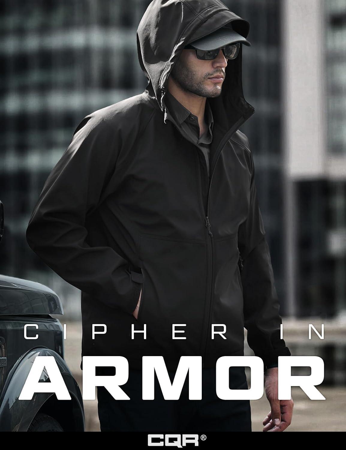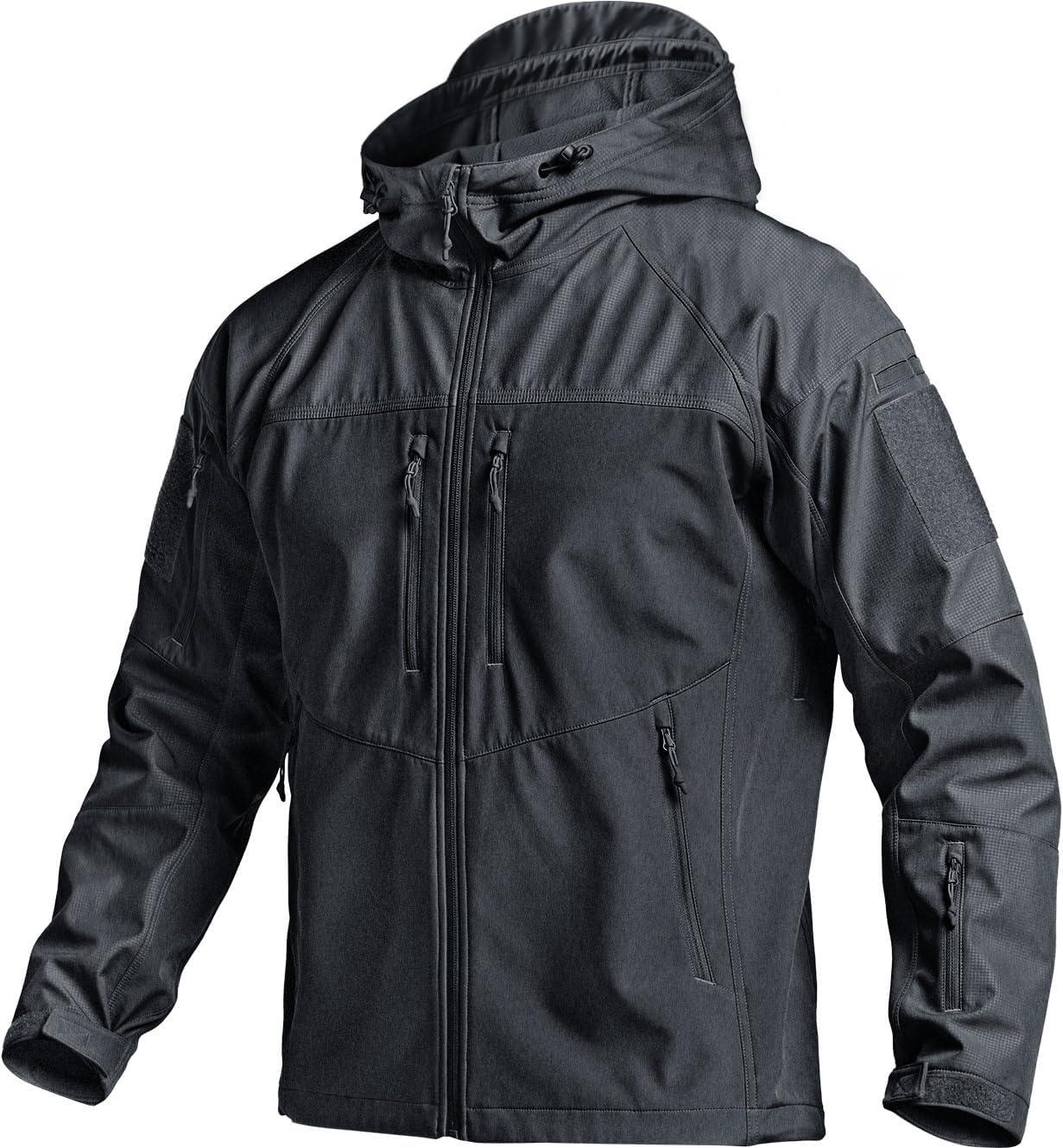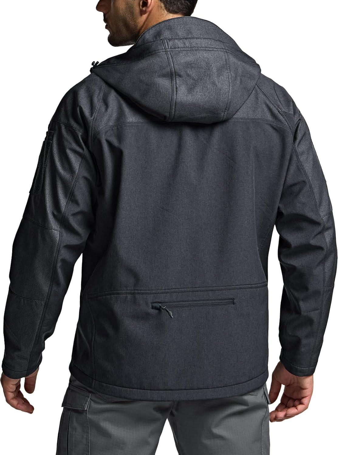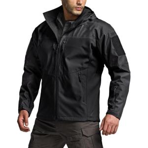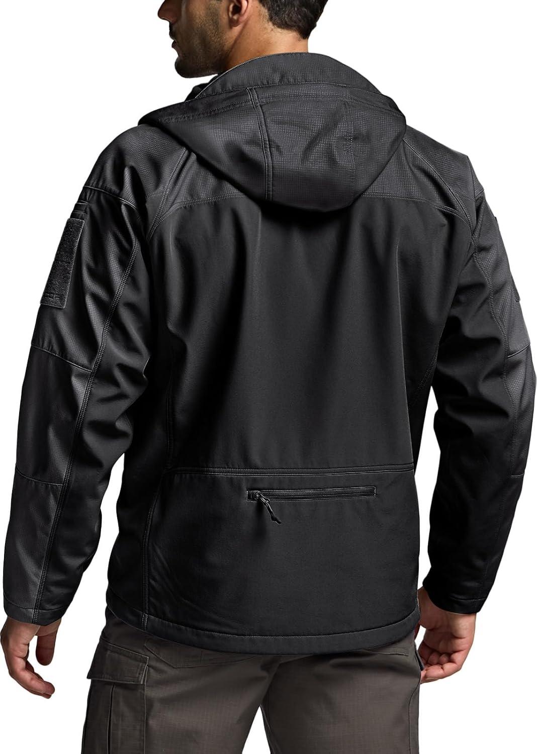 CQR Men’s Hooded Tactical Softshell Jacket, Water Resistant Fleece Lined Hoodie, Winter Outdoor Hunting Hiking Rain Wind(Modern Black)