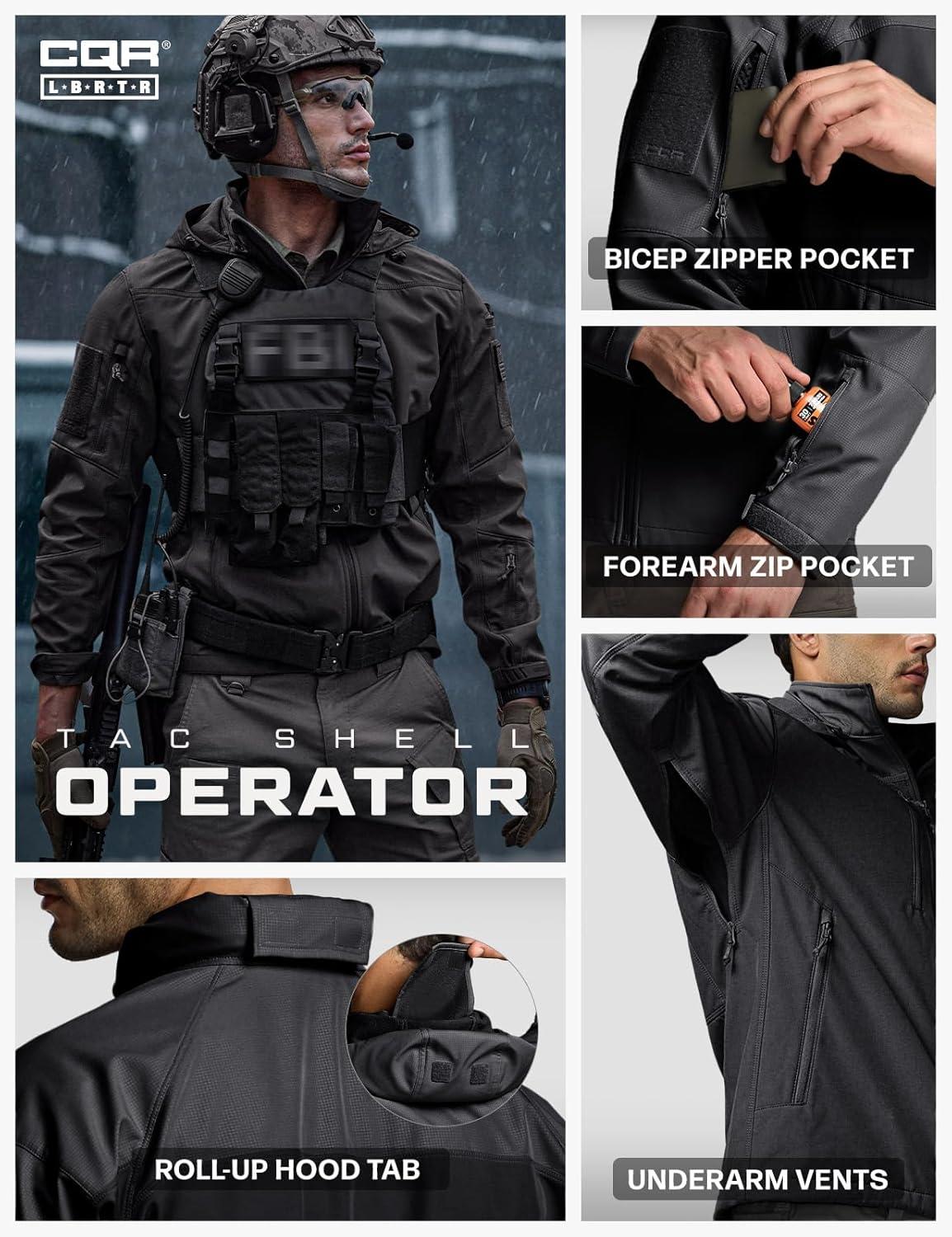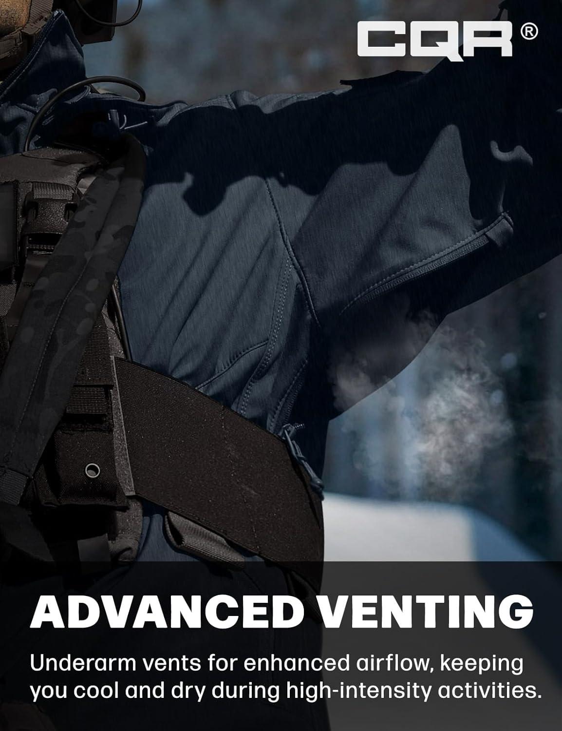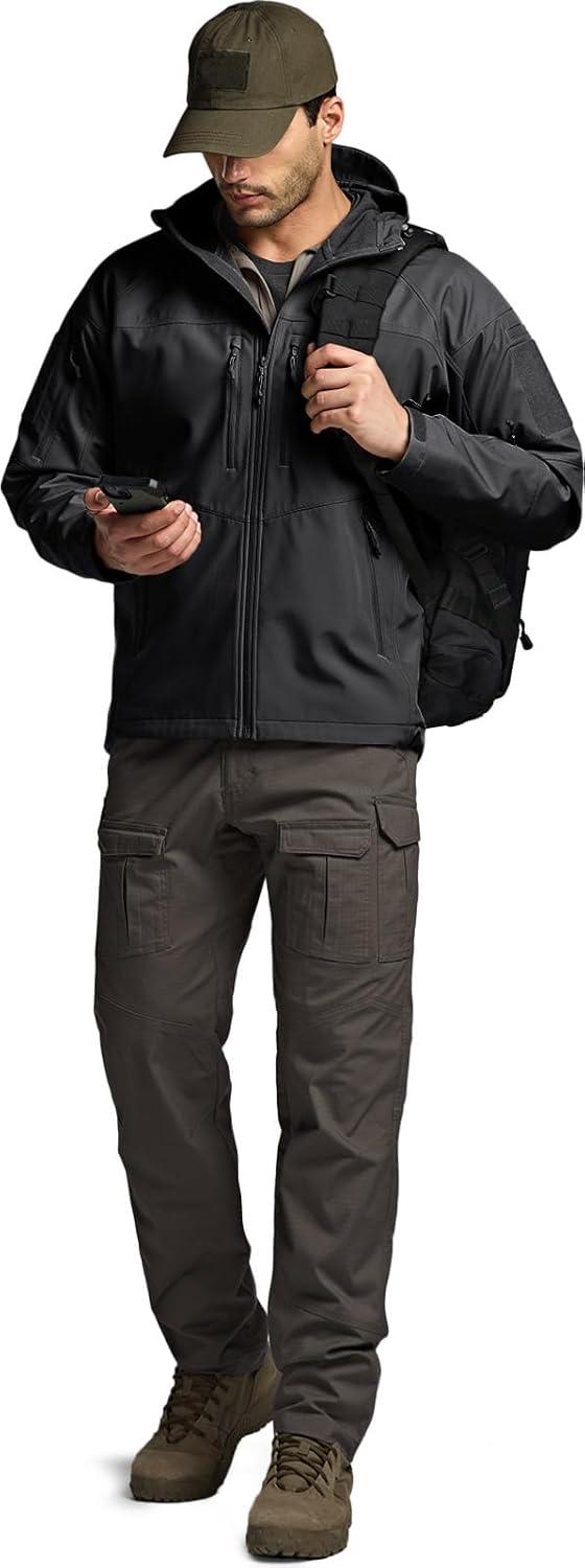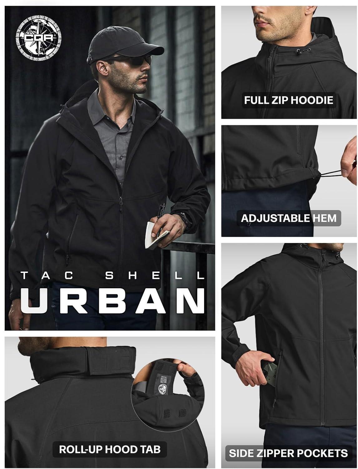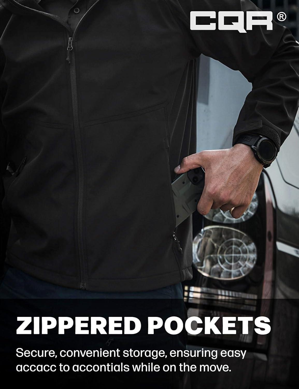 CQR Men’s Hooded Tactical Softshell Jacket, Water Resistant Fleece Lined Hoodie, Winter Outdoor Hunting Hiking Rain Wind(Modern Black)